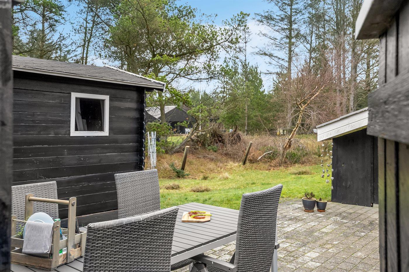 Ferieboligen er beliggende på en 1302 m² stor naturtomt. Avstand til hav er 1100 m. Nærmeste butikk ligger i en avstand på 150 m. Til ferieboligen hører åpent terrasseareal. Det er grill til rådighet. P-plass ved huset.