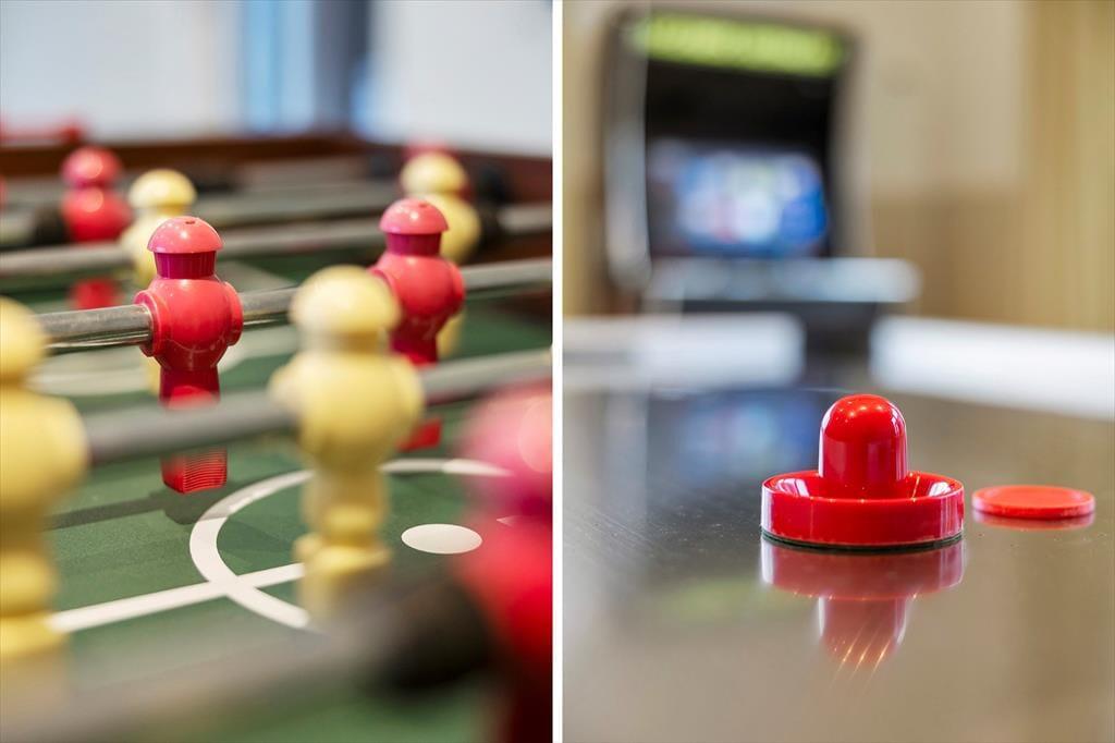 Auch im großen und lichtdurchfluteten Wohnbereich lässt es sich wunderbar entspannen – egal, ob du es dir auf dem Sofa gemütlich machst, in der Küche stehst oder mit deinen Liebsten am Esstisch zusammensitzt. Im Haus ist zudem ein WLAN-Lautsprecher installiert. Für Unterhaltung ist ebenfalls gesorgt: Im Aktivitätsraum des Annexes könnt ihr euch mit Tischfußball, Airhockey, einer PlayStation 5 und mehreren tausend Arcade-Spielen auf einer Spielkonsole vergnügen.