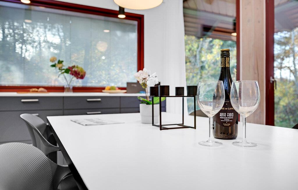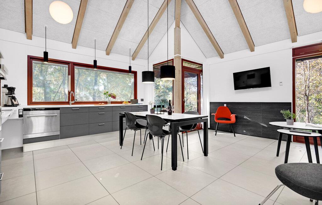 Dette lyse og vennlige feriehuset har plass til opptil fem gjester og et ekstra småbarn. I det praktiske feriehuset finner du en koselig stue med kjøkken. Her kan du sette deg godt til rette foran vedovnen. Mye lys strømmer gjennom de store vinduene. Huset er lyst og pent innredet.