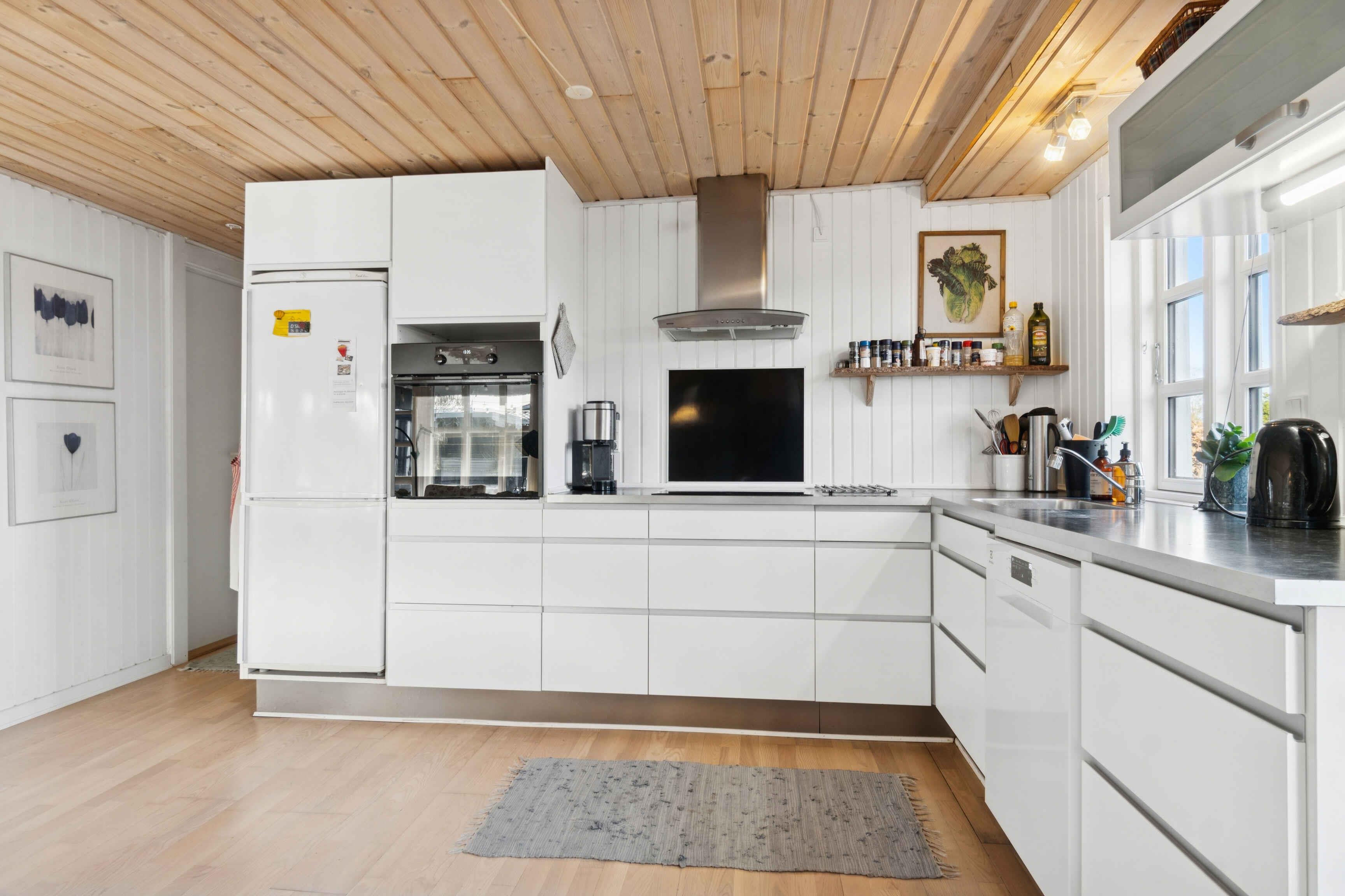 The classic 90 m² holiday home offers a peaceful setting for your stay. The cosy kitchen-living area brings everyone together, while the sofa corner invites relaxation by the wood-burning stove. The interior is simple, bright and pleasant, and the beds are of high quality. The bright bedrooms accommodate six people across three rooms. The bathroom has a shower and a practical layout that makes daily routines easy. The house is user-friendly and well suited for families with children. Outside, a covered terrace with lounge furniture makes summer evenings enjoyable. The large green lawn is fully fenced, making it ideal for guests bringing a dog, and there is plenty of room for play, activities and relaxing in the sun. The area is especially attractive for holidays. With just 400 metres to the water, the beach is easily reached for swimming, walks and coastal activities. The long shoreline provides space and tranquillity, even on busy days. The surrounding nature offers forests, dunes and trails for cycling and walking. The proximity to Grenaa brings cafés, small shops and ice-cream bars within easy reach. The area provides a good balance between nature and local life. In summer, visitors can enjoy markets, family activities, a lively harbour and many excursions. Spring and autumn offer more peace, ideal for enjoying nature at your own pace. The mix of beach, forest and local charm makes the home ideal for a relaxing holiday. Note: Not for commercial rental.