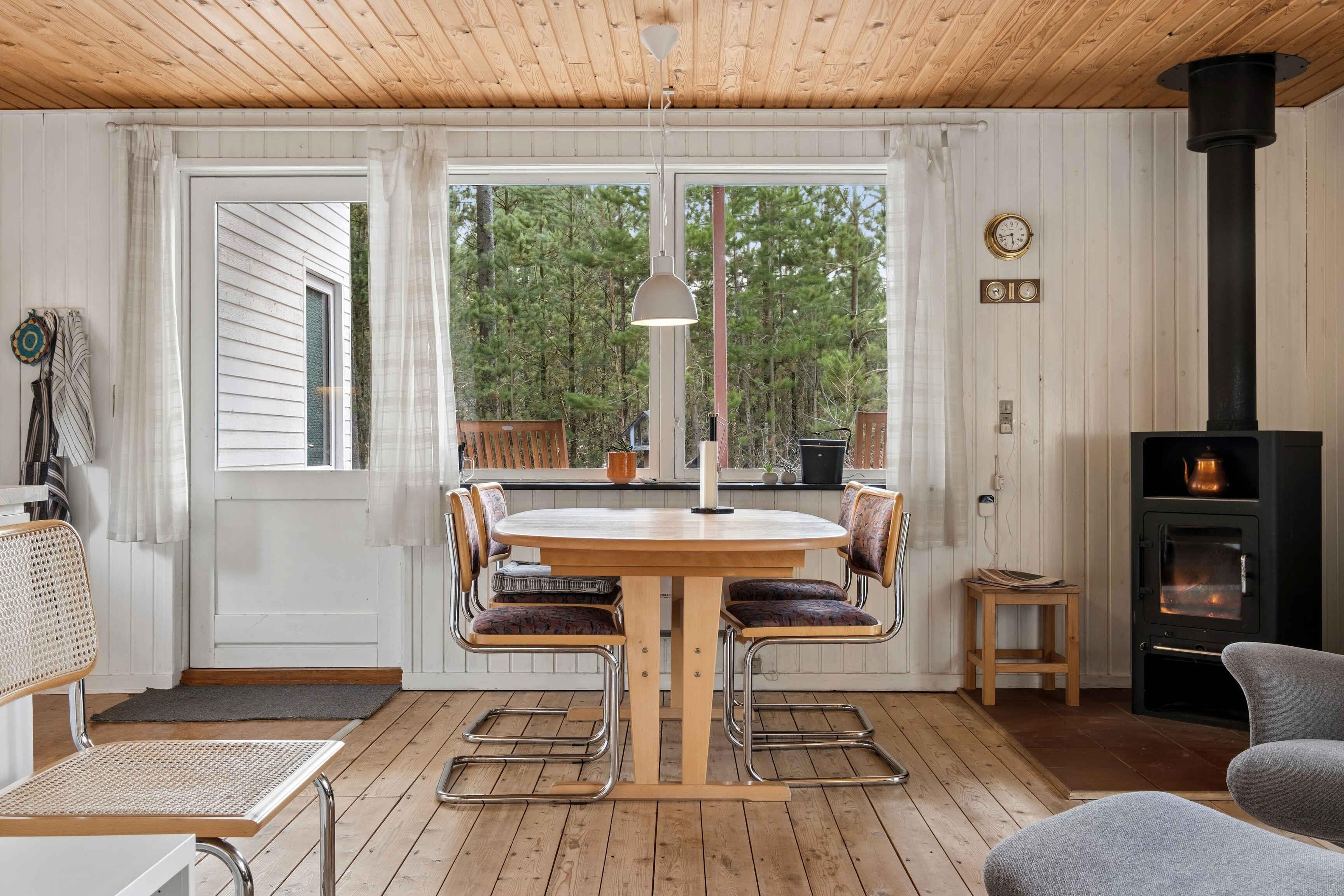 Enjoy nature and tranquility in this cozy and charming holiday home, located 800 m from the Kattegat. The house is set on a large natural plot with many trees and birds. In front of the house, there is a large grassy area for ball games and play. On the covered terrace with a forest view, you can enjoy your morning coffee, lunch, or a refreshing drink. Wood-burning stove. Open-plan kitchen and living area. Four bicycles are available in the shed. Two playgrounds are nearby. Øster Hurup is 15 minutes away by car. This is our private home, so please take good care of it. Allergy-friendly, non-smoking, no pets allowed. The accommodation There are five sleeping places plus a sofa in the living room. Directly connected to the terrace is a utility room with two additional bunk beds. Here you will also find repair kits, a pump, and tools for the bicycles, as well as a vacuum cleaner and cleaning equipment. Kitchen, dining area, and living room with TV are combined into one space, creating a great setting for togetherness. There is NO baby cot, changing table, or safety guard around the wood stove. Therefore, the house is only suitable for families with older children. Older children can enjoy playing games, using the playgrounds, or fishing in the nearby streams by the beach. If you wish to use the wood stove, please contact me for instructions and firewood. Note: Not for commercial rental.
