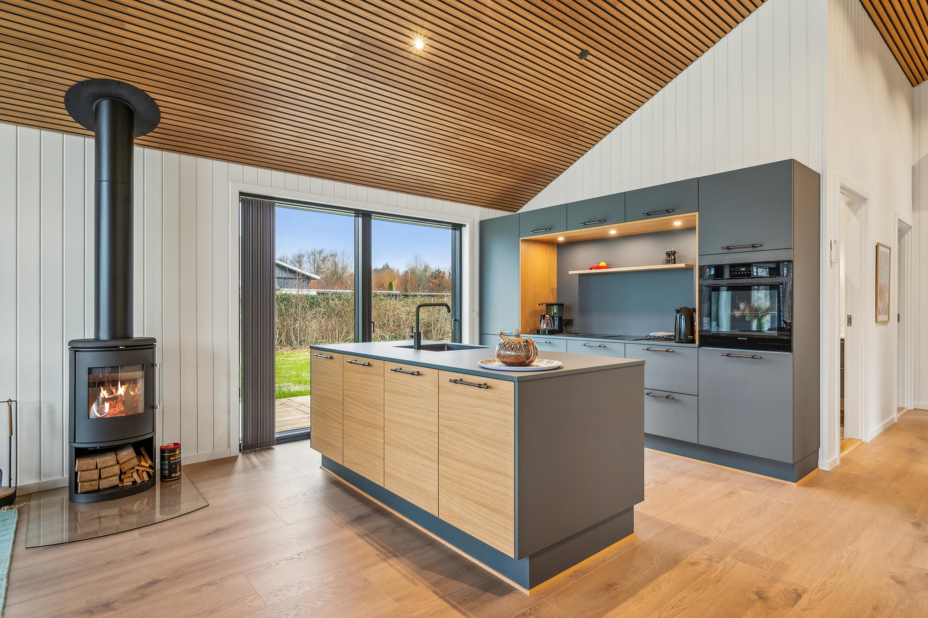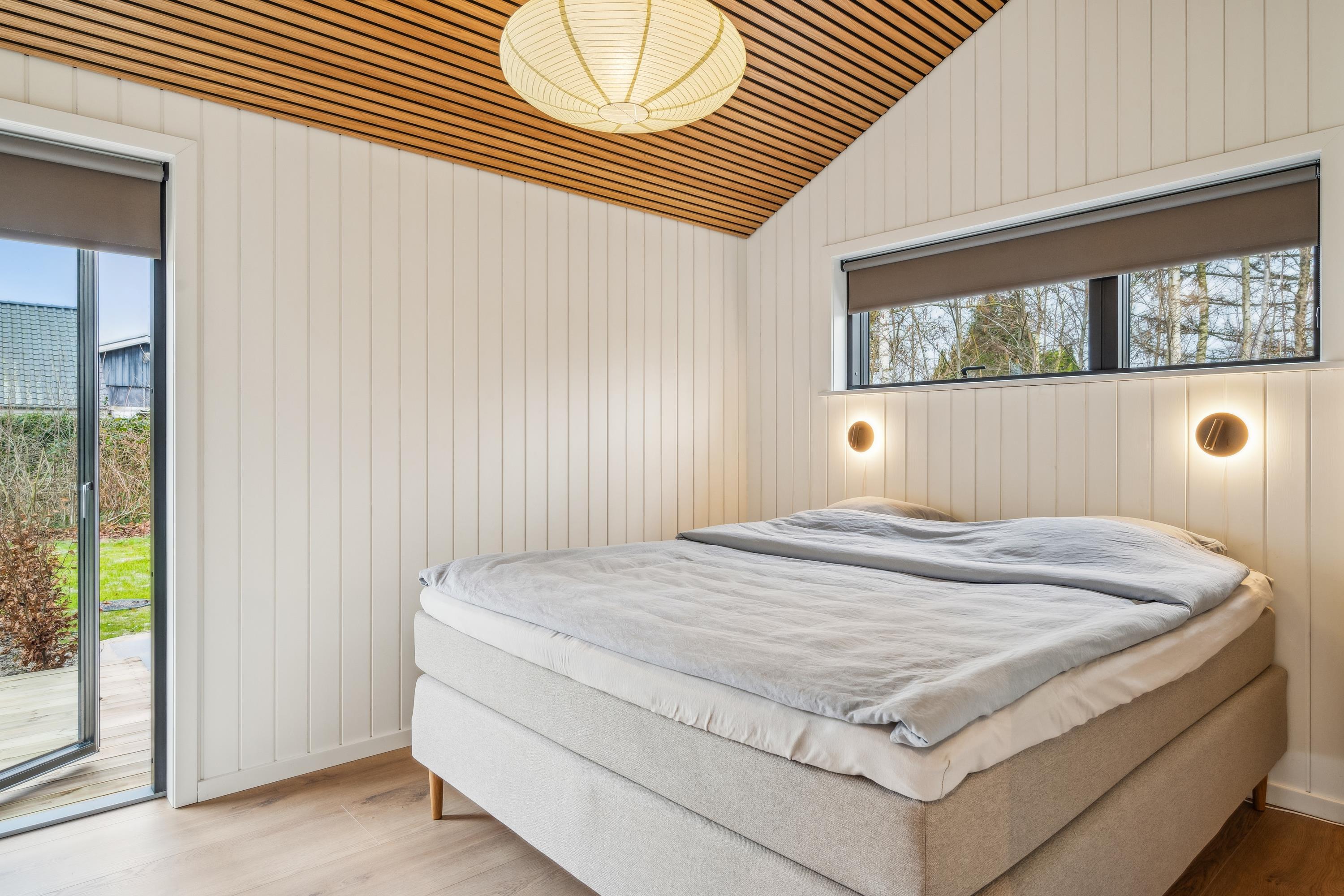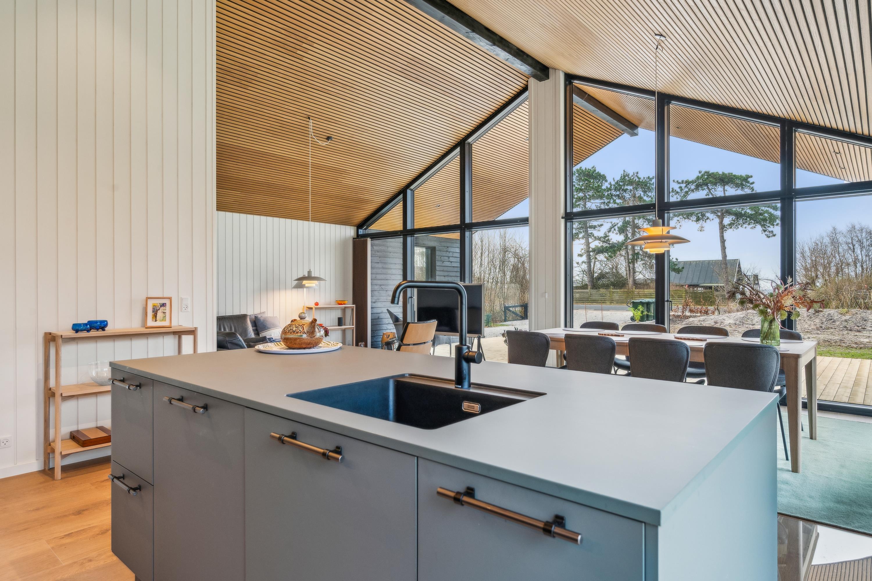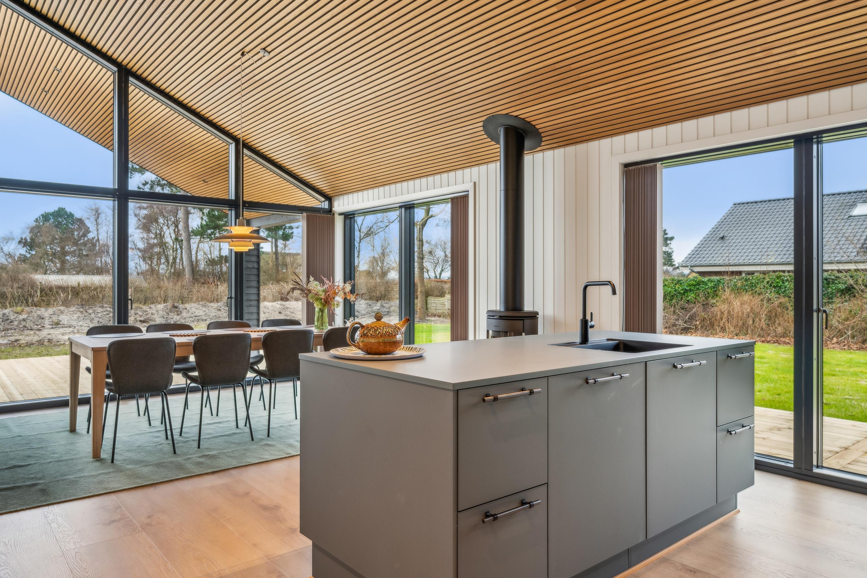Would you like to be the first to rent this beautiful, newly built, and stylish holiday home close to the water? The house was built in 2024/2025 and offers a cozy and well-furnished living room with high-quality furniture, a wood-burning stove, and a heat pump. From here, there is access to a large terrace with outdoor furniture.