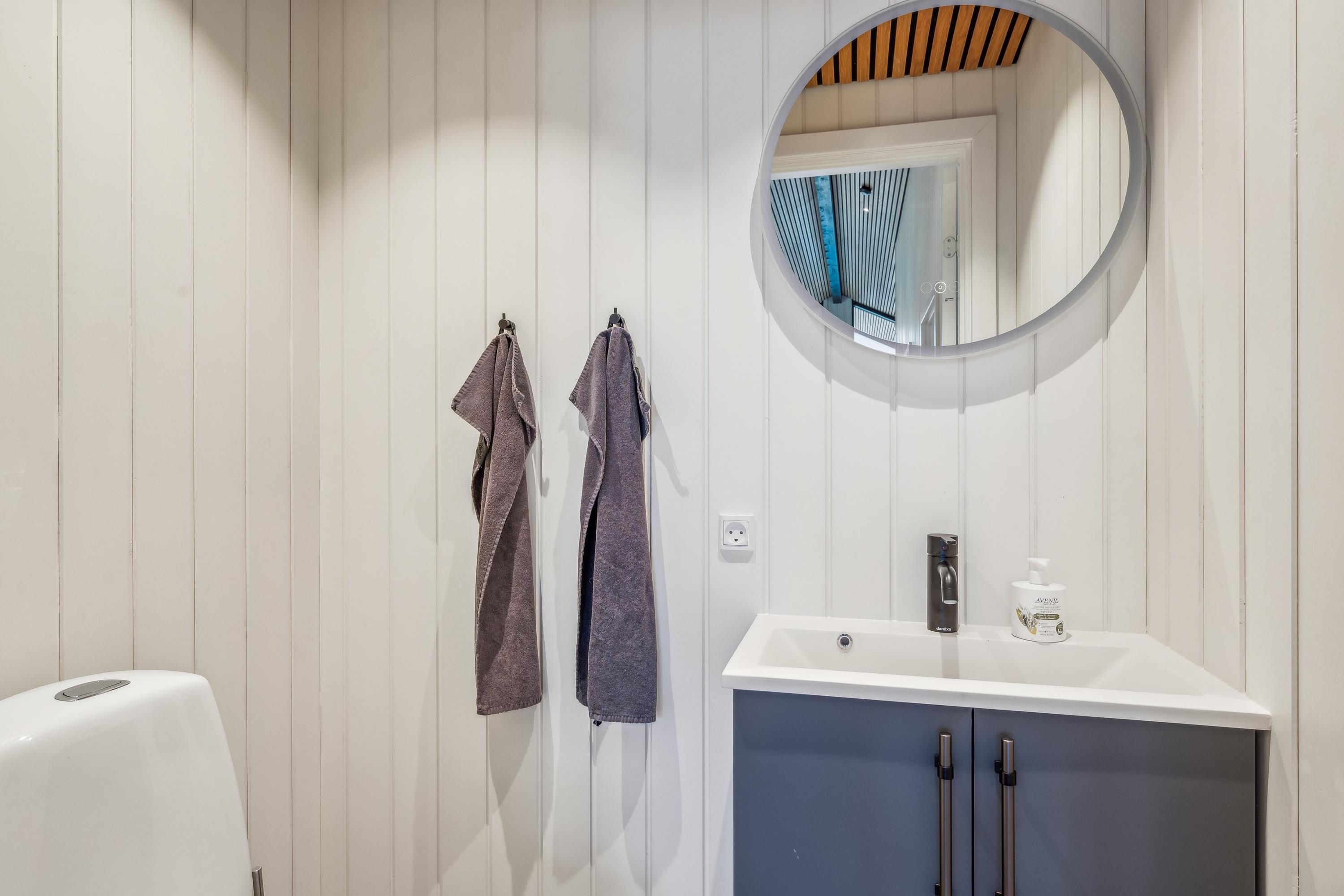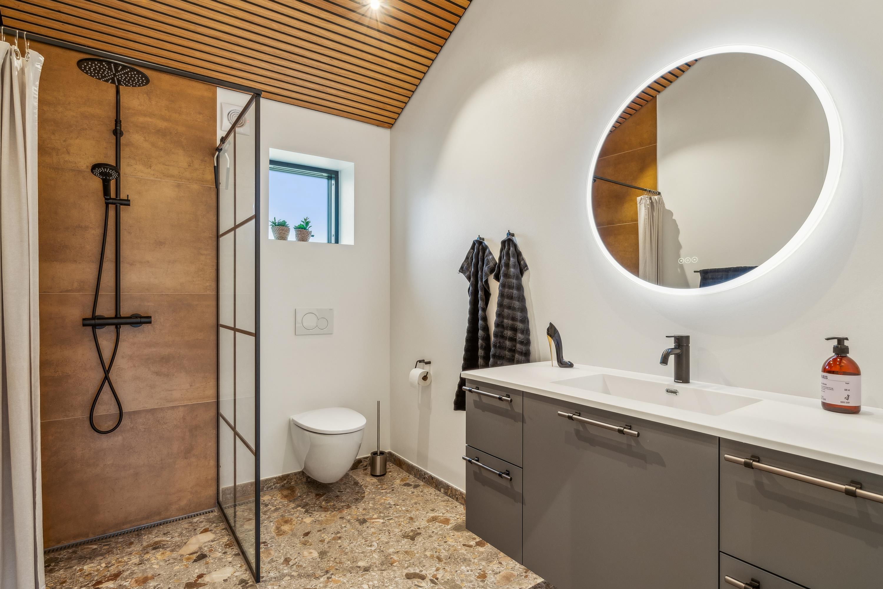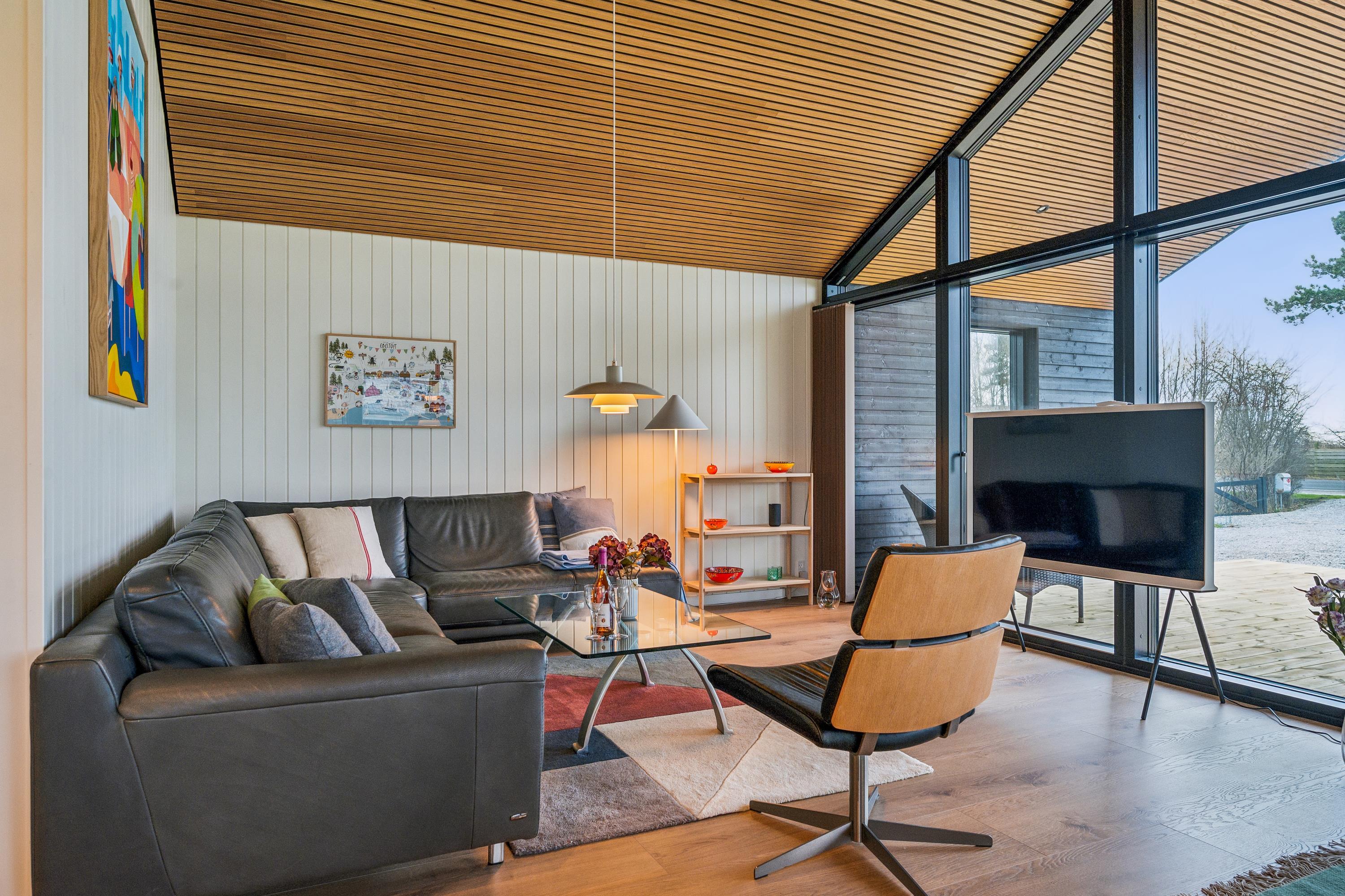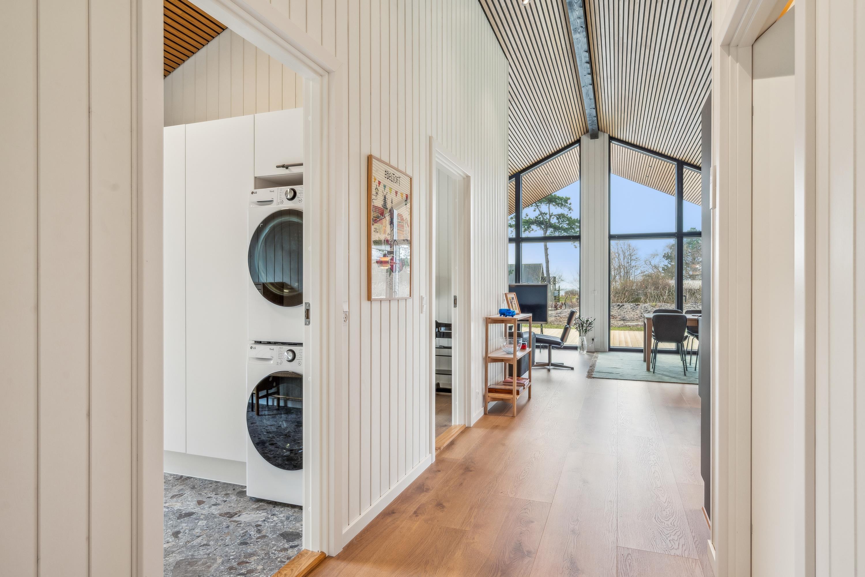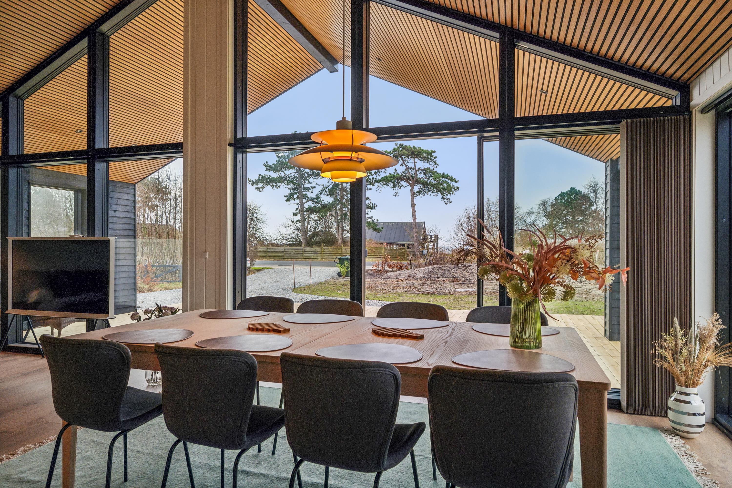 Would you like to be the first to rent this beautiful, newly built, and stylish holiday home close to the water? The house was built in 2024/2025 and offers a cozy and well-furnished living room with high-quality furniture, a wood-burning stove, and a heat pump. From here, there is access to a large terrace with outdoor furniture.