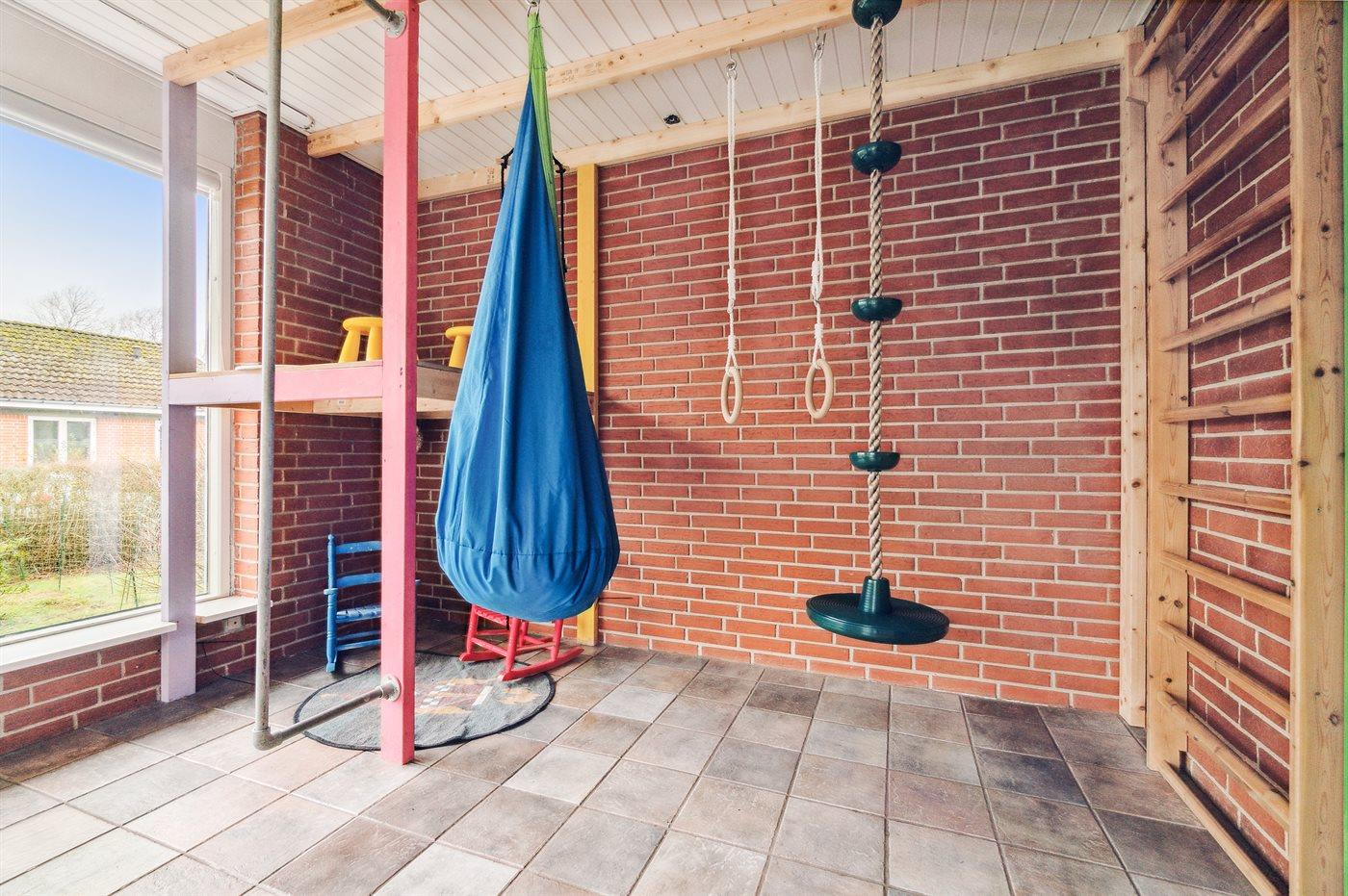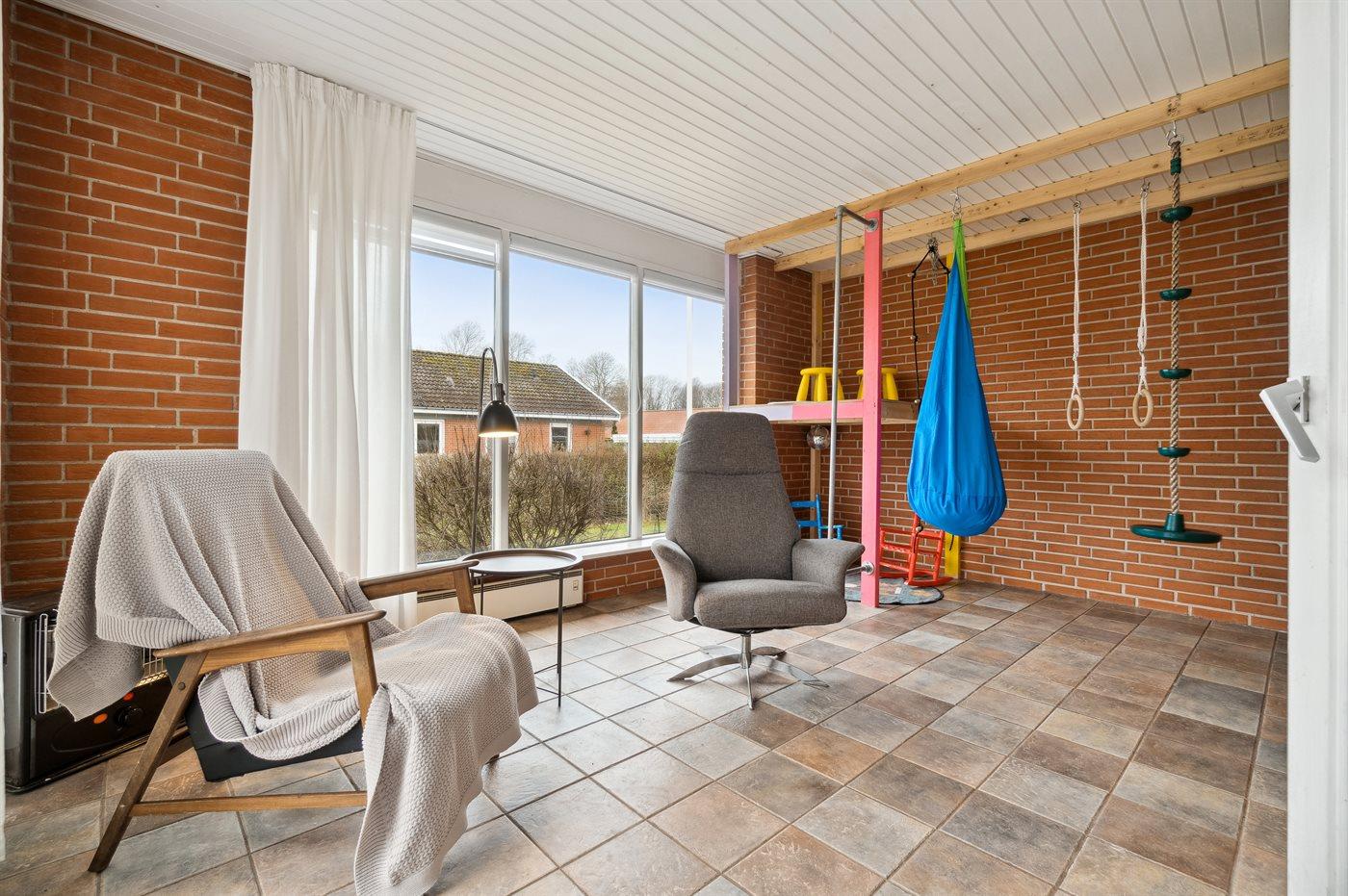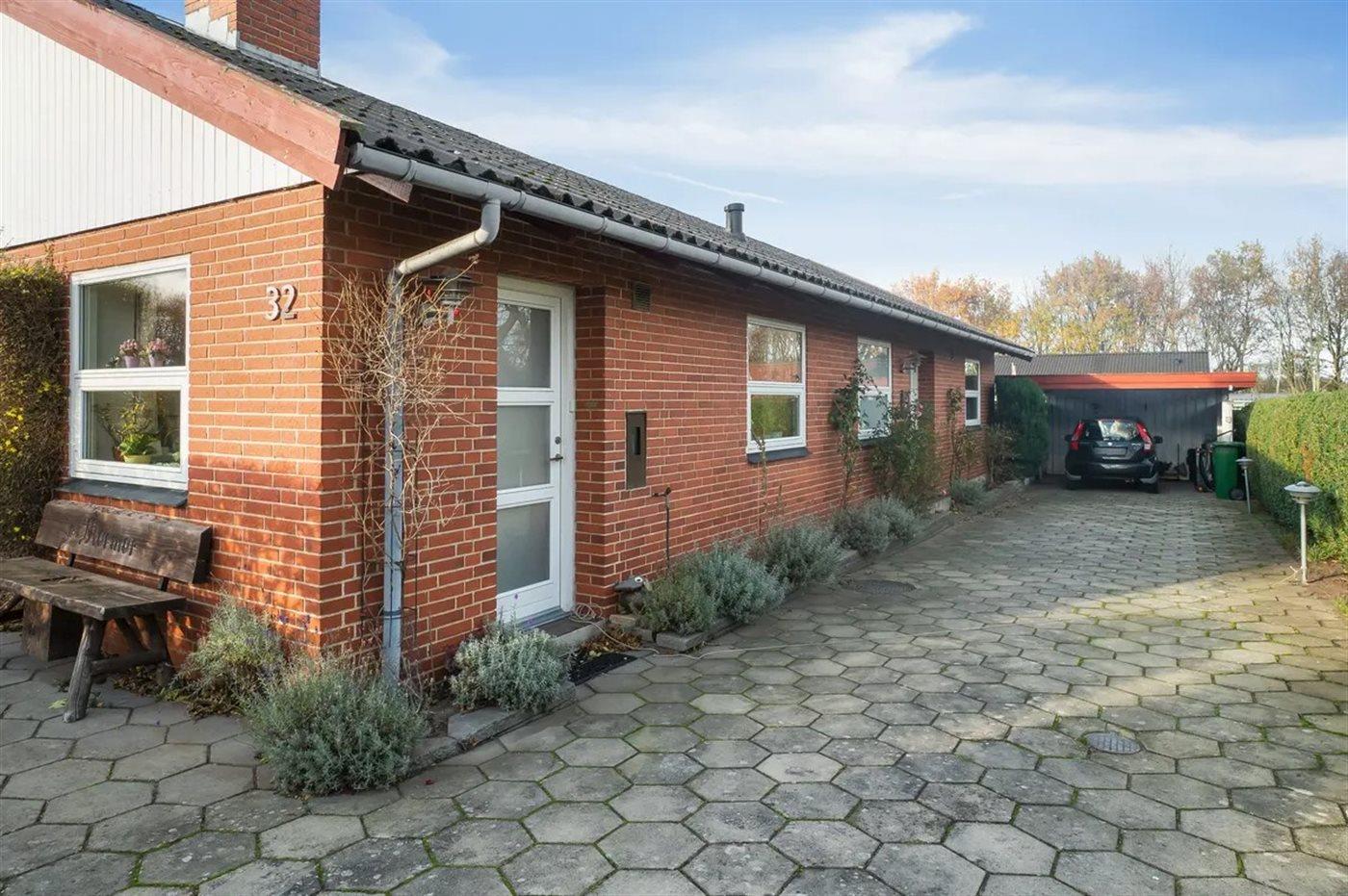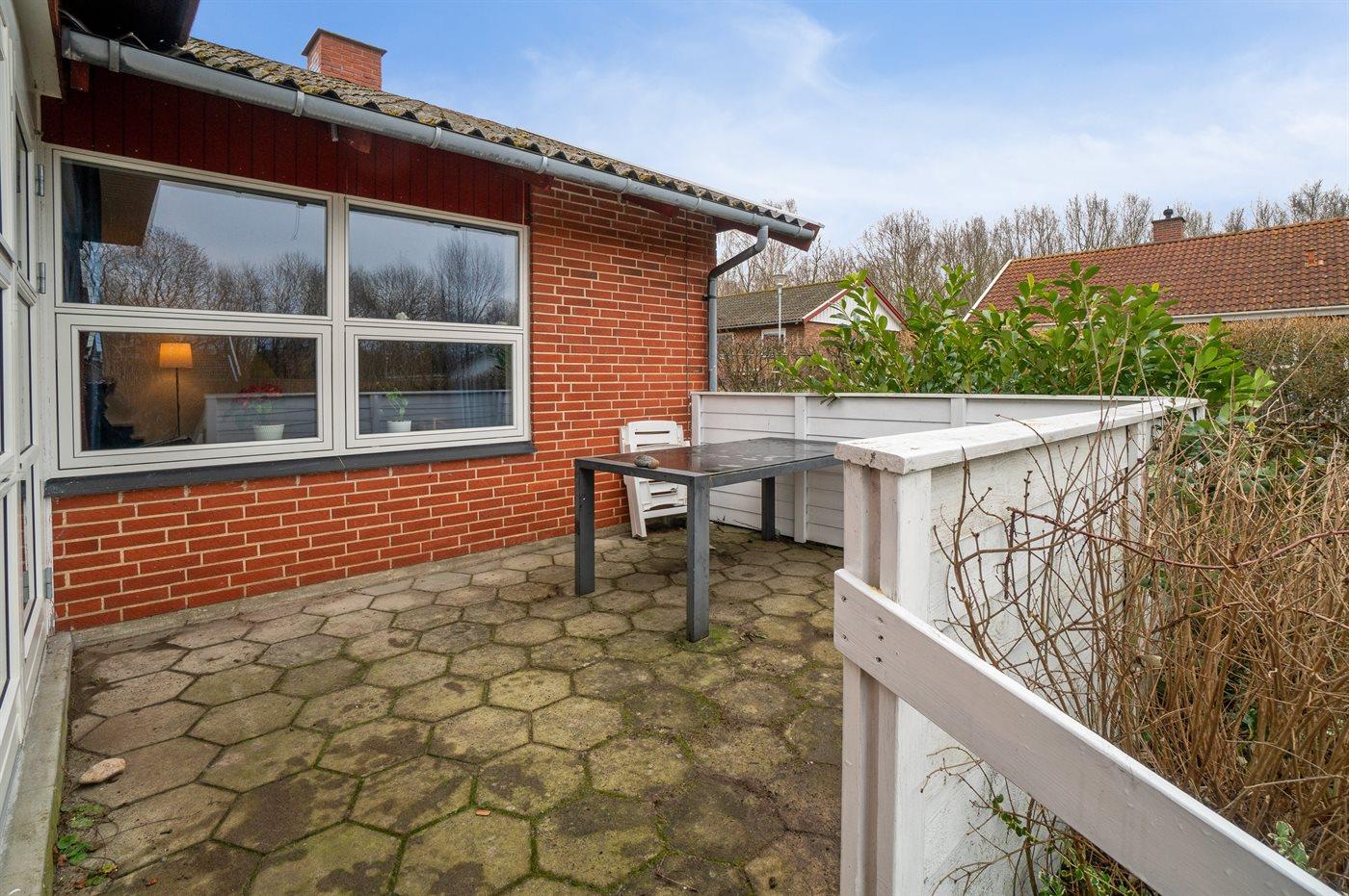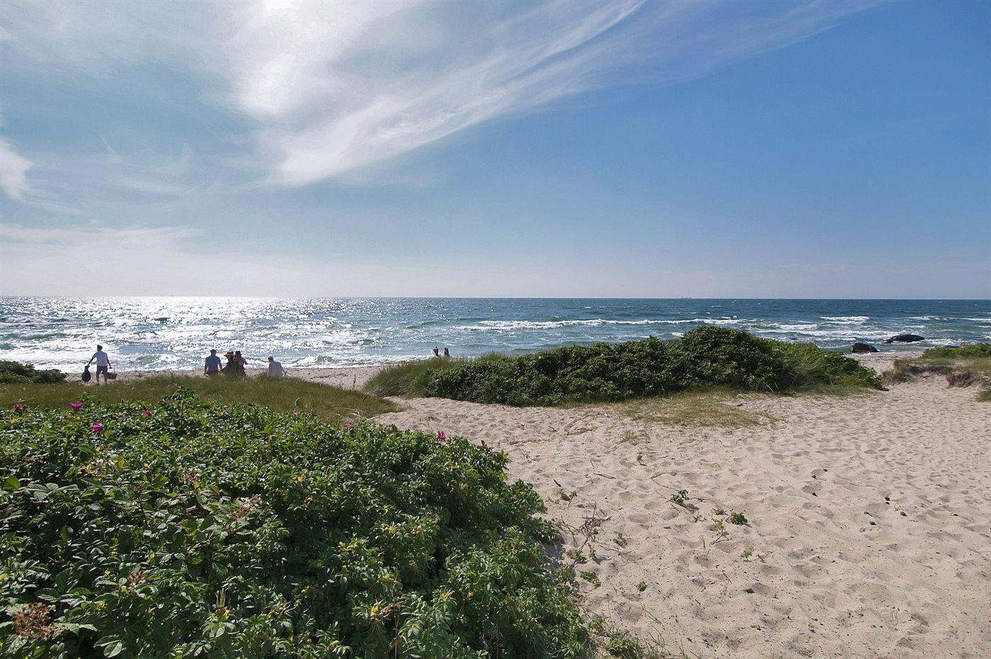 Ferieboligen er beliggende på en 700 m² stor anlagt have. Tomten er inngjerdet. Avstand til hav er 1000 m. Avstand til sjø er 760 m. Nærmeste butikk ligger i en avstand på 3000 m. Golfbane i en avstand på 7400 m. Til ferieboligen hører åpent terrasseareal. I tillegg er det utgang til utestue. Trampoline. Det er garasje til rådighet. P-plass ved huset.