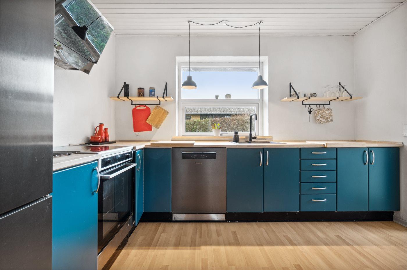 Kjøkkenet er utstyrt med 1 kjøleskap. Det er 4 induksjonskokeplater, varmluftsovn og oppvaskmaskin.