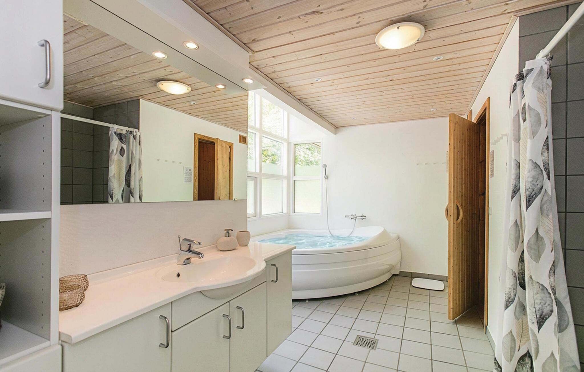 Det velutstyrte kvalitetshuset har to bad og tilbyr også god plass til to familier. Det ligger i et stort, barnevennlig feriehusområde med flere hus i nærheten. Huset er romslig, og du vil også slappe godt av på treterrassen. Det er enkelt å tilberede måltider på kjøkkenet, som er åpent mot stuen, og du har utsikt over naturen fra spisebordet. Det er boblebad og badstue på det ene badet. Det er fire soverom og en hems for barn. På hemsen er det PlayStation 3. Det er gode gang- og sykkelstier i området. Hasle ligger 3 km unna, hvor du kan gjøre gode innkjøp og besøke et fiskerøkeri. Havnebadet og fellesbadstuen i Hasle havn er også populære. Et høyt nivå av komfort sikrer et herlig opphold uansett årstid.