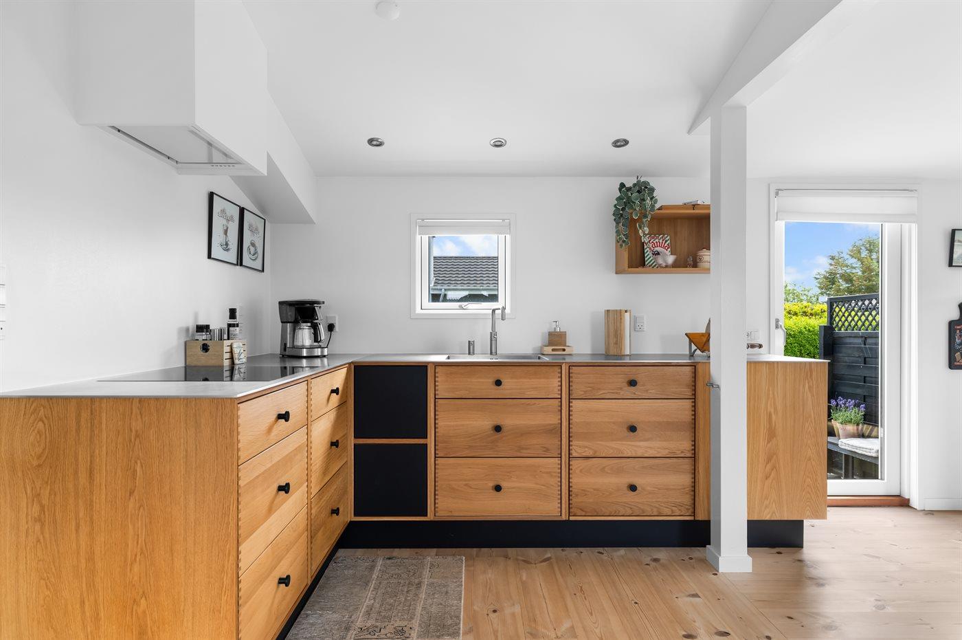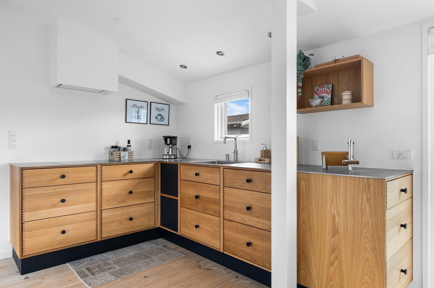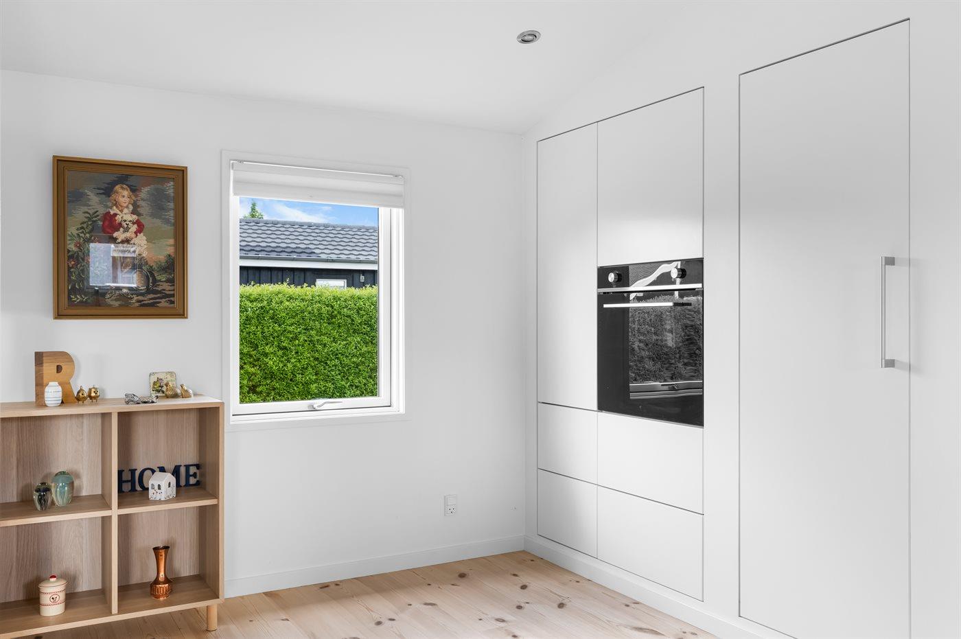 Kjøkkenet er utstyrt med 1 kjøleskap. Det er 4 induksjonskokeplater, varmluftsovn, mikrobølgeovn og oppvaskmaskin.