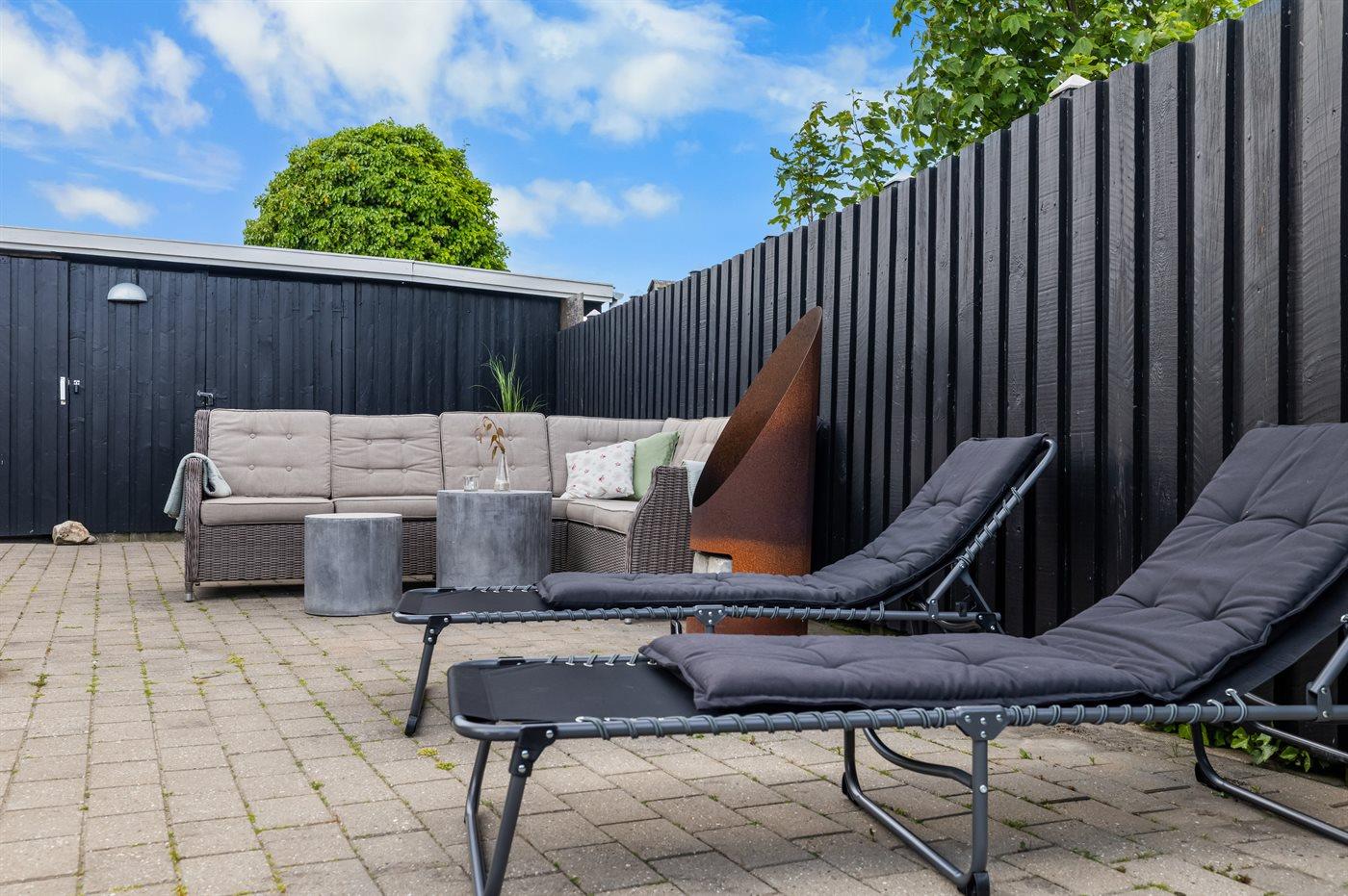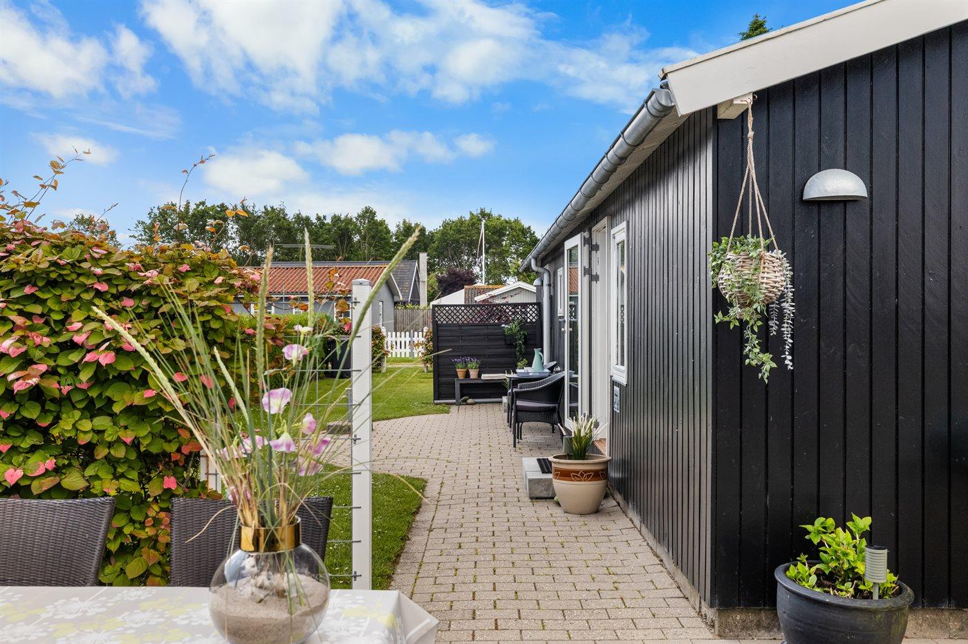 Ferieboligen er beliggende på en 1307 m² stor anlagt have. Avstand til hav er 75 m. Nærmeste butikk ligger i en avstand på 4600 m. Til ferieboligen hører åpent terrasseareal. Avstand til lekeplass er 500 m. Bålplass. Det er grill til rådighet. P-plass ved huset.