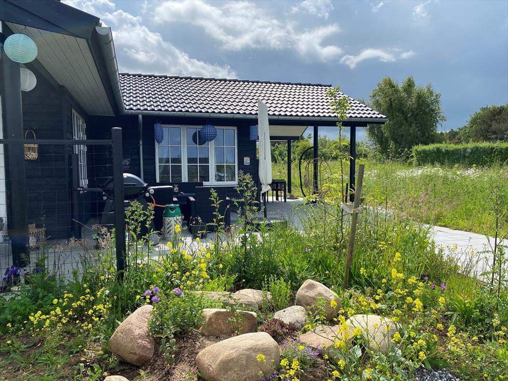 Unter freiem Himmel lädt eine große Terrasse zu ausgedehnten Sonnenbädern und entspannten Lesestunden ein. Bei Einbruch der Dunkelheit kannst du dich mit deinen Lieben auf den überdachten Terrassenteil zurückziehen. Lange Urlaubstage lasst ihr gemeinsam sicherlich gern mit einem köstlichen Abendessen vom Grill ausklingen. Das Naturgrundstück bietet viel Biodiversität und lockt daher zahlreiche Schmetterlinge, Bienen und andere interessante Insekten an. Spaß und Aktivität für die gesamte Familie verspricht das schnell erreichte Gemeinschaftsareal, auf dem ihr zusammen beispielsweise Boccia und Fußball spielen könnt.