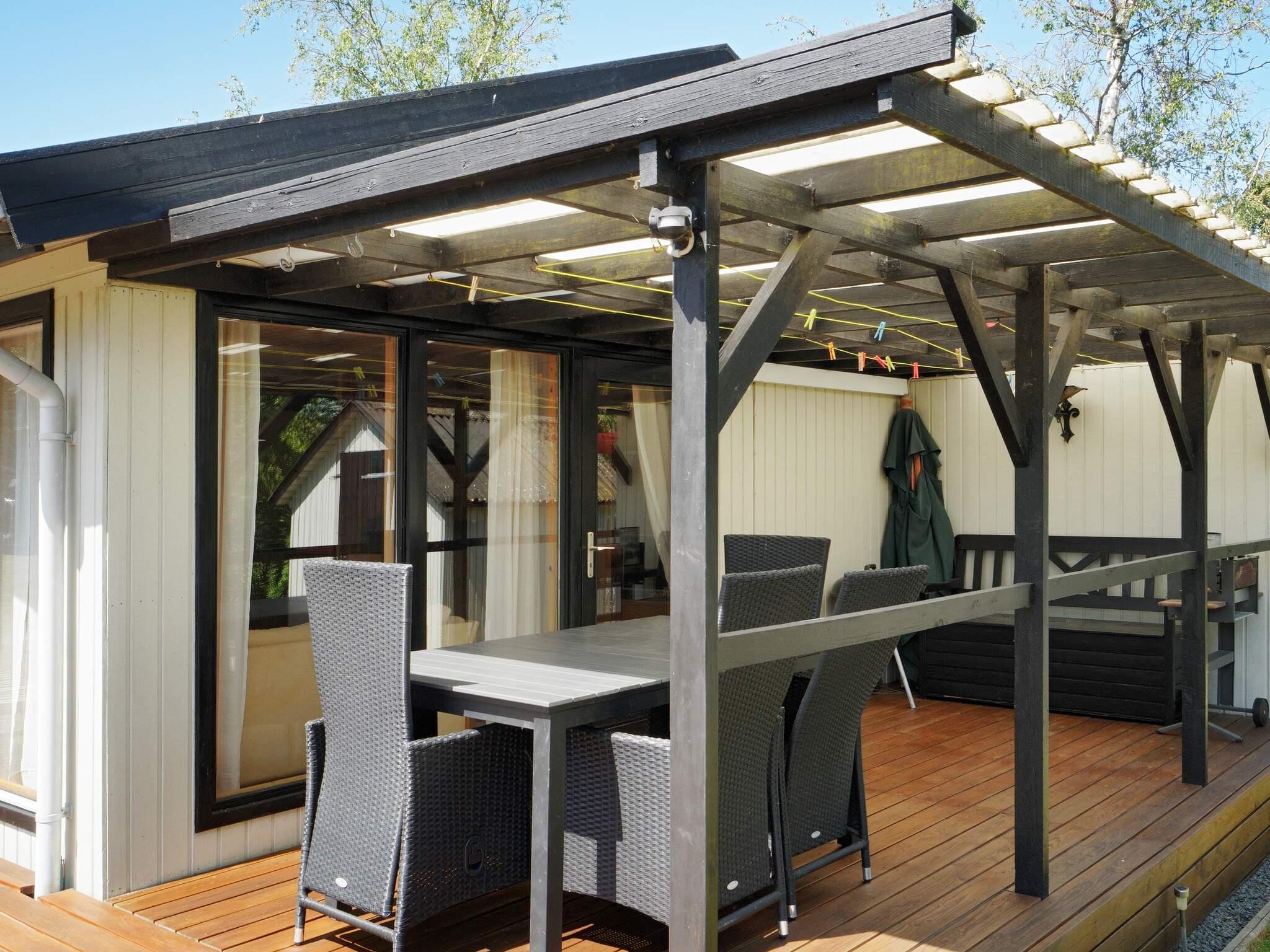 Fra stuen er der udgang til en overdækket terrasse samt en stor, solrig træterrasse, hvor man kan nyde udelivet. I haven er der masser af plads på den store plæne, hvor forskellige havespil kan benyttes. Et mindre anneks med køjeseng giver ekstra sovepladser, især velegnet til børn. Alt i alt er huset oplagt til en familie, der ønsker fred og hygge tæt på natur og strand.