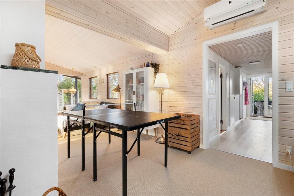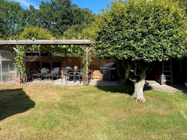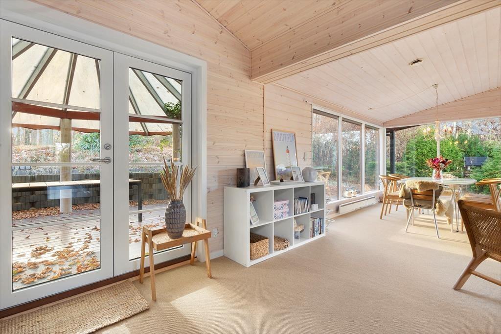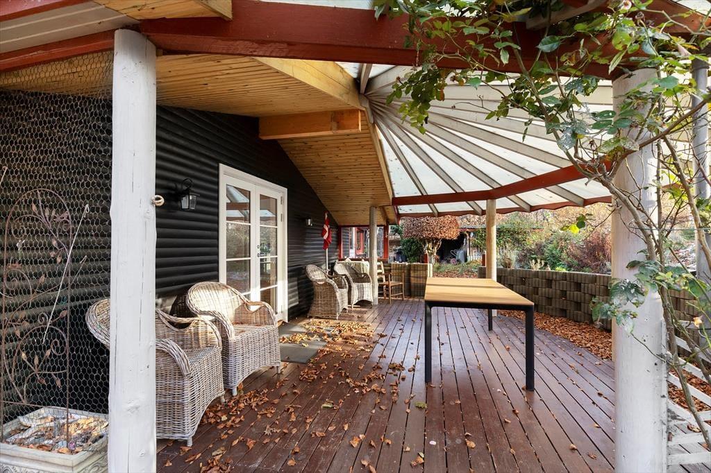 Nur 250 m vom Strand entfernt liegt das Haus behütet zwischen großen, schönen Bäumen, die Windschutz geben, ohne dem Haus oder den Terrassen die Sonne zu nehmen. Das Grundstück erstreckt sich über mehrere Ebenen, sodass du immer wieder neue kleine Ecken entdeckst, in denen du dich niederlassen kannst. Auf der Gartenseite erwartet dich die große, überdachte Terrasse zur grünen Rasenfläche hin – ideal für lange Mahlzeiten, Sommerspiele und entspannte Stunden im Schatten, wenn die Nachmittagssonne hochsteht. Vor dem Haus liegt eine gemütliche Terrasse, auf der der Morgenkaffee besonders gut schmeckt. Über das gesamte Grundstück verteilt findest du kleine Sonnenplätze, die zu stillen Momenten, einem guten Buch oder einem Nickerchen in der Wärme einladen. Insgesamt bietet dir das Grundstück frische Luft, Licht und die Möglichkeit, genau den Platz zu wählen, der zur Stimmung des Tages passt – egal ob du Sonne suchst, Schatten oder eine stille Pause zwischen den Bäumen.