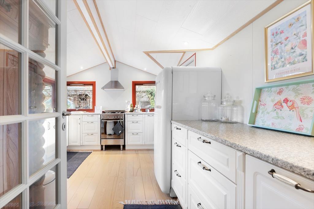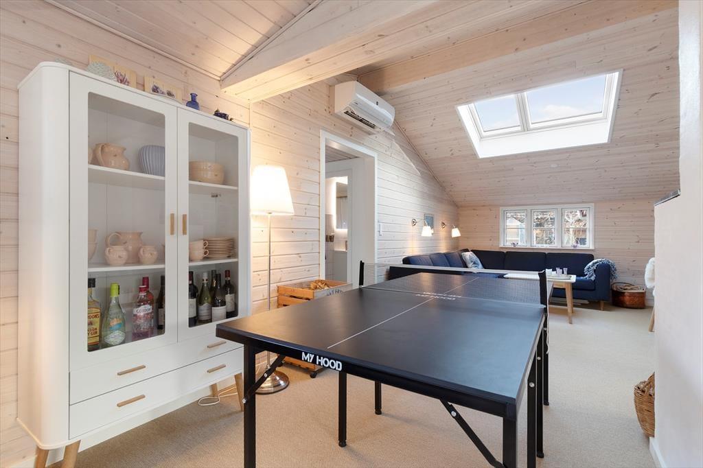 Schon beim Eintreten in dieses Ferienhaus spürst du Leichtigkeit. Das geschmackvoll eingerichtete Ferienhaus ist hell und freundlich und voller Farben, die Ruhe und Ferienstimmung schaffen. Hier fällt es dir leicht, tief durchzuatmen und das Gefühl von Freiheit zu genießen, das ein Ferienhaus dir schenken soll. Die separate Landhausküche ist am Morgen das Herz des Hauses. Hier kochst du Kaffee, während die Sonne durch die Klöntür scheint, die direkt auf die Terrasse führt. Der Gasherd macht das Kochen zu einem Vergnügen und der charmante Smeg-Kühlschrank hält kühle Getränke bereit, die du mit nach draußen nehmen kannst. Von der Küche gelangst du in das große Wohnzimmer. In der Mitte des Raumes steht der Kaminofen, der an kühlen Abenden Gemütlichkeit verbreitet. Rundherum findest du zwei einladende Sofaecken – perfekt zum Entspannen, für gute Gespräche oder eine stille Pause mit einem Buch. Die beiden Esstische bieten viel Platz für gemeinsame Mahlzeiten oder lange Brettspielabende. Ein kleines Tischtennisspiel sorgt für Lachen und kleine Wettbewerbe. Die Terrassentür führt dich auf die große, überdachte Terrasse, auf der du auch dann geschützt essen kannst, wenn das Wetter wechselt.