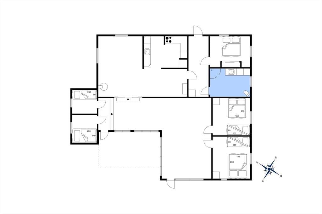 Drei große und zwei etwas kleinere Schlafzimmer sind gut im Ferienhaus verteilt, so dass Sie ausreichend Gelegenheit haben, gut zu schlafen - auch wenn ein Teil der Gesellschaft schnarchen oder lange aufbleiben möchte. Im Wohnbereich haben Sie viel Platz, um sich zu treffen: An mehreren Esstischen kann man sich zu einem leckeren Essen versammeln oder seine Brettspiele hervorholen, und die bequeme Sofalandschaft lädt zur totalen Entspannung ein, zum Beispiel mit einem Feuer im Holzofen und einem spannenden Film im Fernsehen. Eine geräumige Küche mit Geschirrspüler ist Teil des Wohnbereichs, und von der Eingangshalle aus haben Sie Zugang zu einem großen Badezimmer mit Dusche, Waschmaschine und Wäschetrockner.