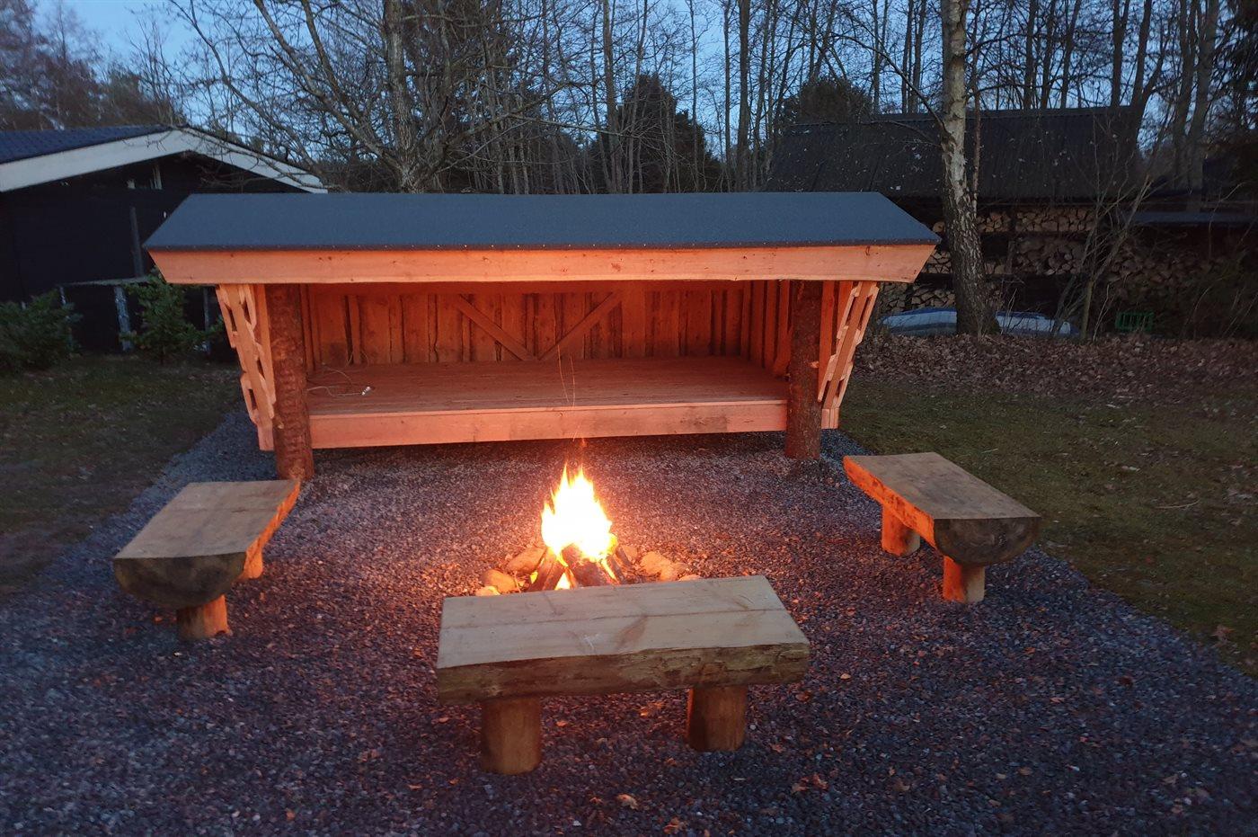 Ferieboligen er beliggende på en 1267 m² stor anlagt have. Avstand til hav er 750 m. Nærmeste butikk ligger i en avstand på 4000 m. Til ferieboligen hører 32 m² terrasseareal. I tillegg er det 8 m² overdekket terrasse. Det er Redskapsrom. Huske. Sandkasse. Shelter. Det er carport til rådighet. Det er montert kontakt til lading av elbil ved huset. Ladekontakt type 2. Med 11 kW ladeeffekt.