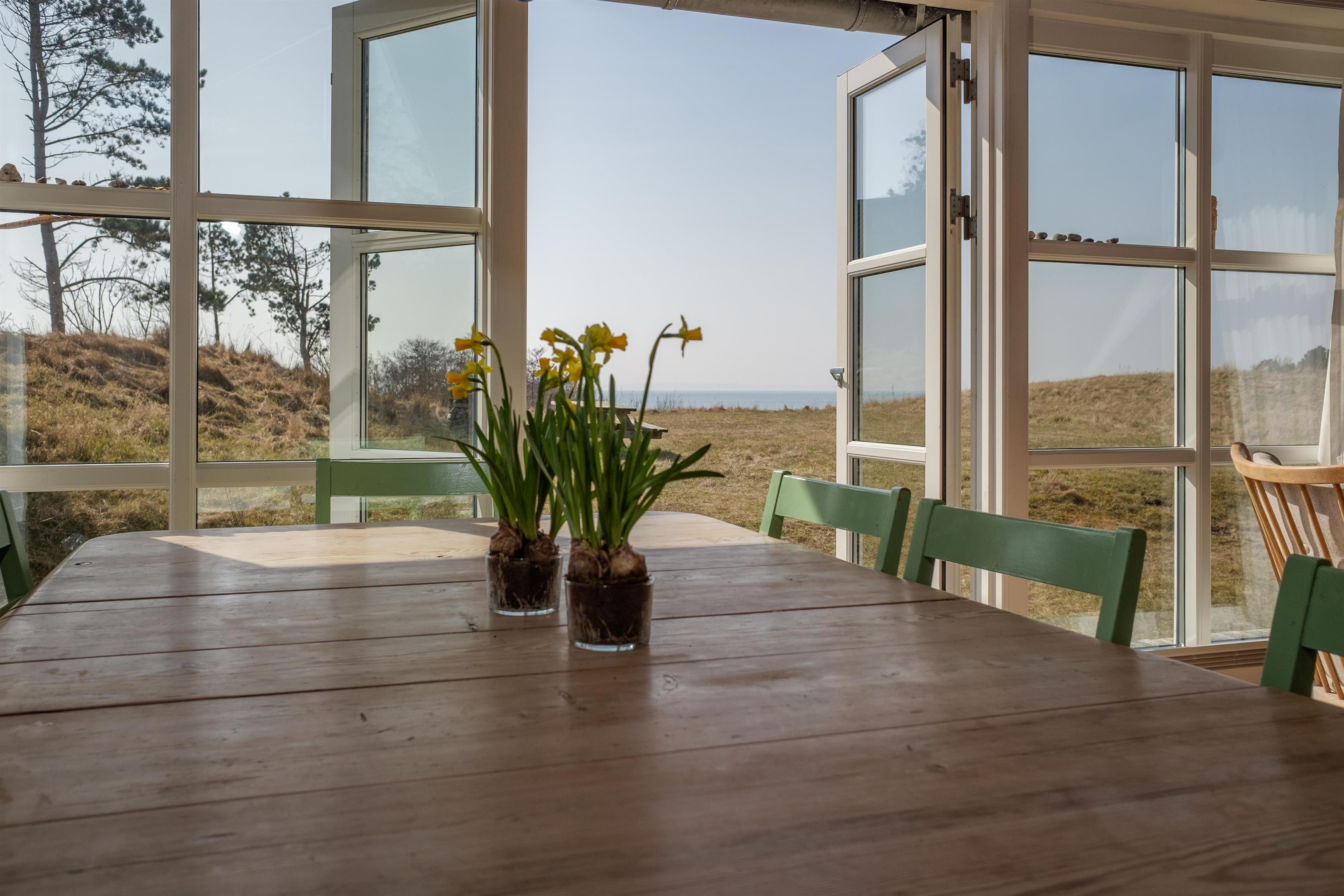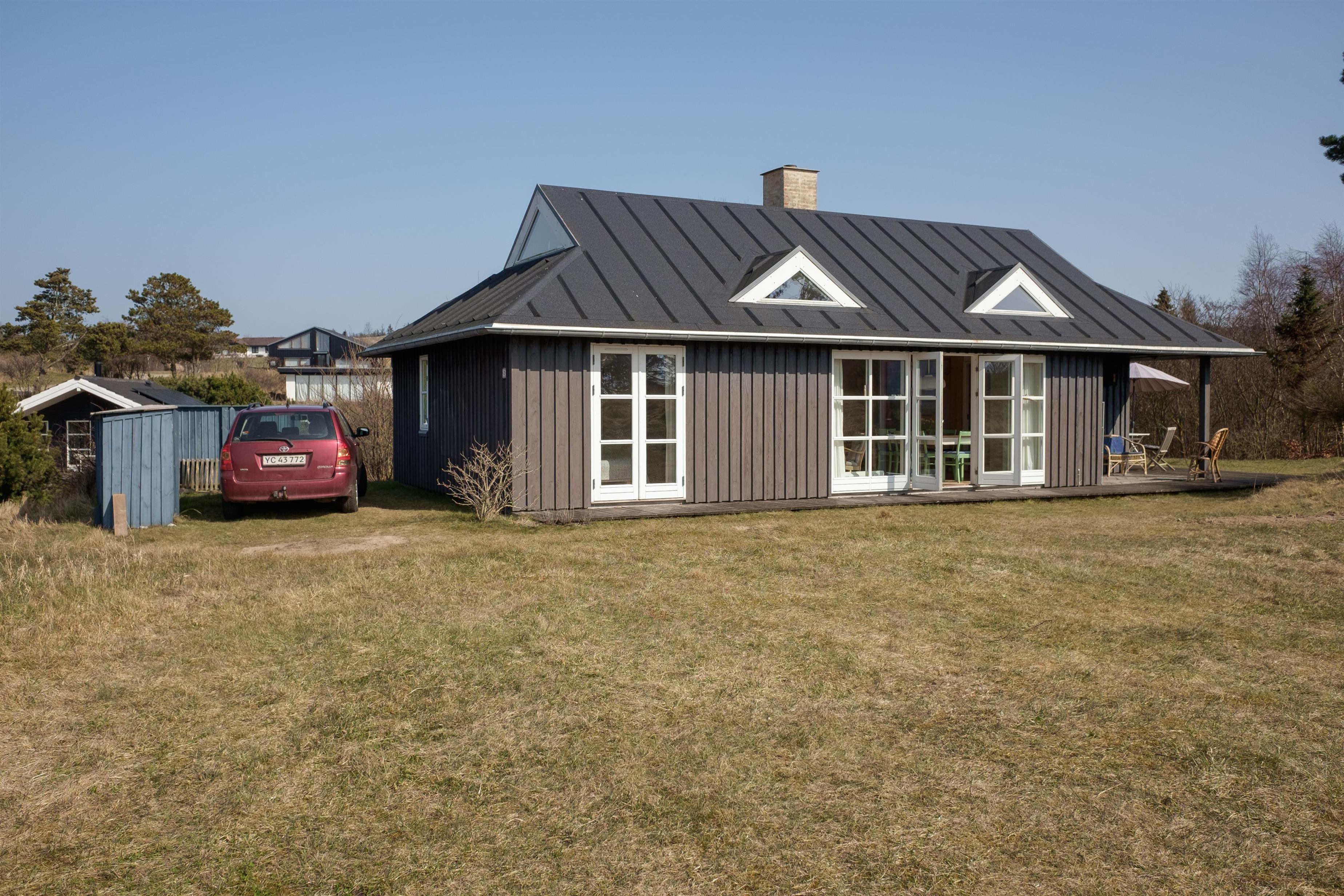 A truly lovely summer house located near Sletterhage Lighthouse, with panoramic views over Aarhus Bay. The house is beautifully situated on a large, secluded natural plot with bushes and trees and features a lovely terrace, both open and covered, equipped with outdoor furniture, a parasol, and a grill. The property also includes a firepit and a sandbox for the little ones.
