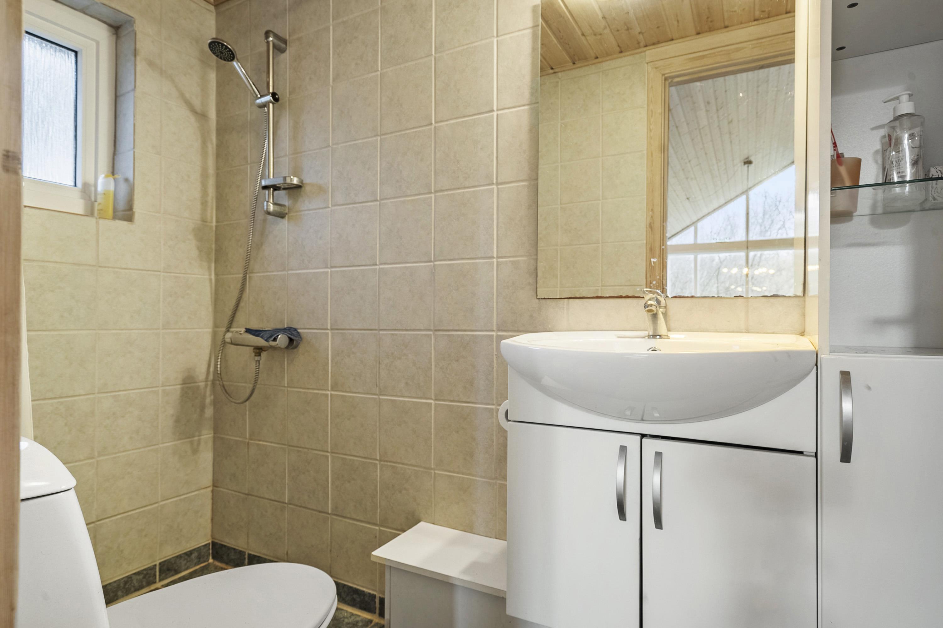 The home has three spacious bedrooms, all with double beds, ensuring a good night's sleep for everyone. There is also a There is room for two extra people on the loft, making it possible to maximize the sleeping capacity to a total of 8. The modern bathroom is equipped with a shower and toilet, making it easy for everyone to freshen up after a long day of activities.