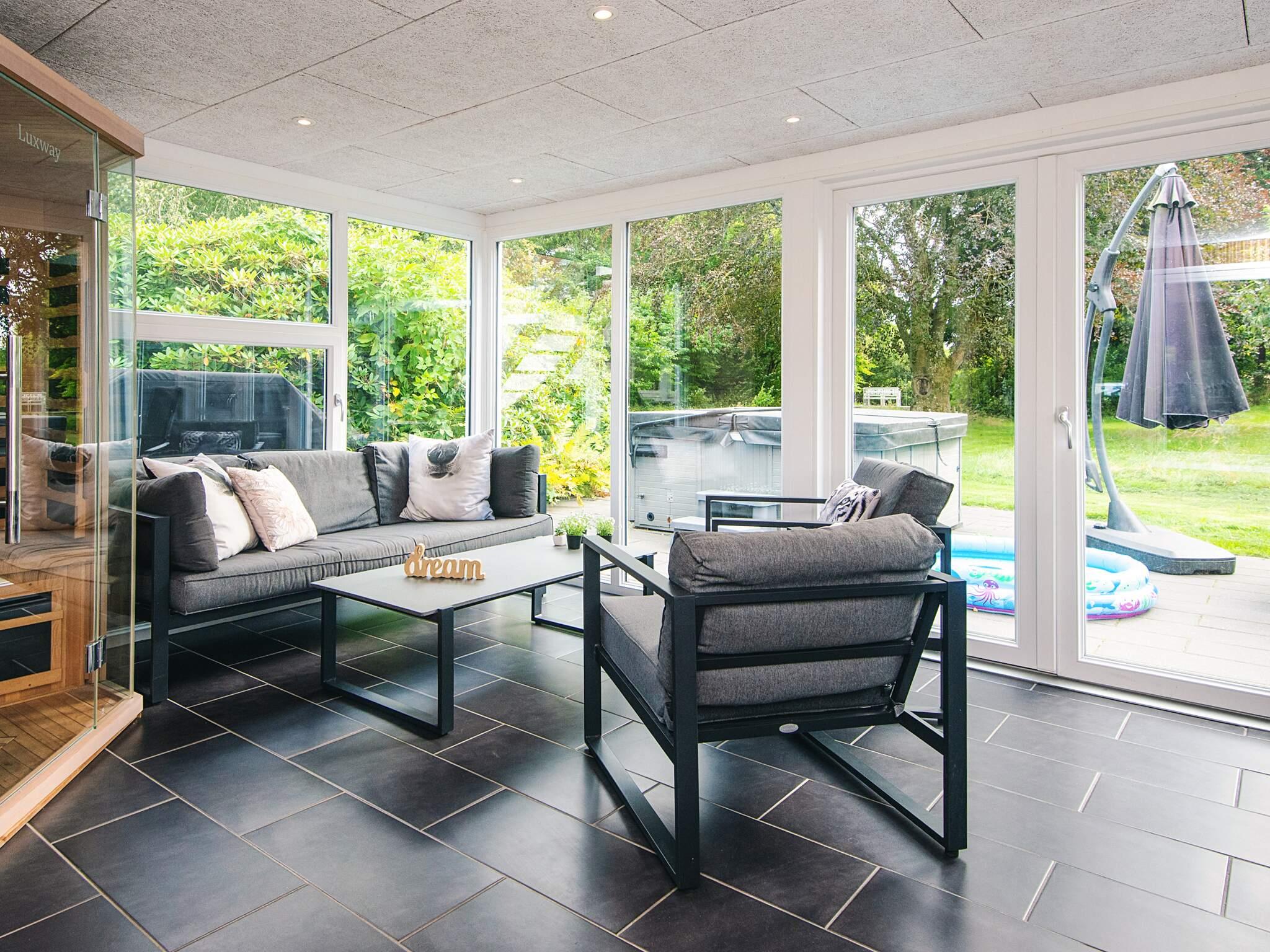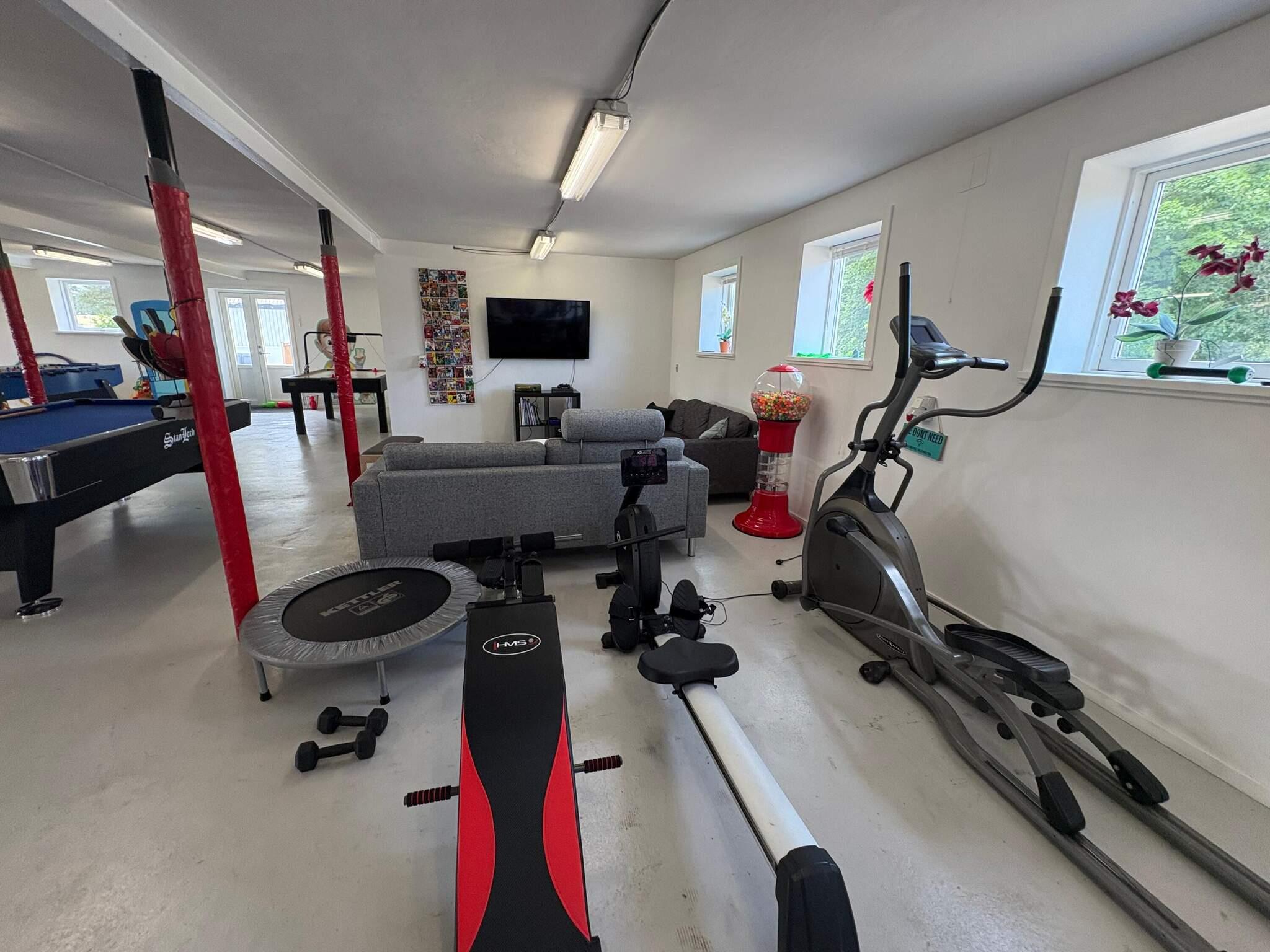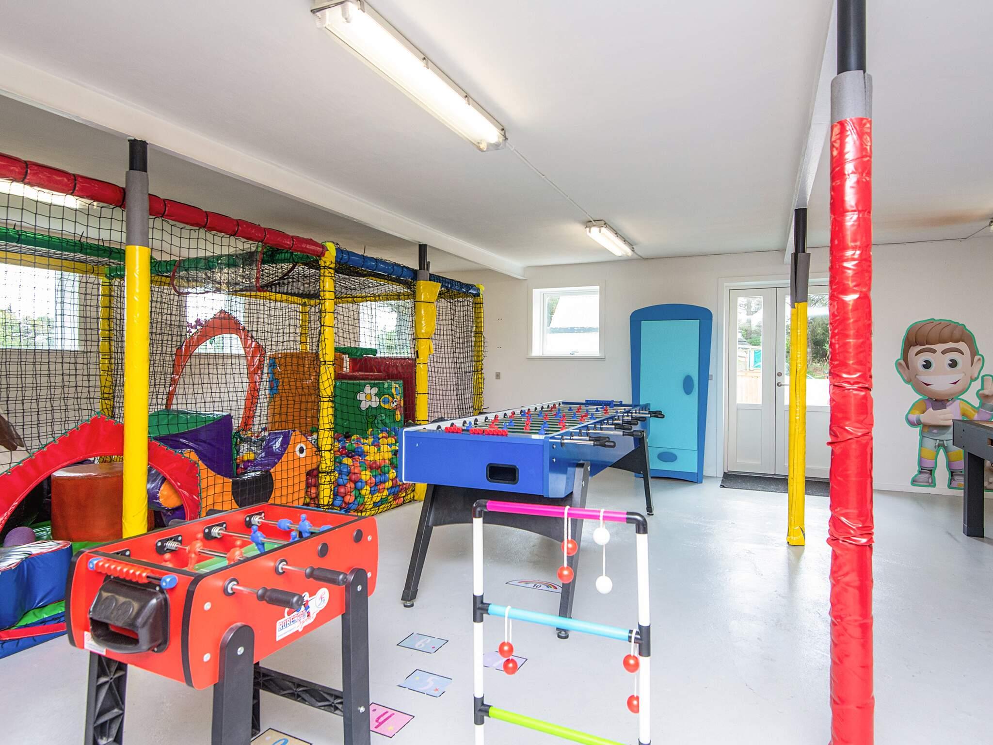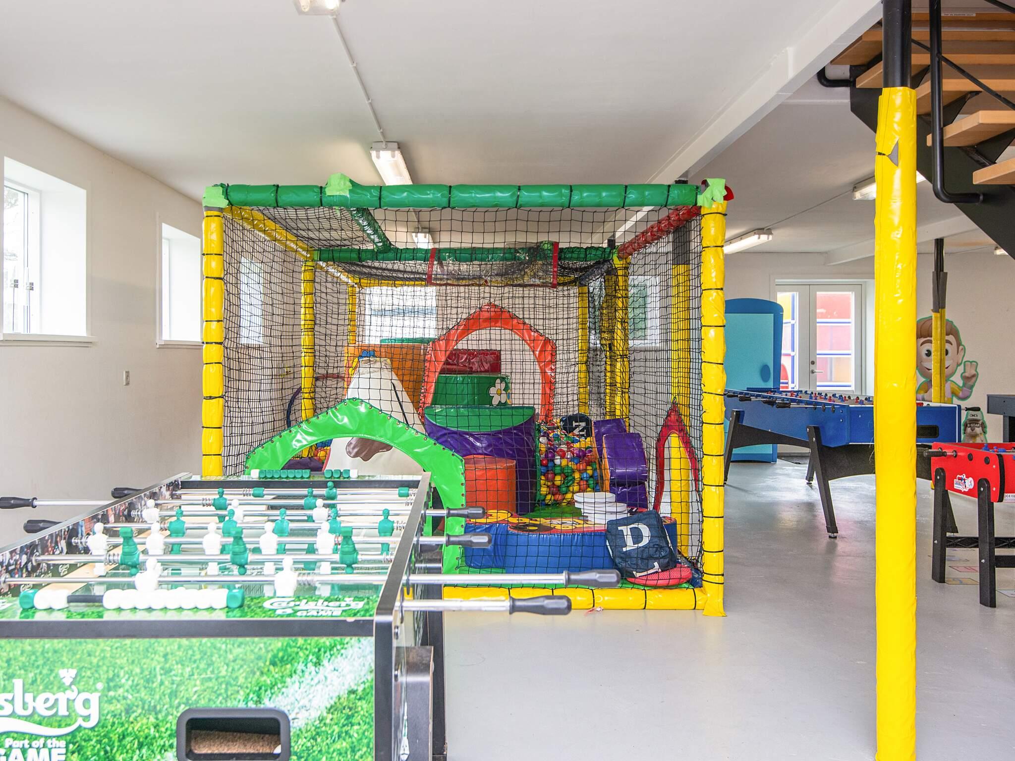 Køkkenet er i åben forbindelse til stuen. Der er 4 soveværelser, alle med gode senge. Der er et 180 m2 stort aktivitetsrum som ligger i en bygning ved siden af huset, ca. 20 meter. Aktivitetsrummet indeholder billard, airhockey, kuglebad/boldbassin, bob spil, dart, bordtennis, bordfodbold, pudegynge, PlayStation 4, storskærm til streaming af film samt masser af legesager og spil.