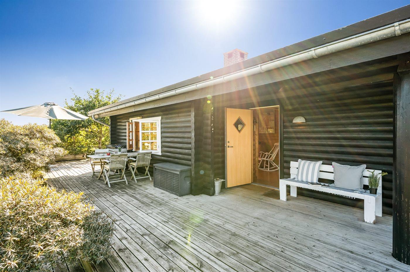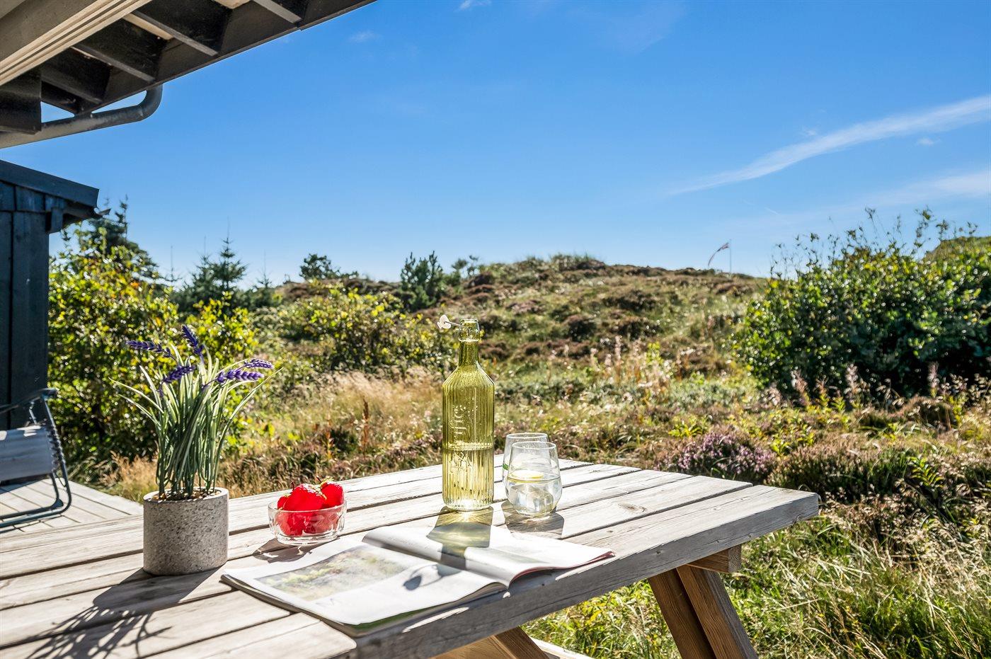 Ferieboligen er beliggende på en 1505 m² stor klittomt. Avstand til hav er 500 m. Nærmeste butikk ligger i en avstand på 1100 m. Golfbane i en avstand på 4200 m. Til ferieboligen hører åpent terrasseareal. I tillegg er det overdekket terrasse. Det er Redskapsrom. Huske. Sandkasse. Det er grill til rådighet. P-plass ved huset.