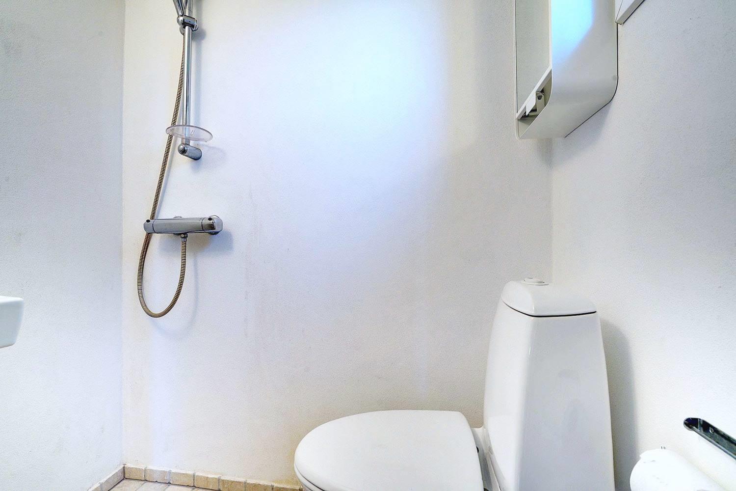 Einfach eingerichtet Holzhaus auf einem ruhiges Naturgrund. Badezimmer mit Fussbodenheizung. E-Heizung nur im Kojenraum und Bad.