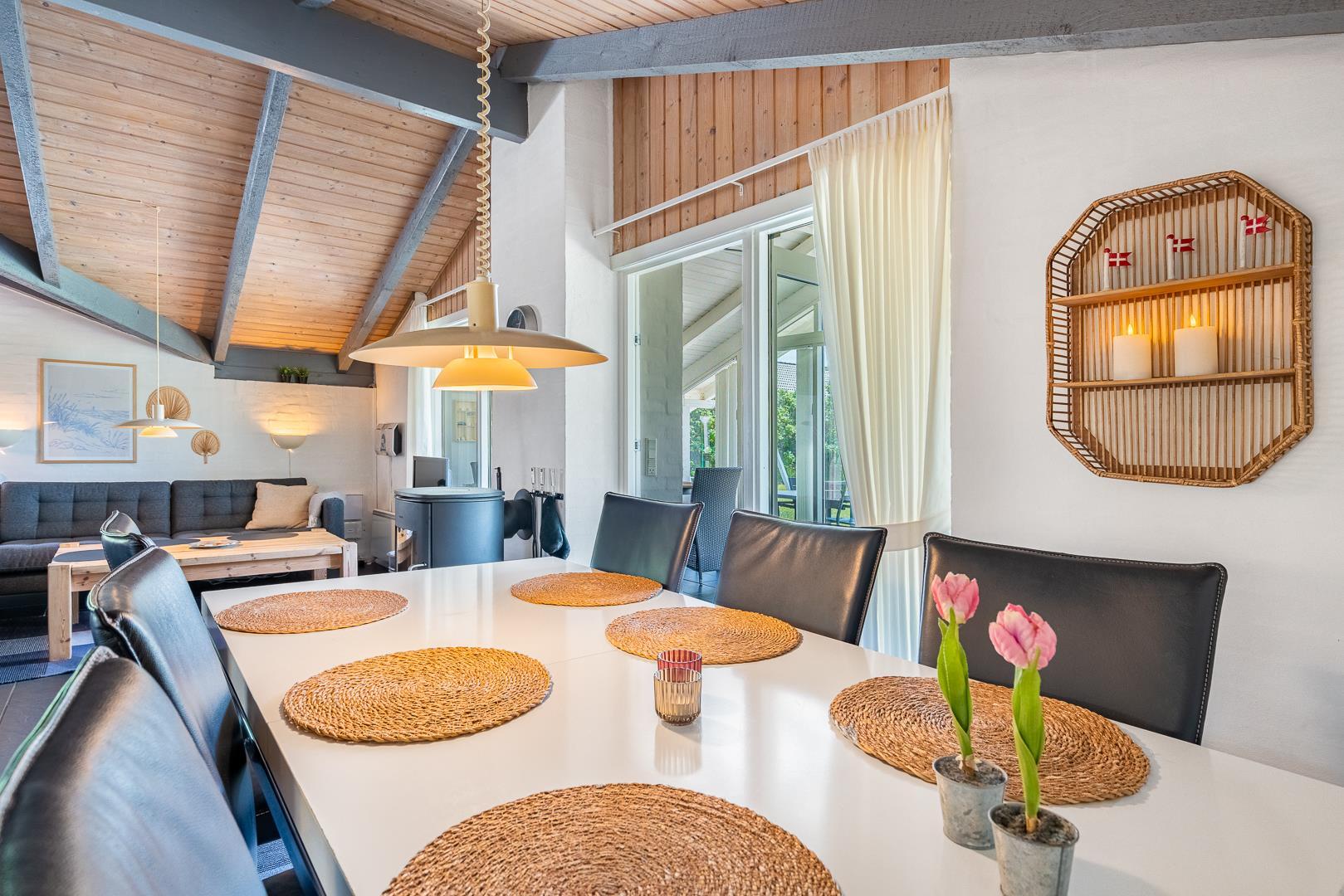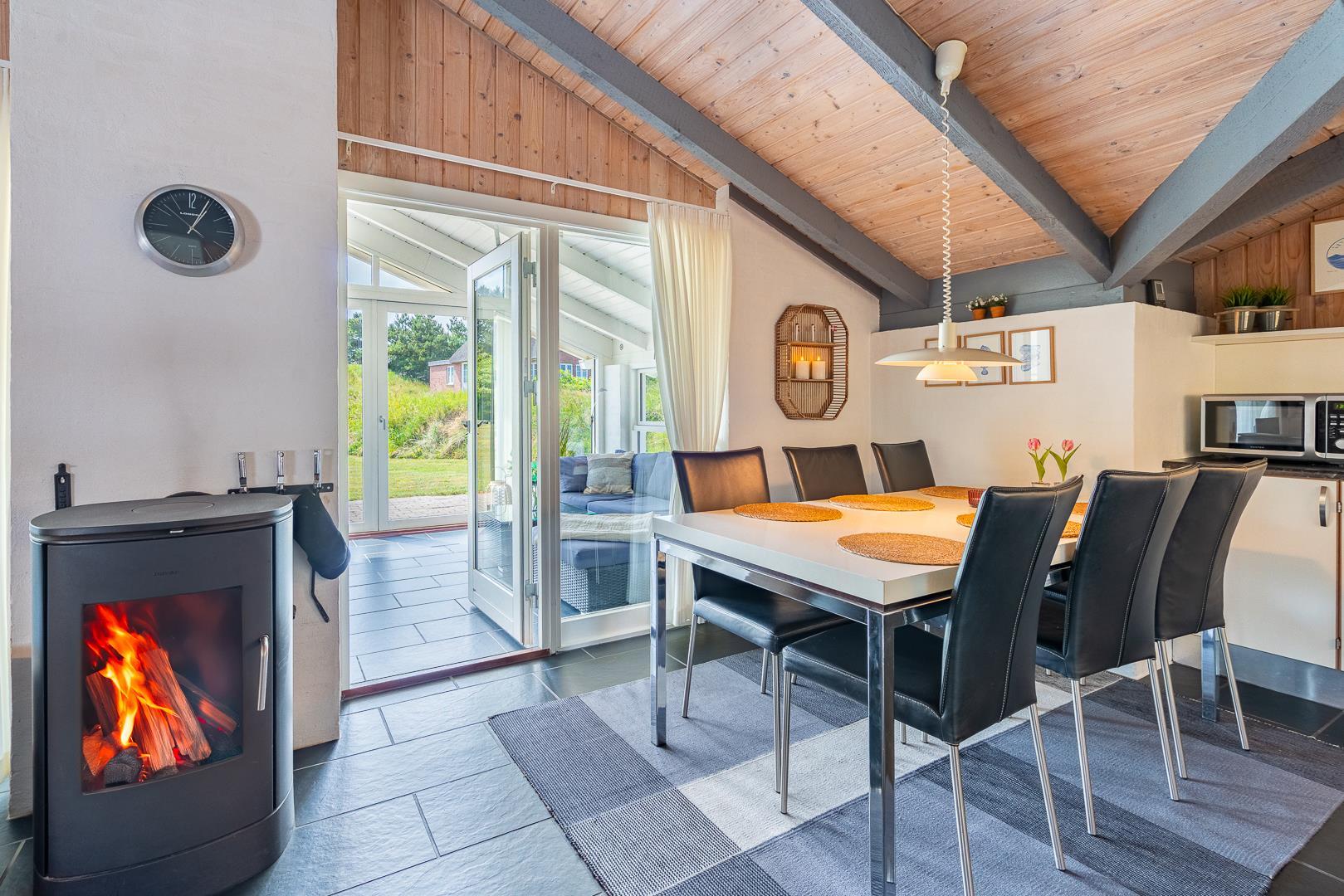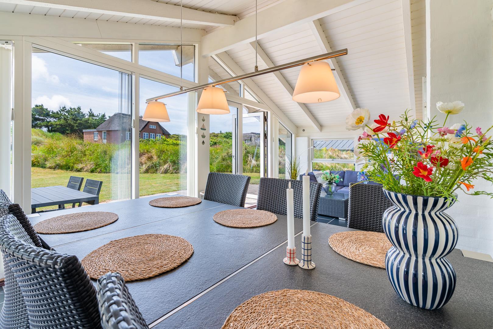 Dieses schönes und sehr gepflegtes Ferienhaus mit Wärmepumpe liegt auf einem schönen und kinderfreundlichen Naturgrund nur wenige Minuten vom Zentrum Henne Strand. Das Haus verfügt über eine schöne 20 qm Wintergarten. Wohnzimmer und Küche sind geschmackvoll und modern eingerichtet. Tv mit Chromecast. Neueres schönes Badezimmer.