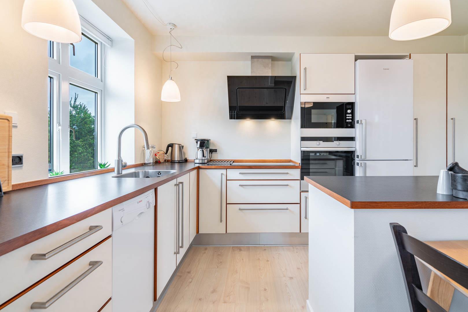Gut ausgestattete, nach Süden ausgerichtete Ferienwohnung in ruhiger Umgebung nur fünf Fußminuten zum Ort . Grosses Naturgrundstück. Die Wohnung ist hell und freundlich ausgestattet. Gratis WLAN. Flachbildschirme in den Schlafräumen. EL, Klima-/Wärmepumpe (energieeinsparend). ACHTUNG: Folgende Sachen befinden sich sich im Gemeinschaftsraum mit Waschmaschine und Trockner, die mit Münzeinwurf extra bezahlt werden müssen.