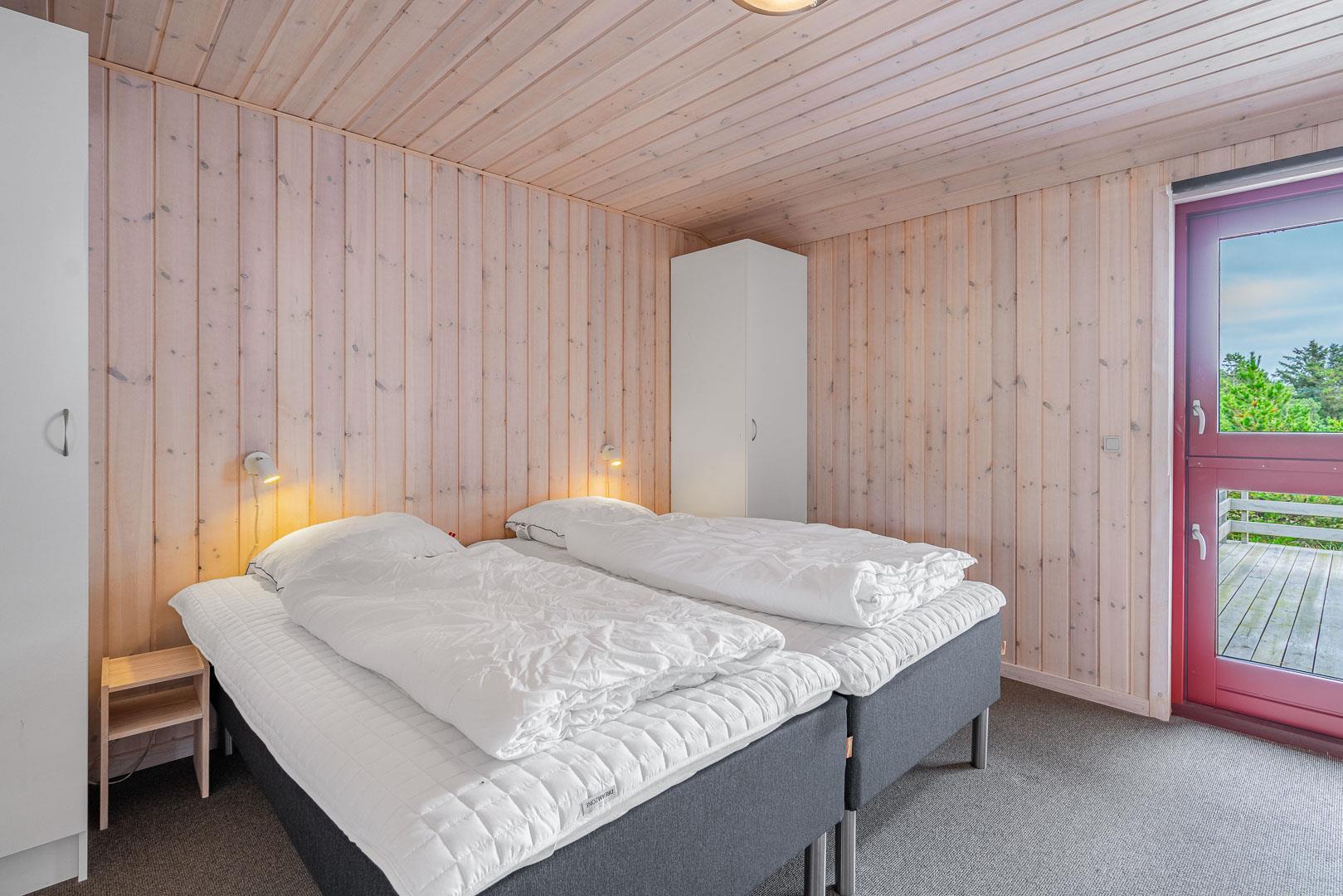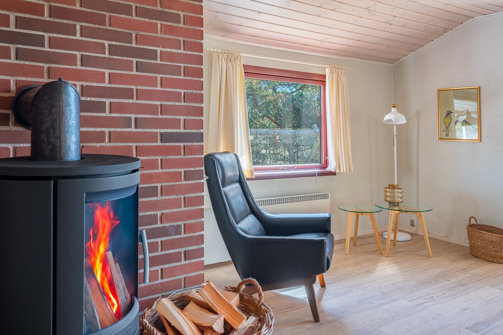 Das Ferienhaus bietet drei große, helle Schlafzimmer mit Doppelbetten, eine gut ausgestattete Küche mit allem, was Sie zum Kochen benötigen, sowie ein Badezimmer mit Sauna – perfekt zum Entspannen nach einem aktiven Tag. Dazu gibt es ein Gäste-WC. Im Wohnzimmer sorgt ein Kaminofen für wohlige Wärme und gemütliche Abende.