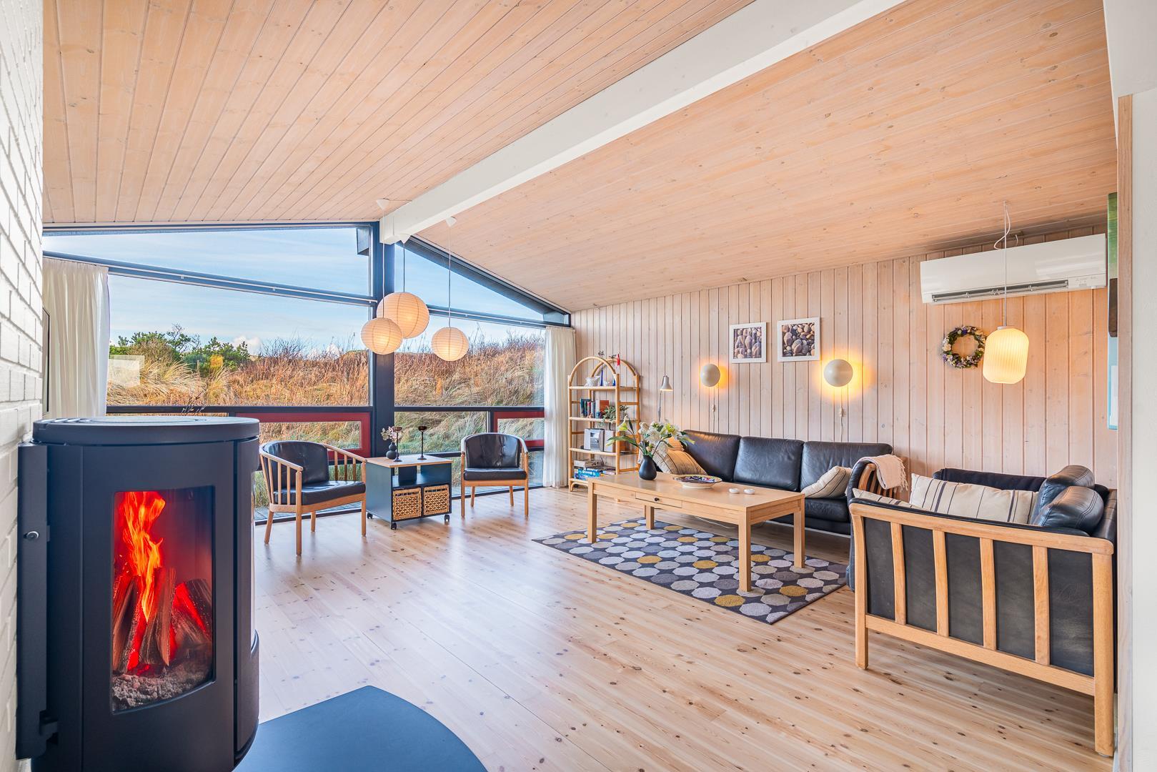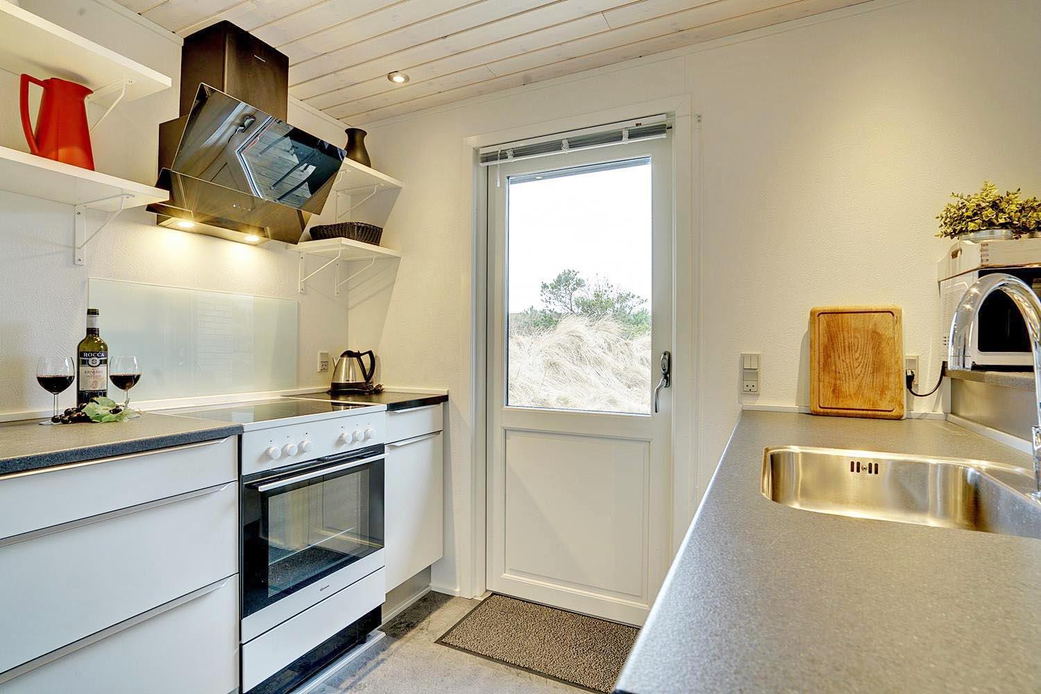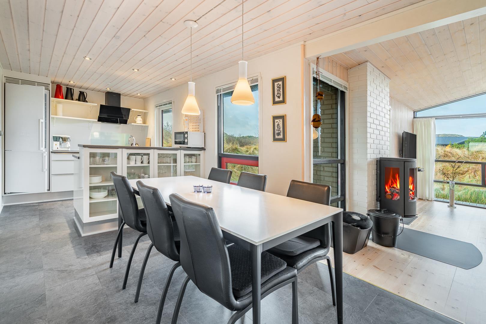 Auf einem schönen, ungestörten Dünengrundstück liegt dieses ansprechende Ferienhaus. Der geräumige Wohnbereich ist mit Holzboden ausgelegt und durch die große Fensterfront hat das Haus einen schönen Lichteinfall. Vom Wohnbereich und von der Terrasse aus kann man die wunderbare Aussicht über die Dünen genießen. Die gute Küche ist mit dem Wohnbereich kombiniert.