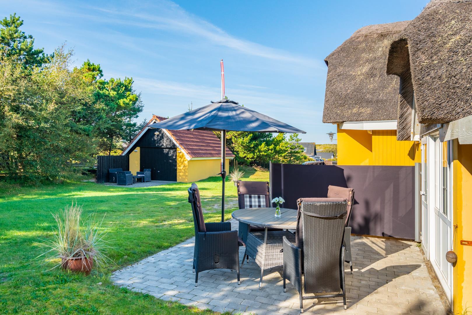 Es gibt mehrere gute Terrassen am Haus und auf dem Grundstück gibt es viel Platz zum Spielen und Toben.