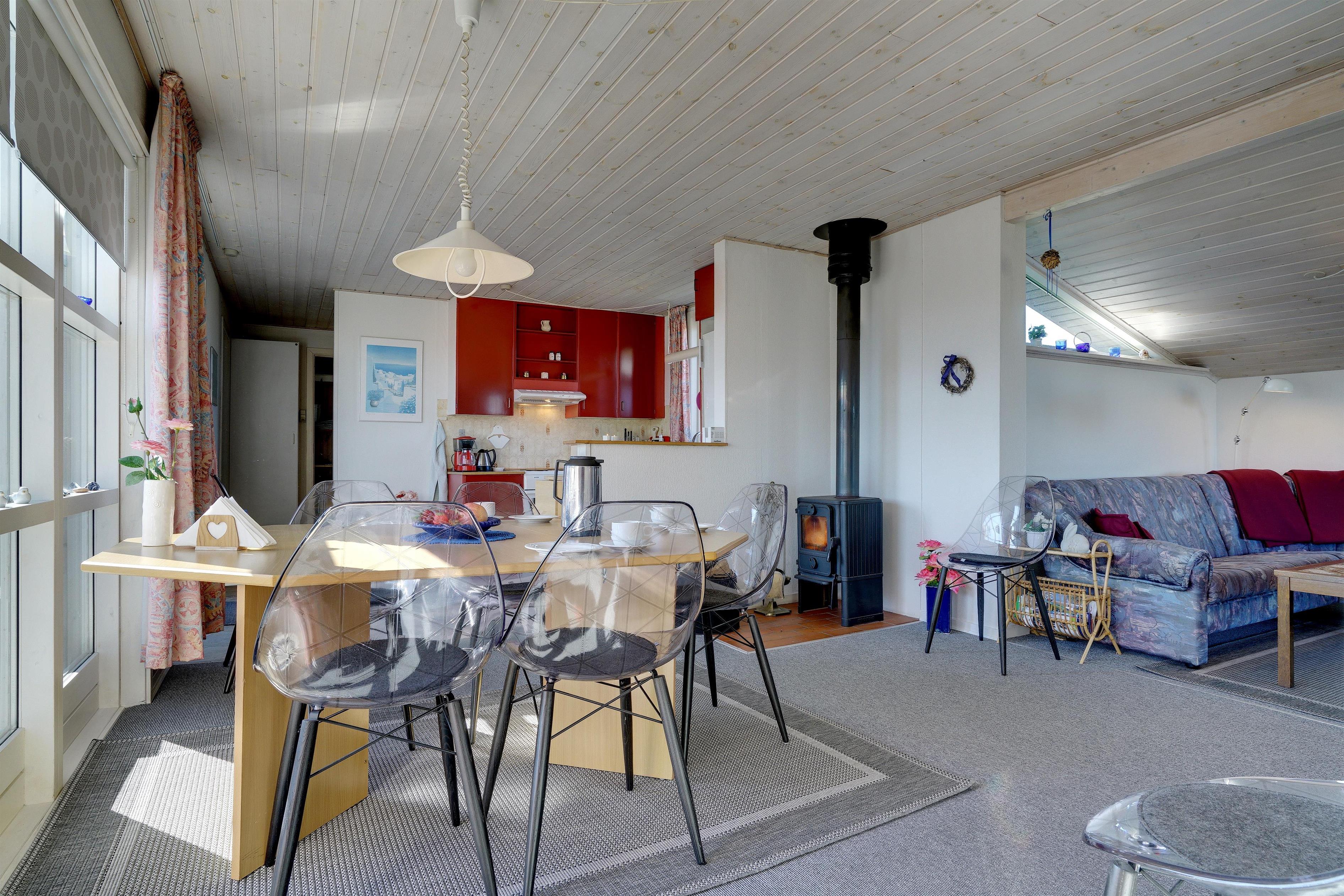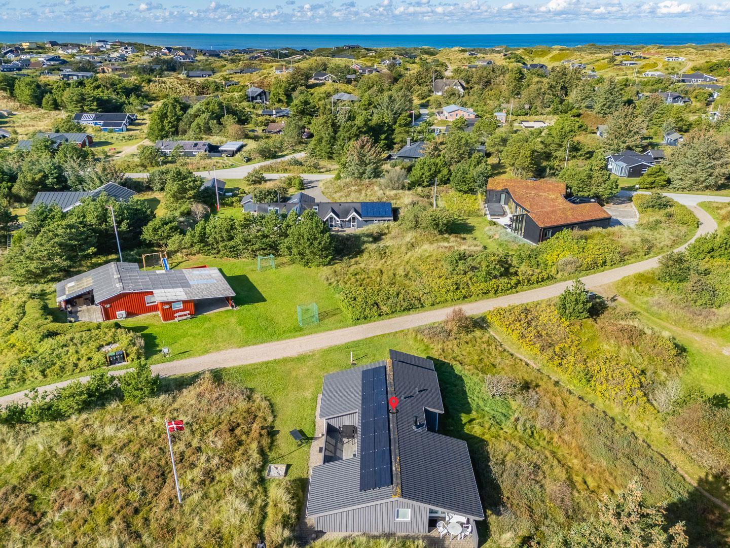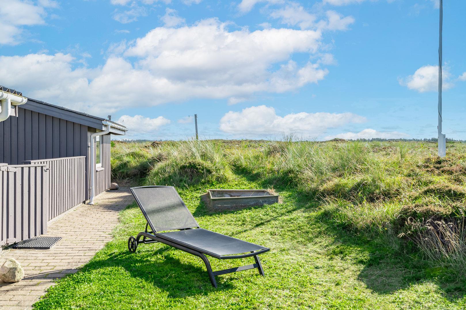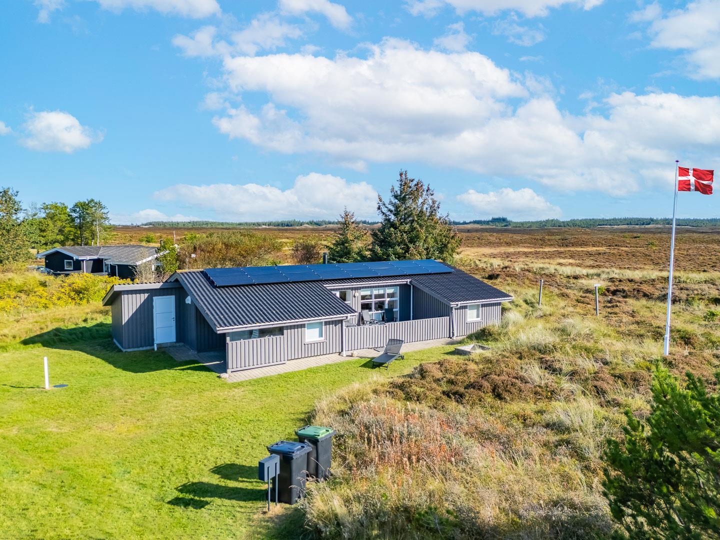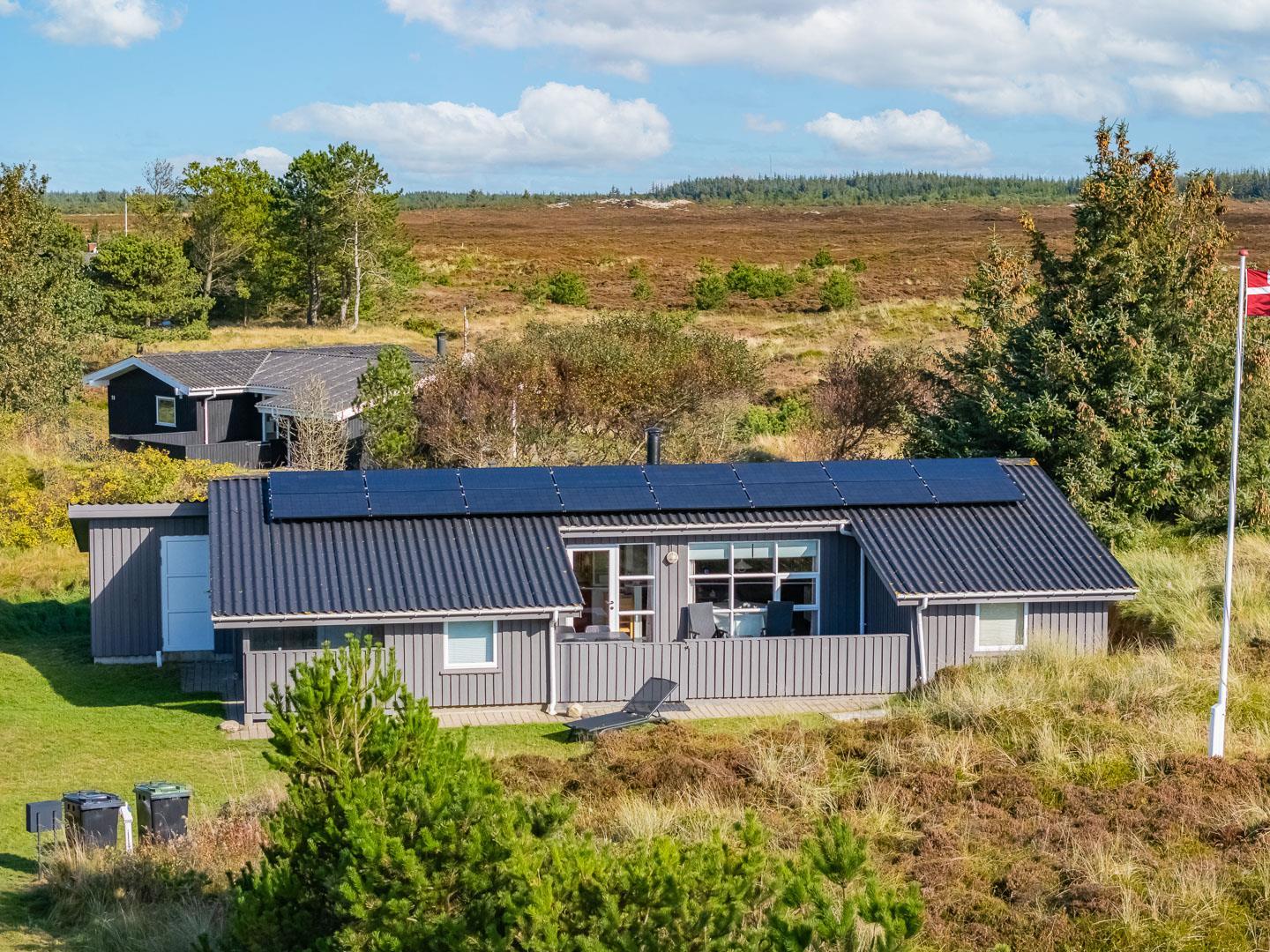 Gemütliches Ferienhaus gelegen auf einem großen, leicht hügeligen Natur-/Dünengrundstück. Zum Haus gehört eine geschlossene, sowie überdachte Terrasse. Badezimmer mit Sauna. Gut ausgestattete Küche mit u.a. Spülmaschine und Mikrowelle. Die Stube ist gemütlich eingerichtet mit guten Möbeln. 3 gute Schlafzimmer. Es gibt u.a. einen Kinderstuhl und Kinderbadewanne und Wickeltisch sowie Sandkiste.