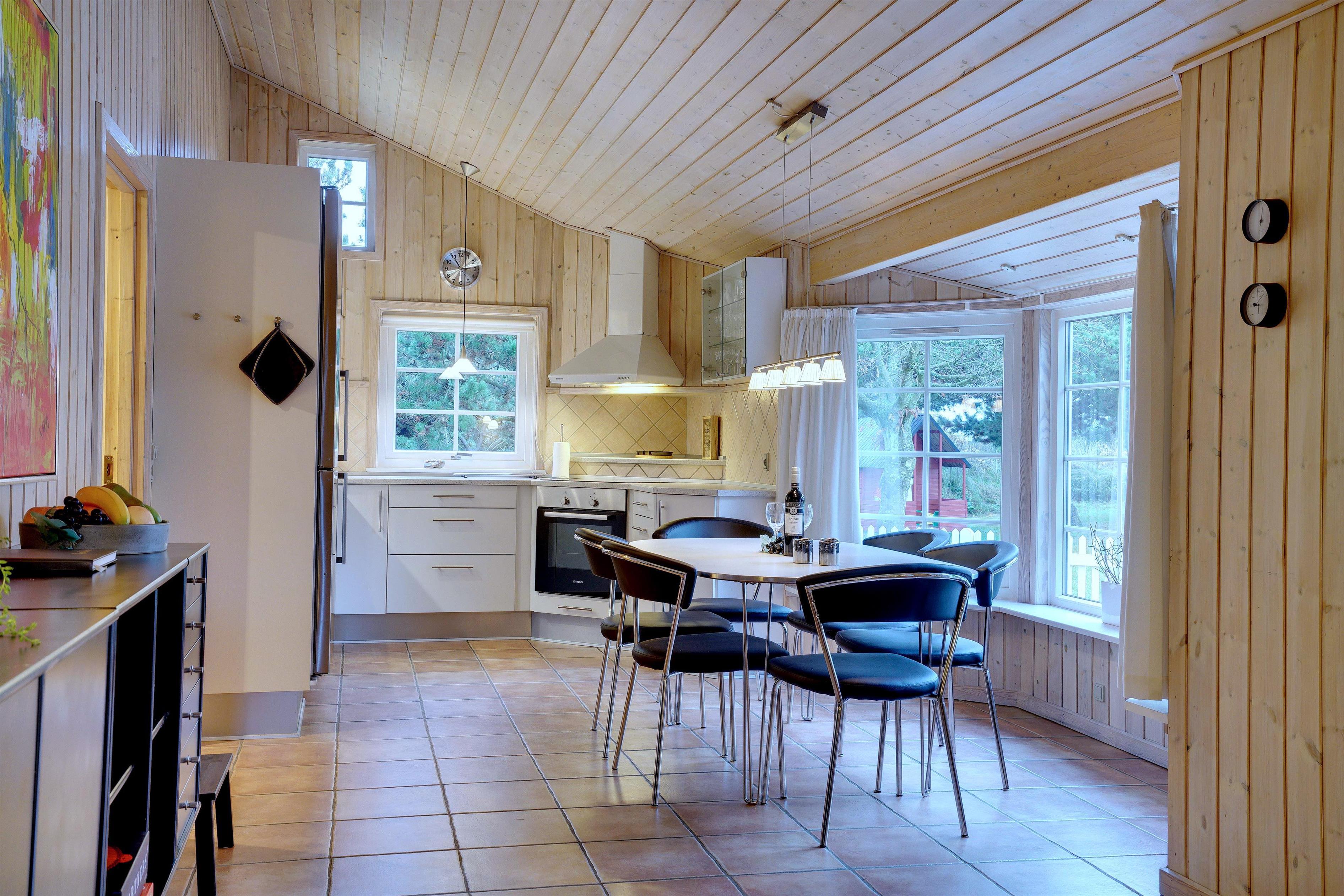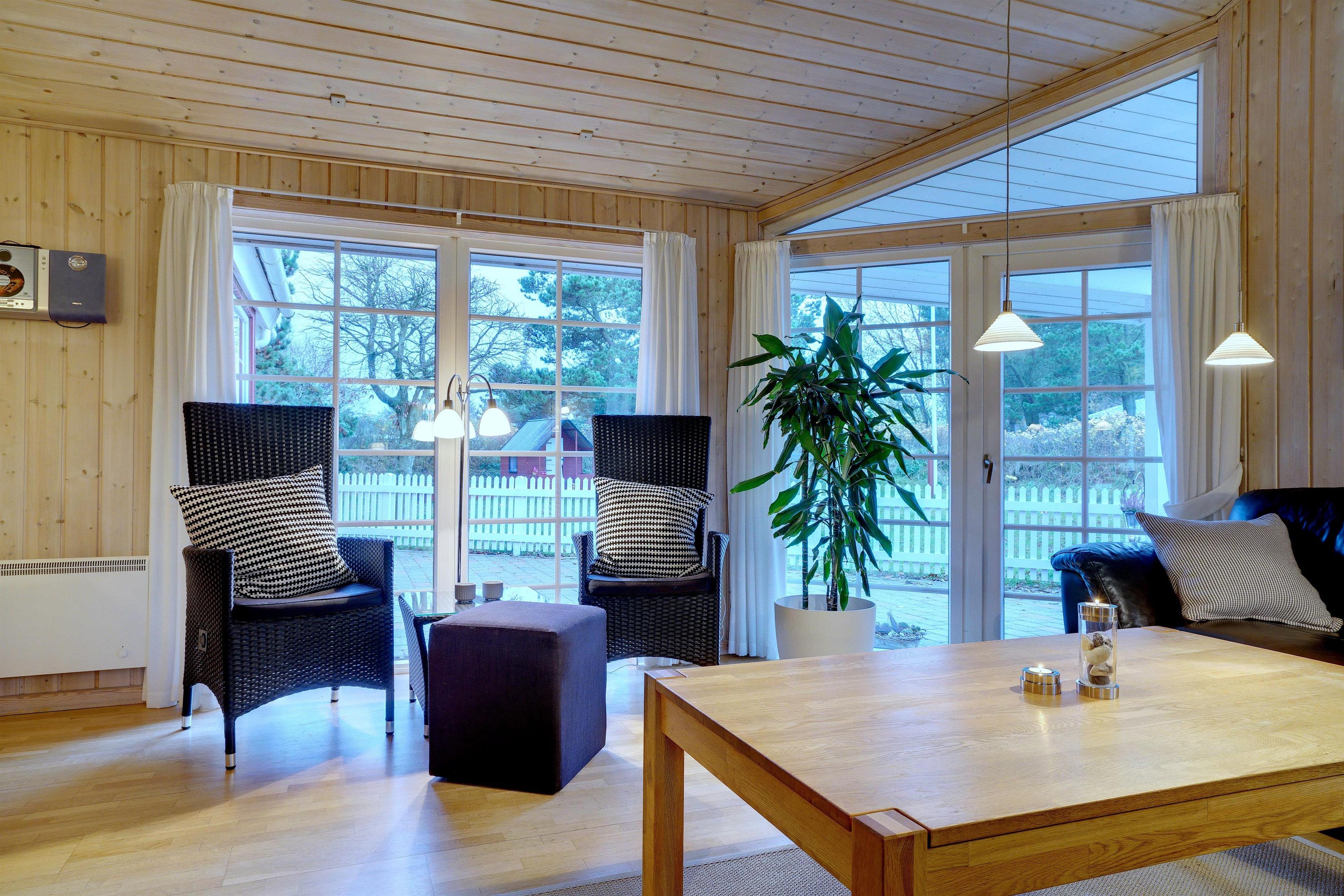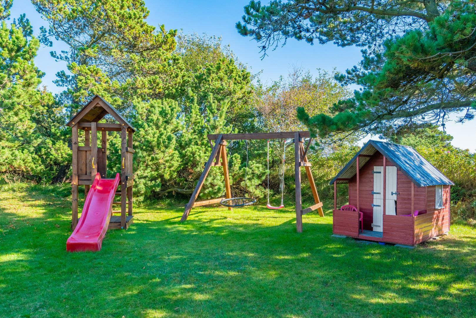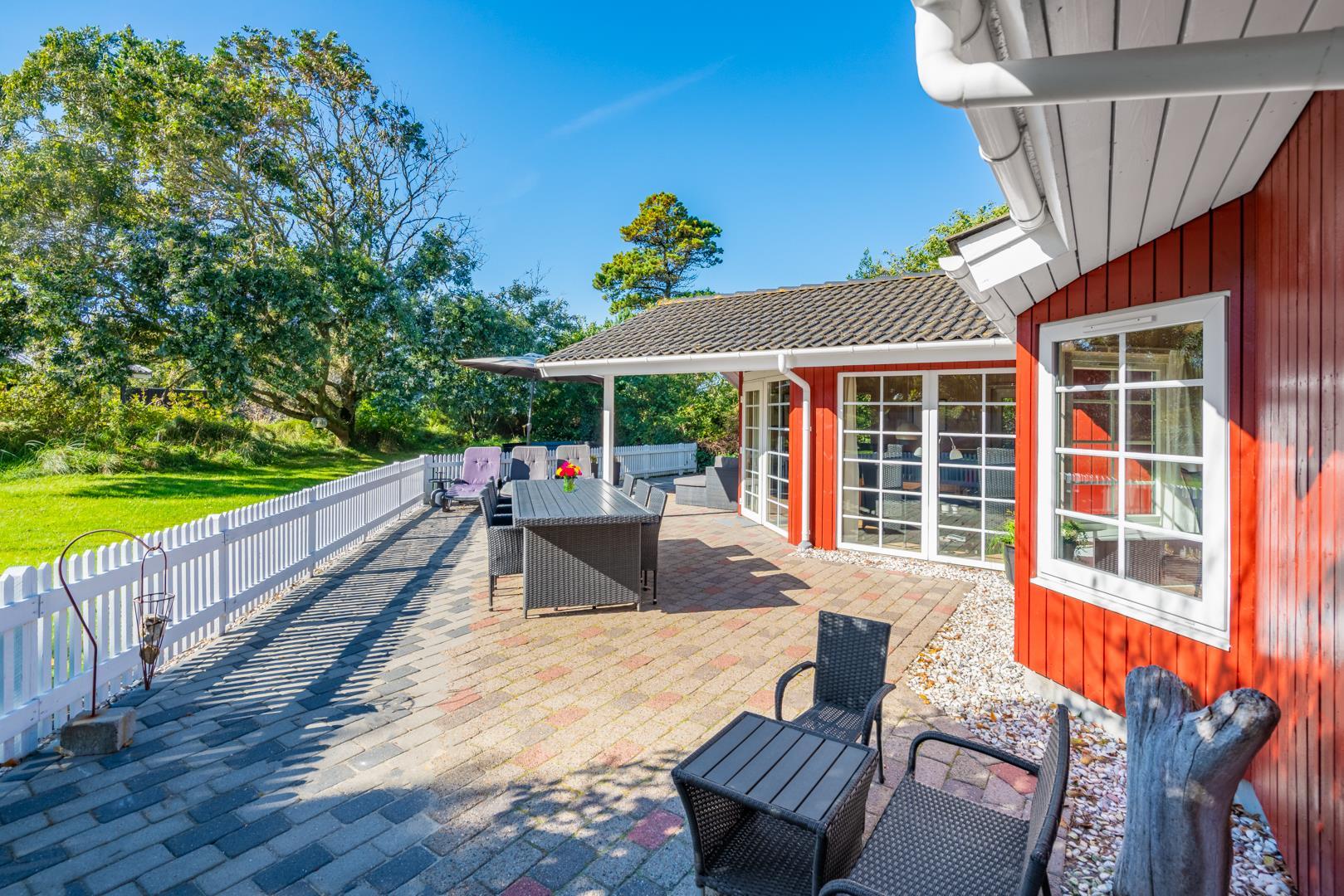 Dieses sehr gepflegte und gemütlich eingerichtete Ferienhaus mit hohen Decken liegt auf einem kinderfreundlichen, bewachsenen Naturgrundstück. Das Haus bietet einen modernen Küchen (2015)- und Essbereich und ein mit guten Möbeln ausgestattetes Wohnzimmer. Eines der Badezimmer verfügt über eine Waschmaschine und einen Trockner. Vom Wohnbereich hat man Zugang zu einer schönen, geschlossenen und ungestörten Terrasse. Für Kinder ist ein Spielhaus auf dem Grundstück vorhanden.