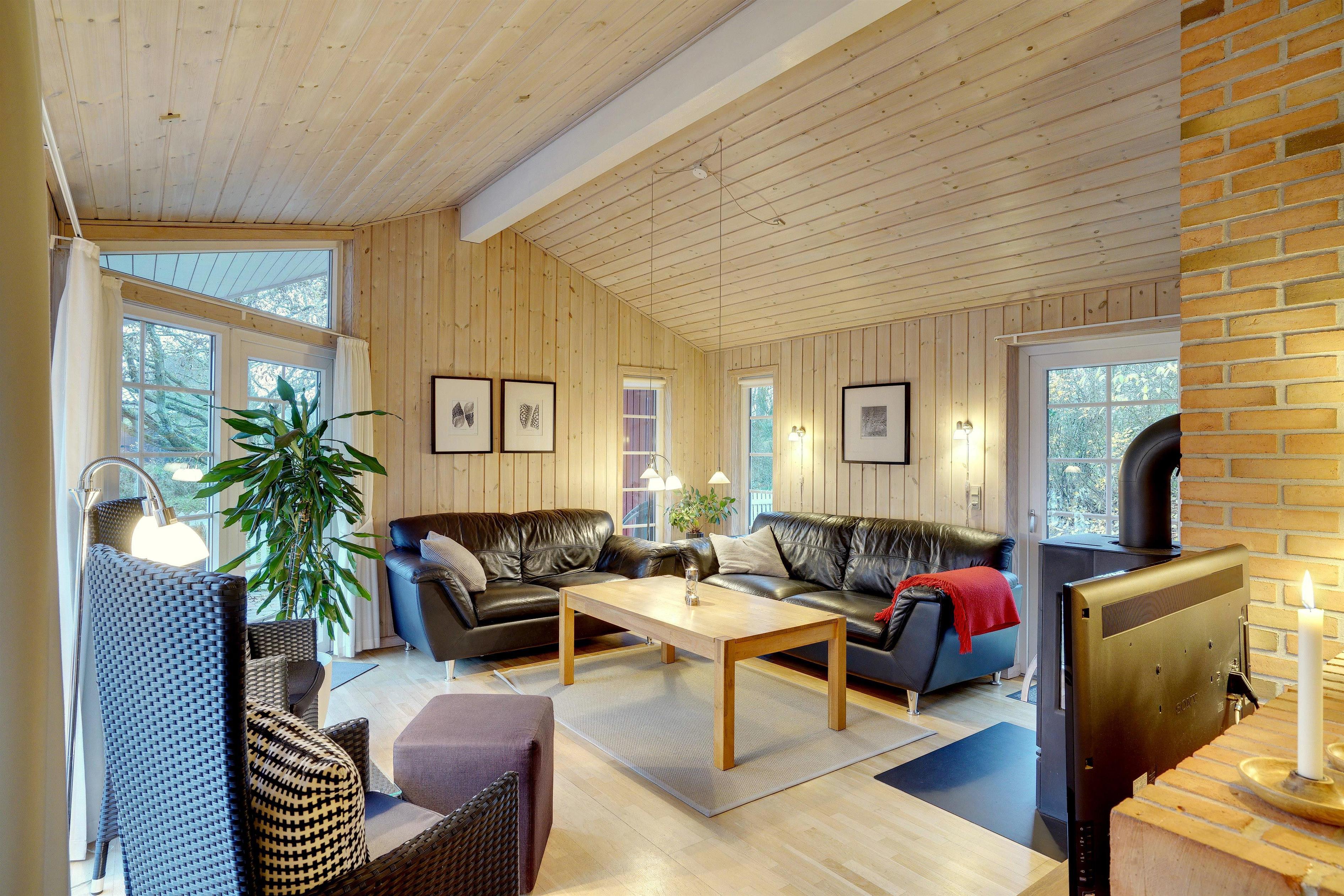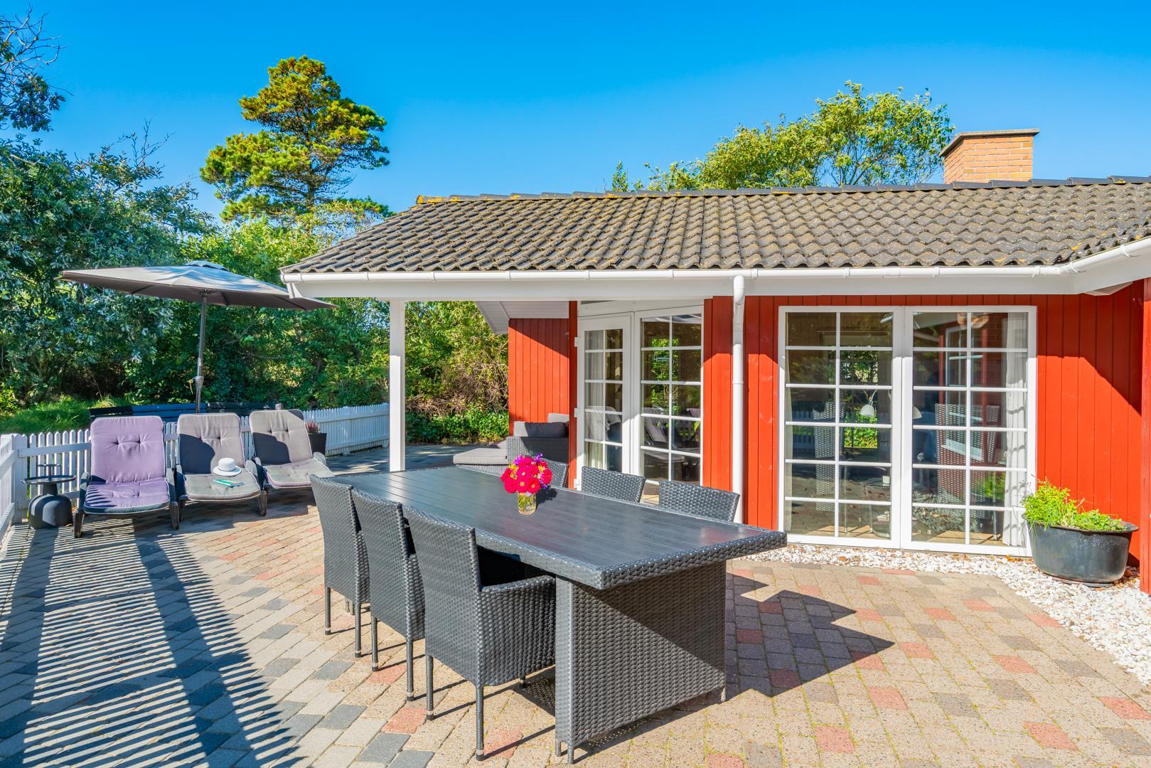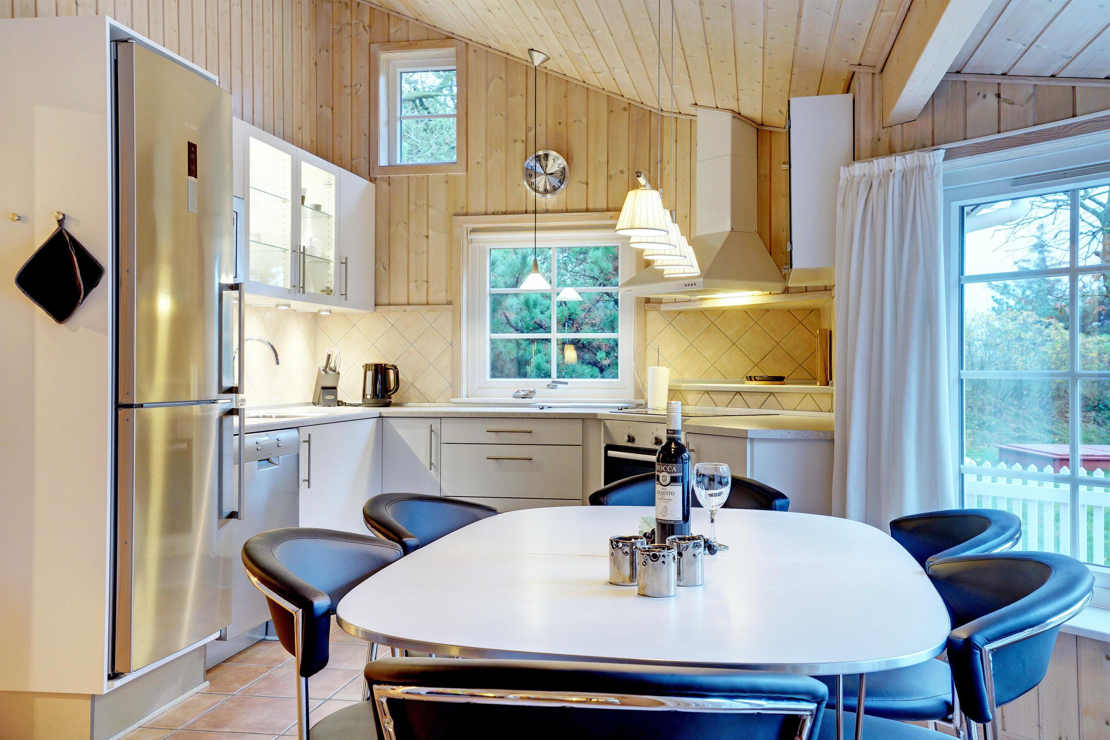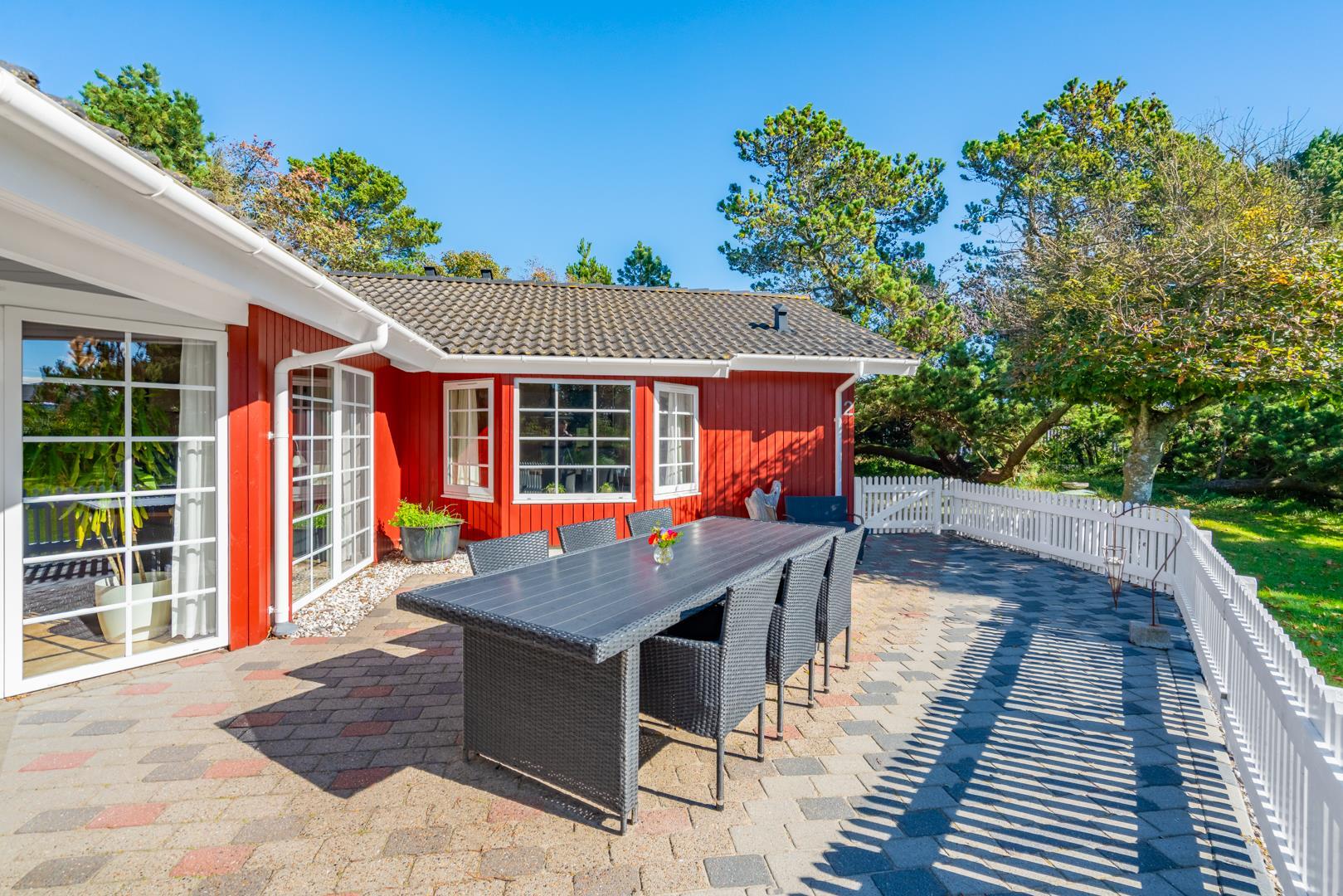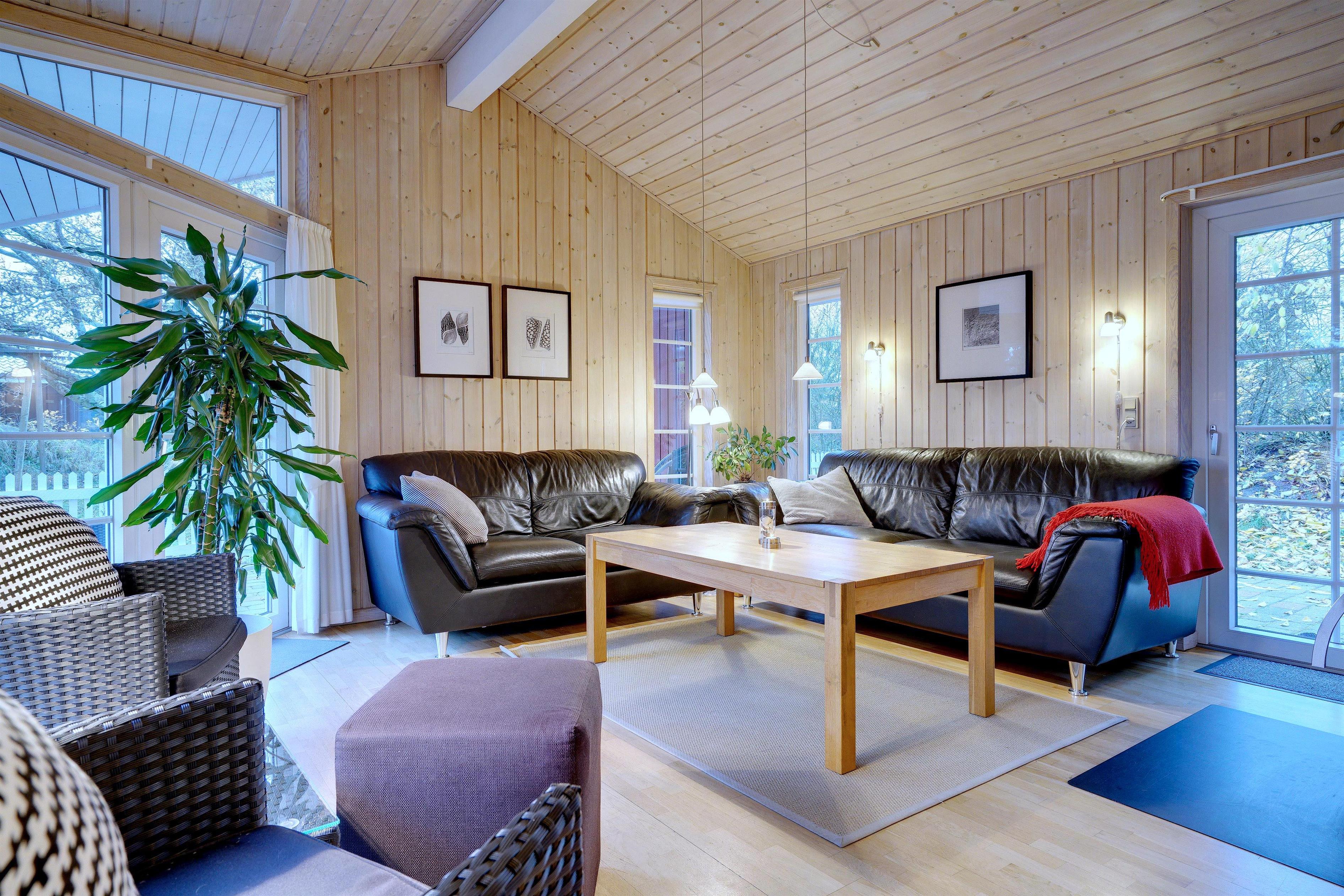 Dieses sehr gepflegte und gemütlich eingerichtete Ferienhaus mit hohen Decken liegt auf einem kinderfreundlichen, bewachsenen Naturgrundstück. Das Haus bietet einen modernen Küchen (2015)- und Essbereich und ein mit guten Möbeln ausgestattetes Wohnzimmer. Eines der Badezimmer verfügt über eine Waschmaschine und einen Trockner. Vom Wohnbereich hat man Zugang zu einer schönen, geschlossenen und ungestörten Terrasse. Für Kinder ist ein Spielhaus auf dem Grundstück vorhanden.