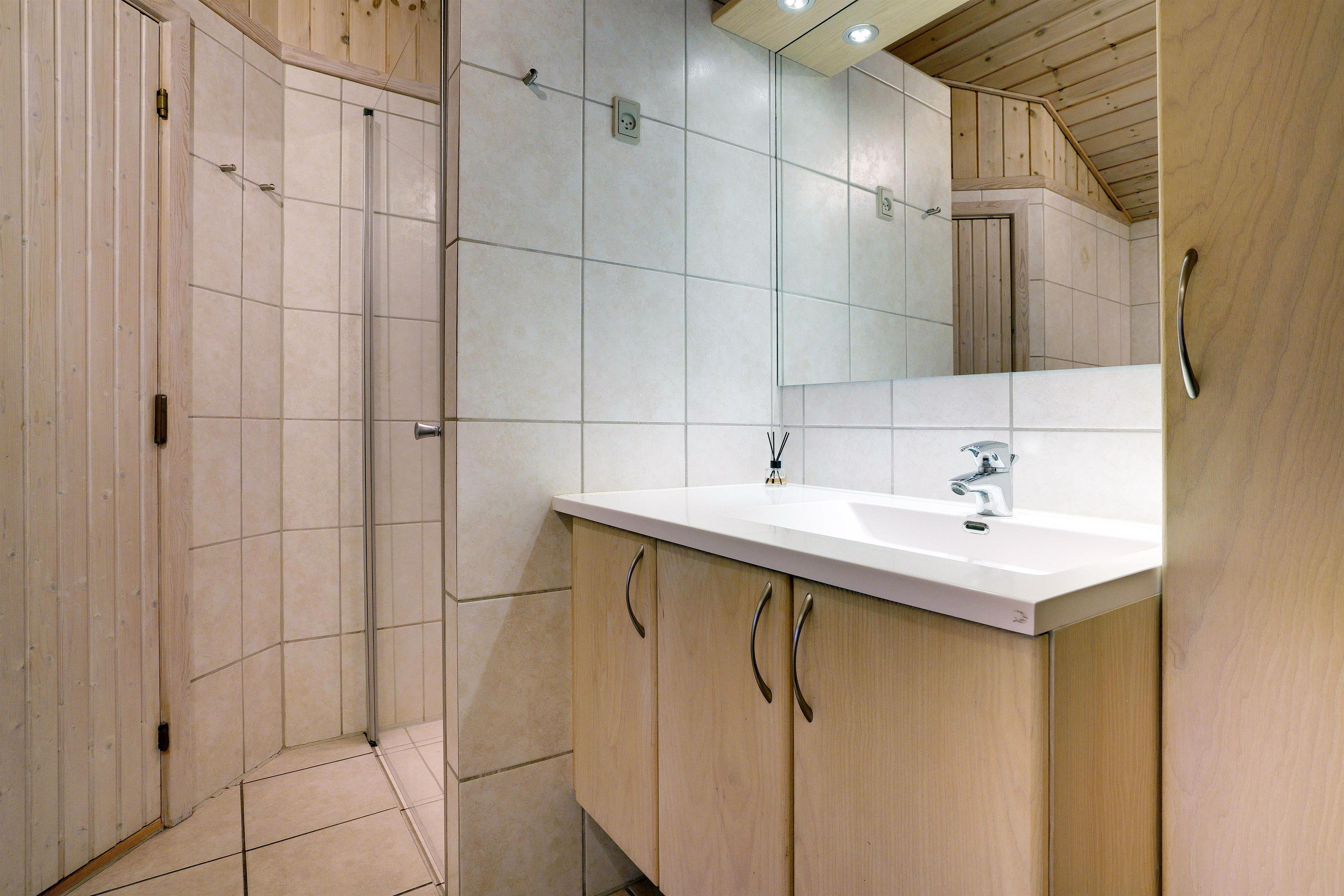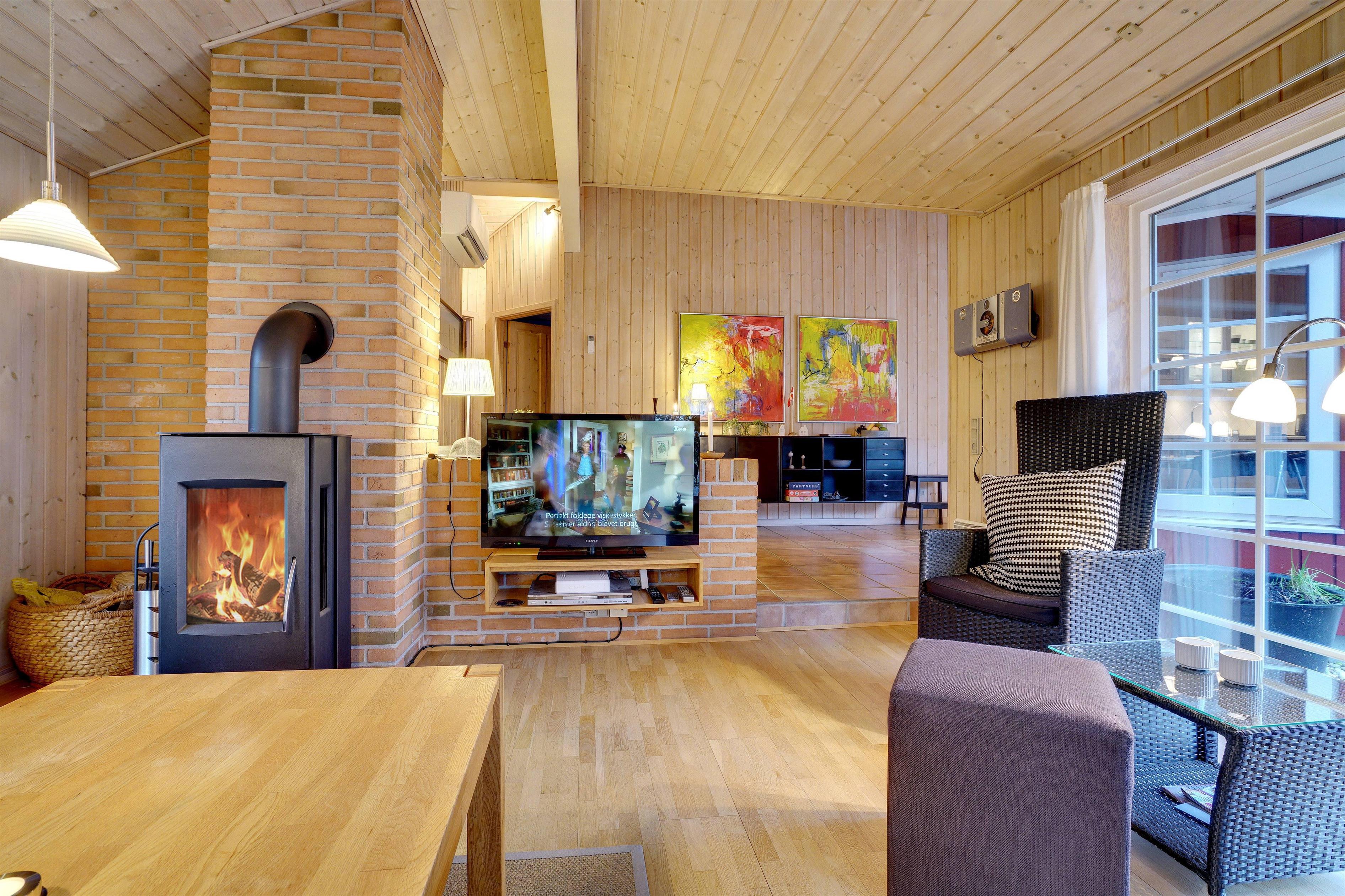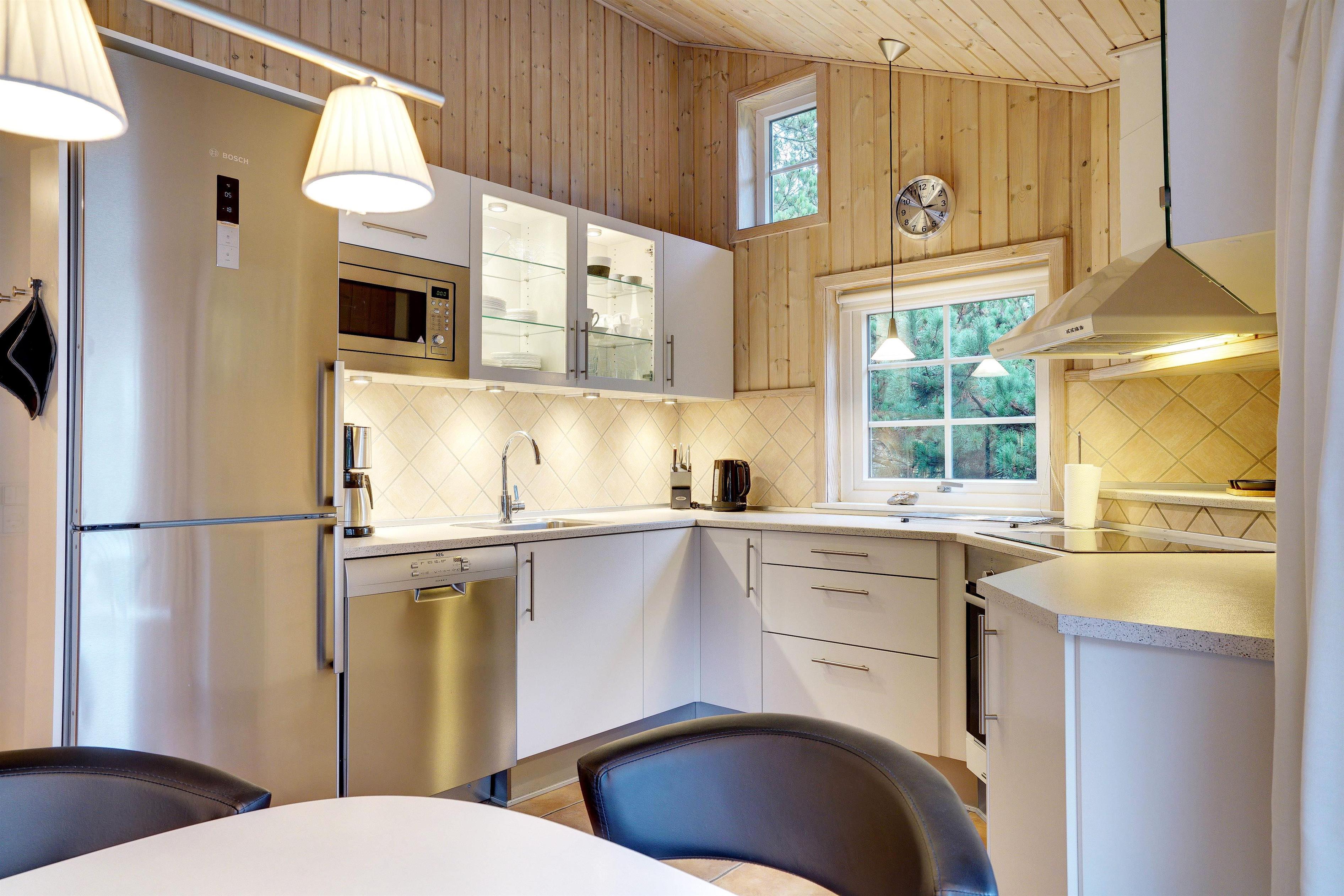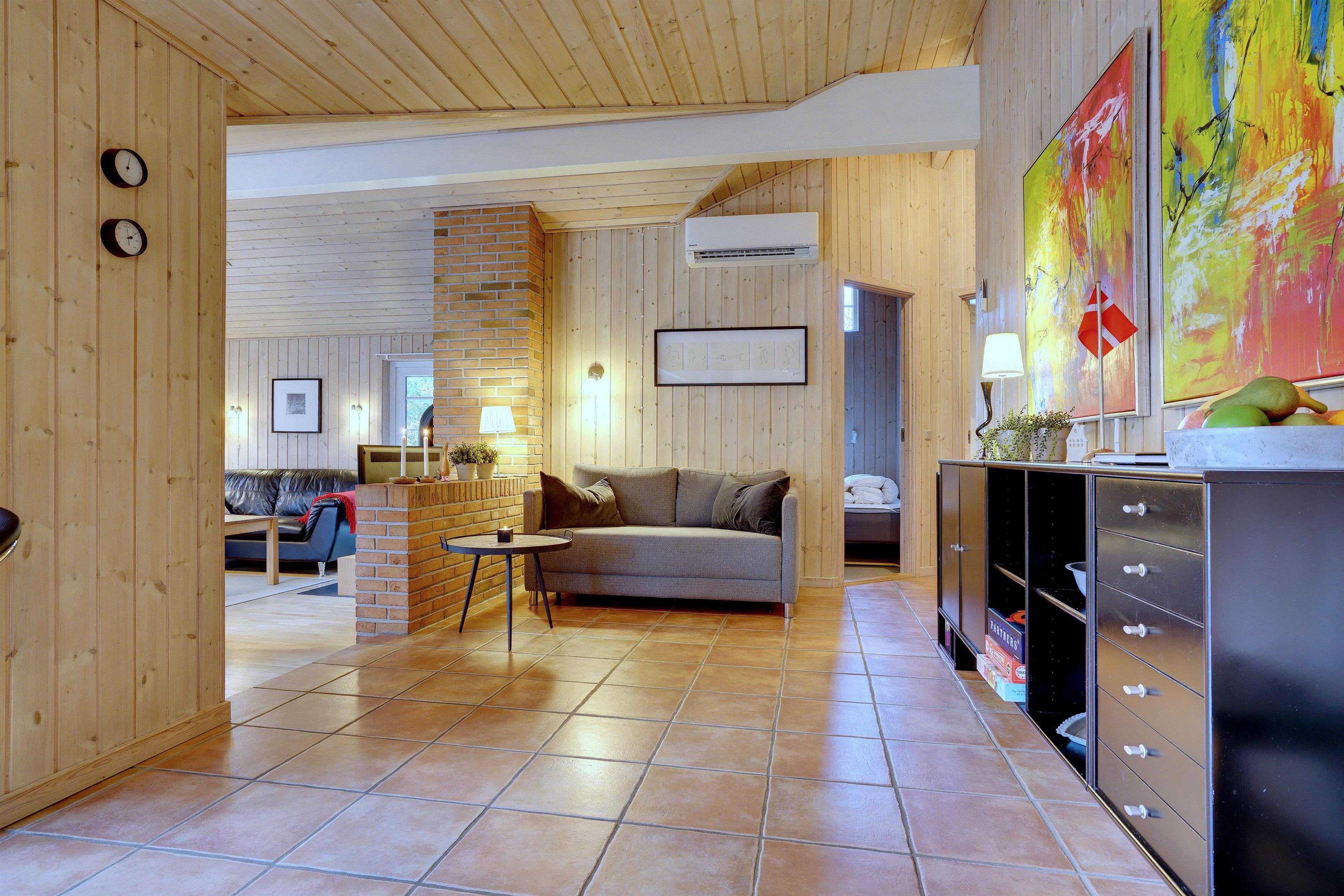 Dieses sehr gepflegte und gemütlich eingerichtete Ferienhaus mit hohen Decken liegt auf einem kinderfreundlichen, bewachsenen Naturgrundstück. Das Haus bietet einen modernen Küchen (2015)- und Essbereich und ein mit guten Möbeln ausgestattetes Wohnzimmer. Eines der Badezimmer verfügt über eine Waschmaschine und einen Trockner. Vom Wohnbereich hat man Zugang zu einer schönen, geschlossenen und ungestörten Terrasse. Für Kinder ist ein Spielhaus auf dem Grundstück vorhanden.