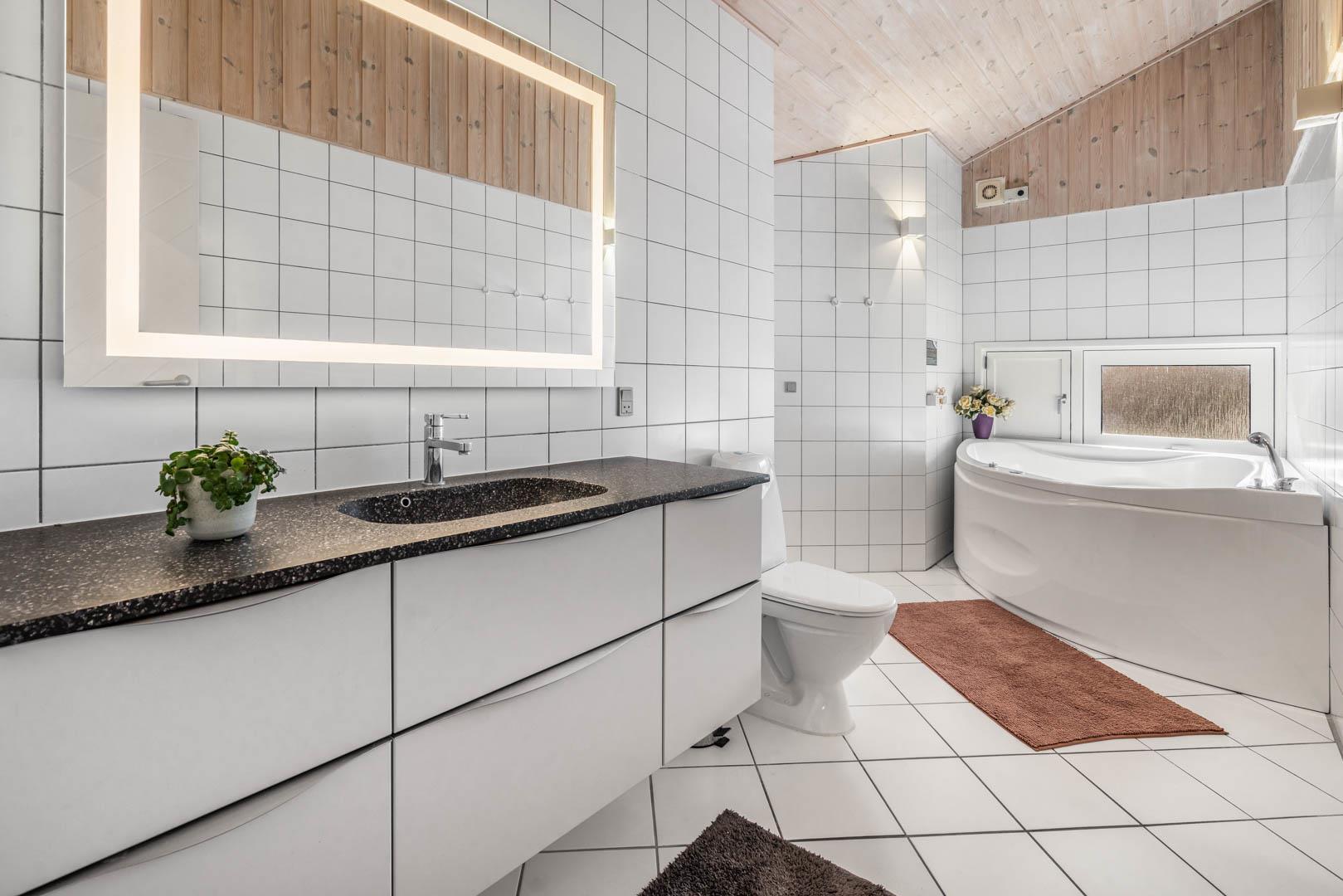 Schönes Ferienhaus gelegen auf einem ungestörten Naturgrundstück in ruhiger Umgebung. Großes Badezimmer mit Whirlpool und Sauna. Außerdem Gästetoilette. Zum Haus gehört sowohl eine offene, als auch überdachte Terrasse. Gemütlich und schön möblierte Stube mit Kaminofen. 3 gute und geräumige Schlafzimmer mit Doppelbetten. Kostenlose, drahtlose Internetverbindung.