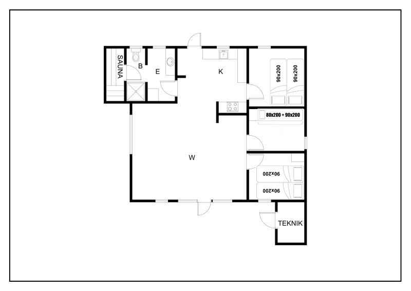 Bettengrösse: 3 Doppelbetten mit je 2 Matratzen á 90 x 200 cm + 1 Etagenbett das obere Bett ist 80 x 200 cm und das untere Bett ist 90 x 200 cm.