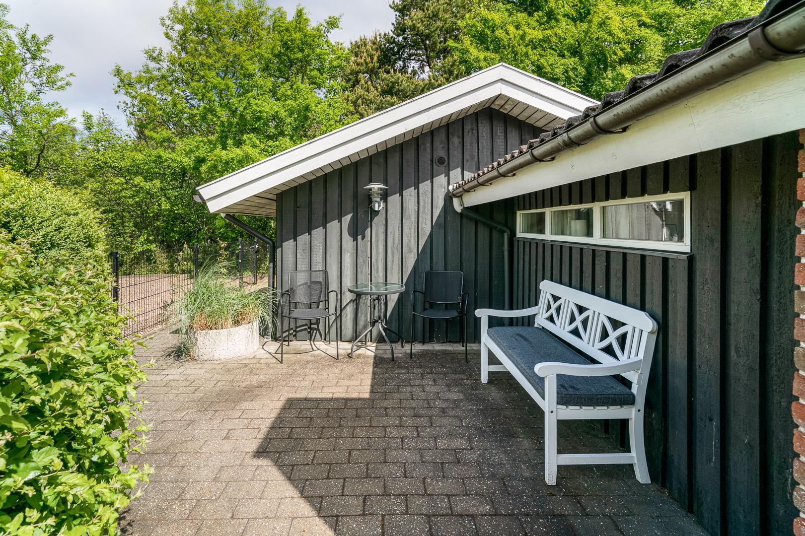 Das Grundstück bietet mehrere gemütliche Ecken für einen Kaffee in der ersten Morgensonne, ein kühles Bier in der Mittagspause und ein Glas Wein in der Abendsonne.