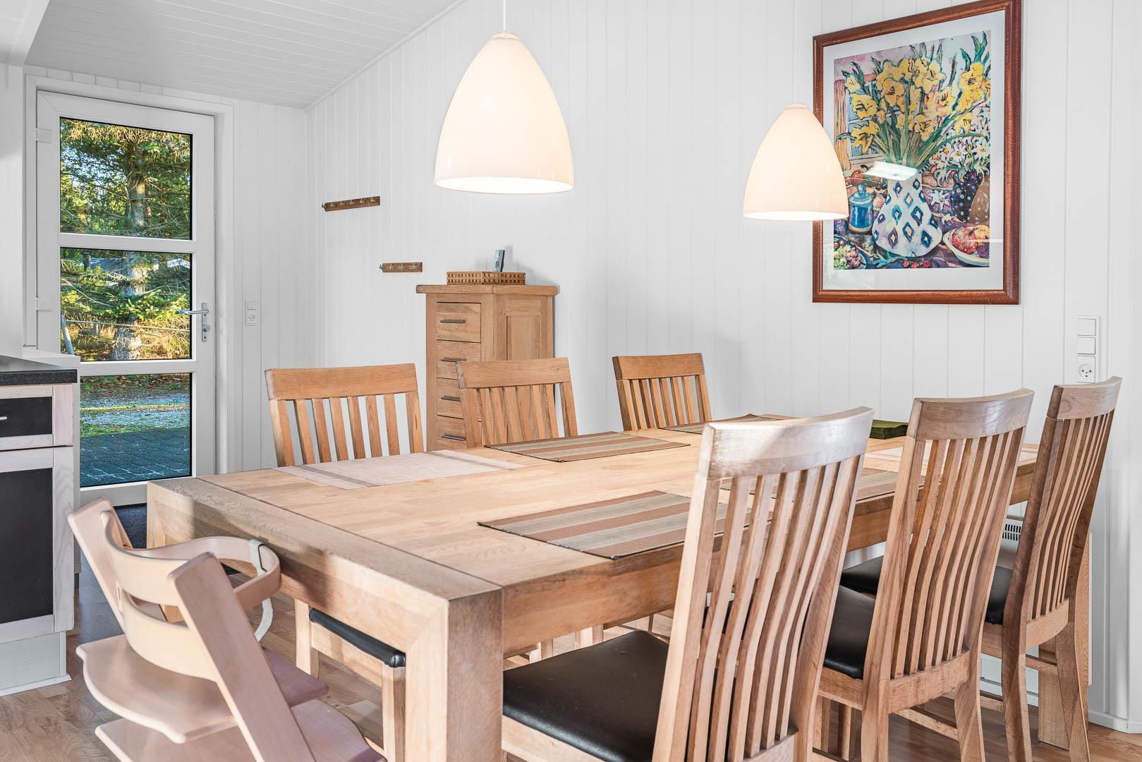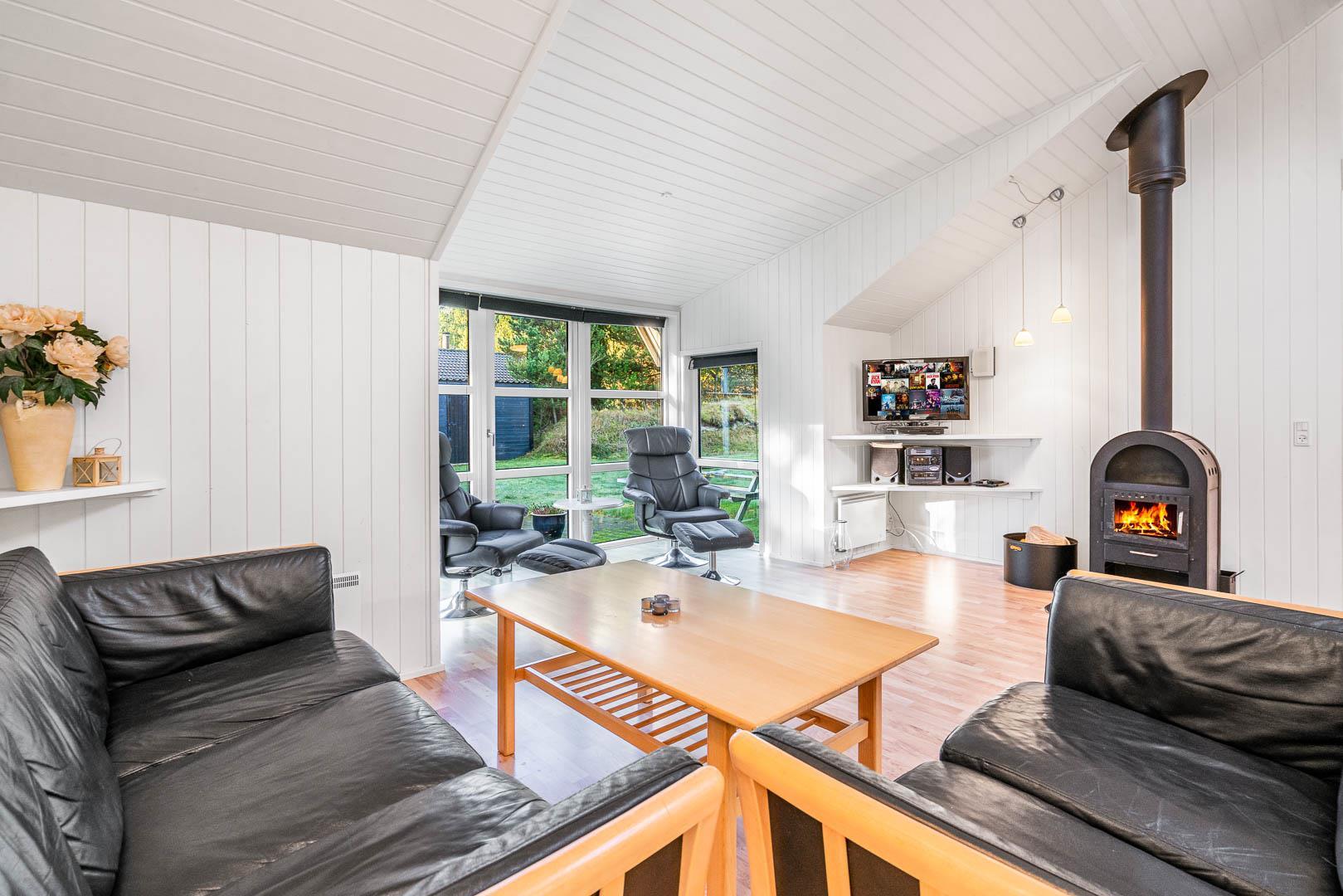 Dieses schöne und renoviertes (2014) Ferienhaus befindet sich auf einem schönen Naturgrund. Die Küche ist mit dem bis zur Decke hin offenen Wohnraum verbunden. Dieser ist mit guten Möbeln und einem Kaminofen ausgestattet. Vom Wohnbereich hat man direkten Zugang zur Terrasse. Das Haus verfügt über 3 Schlafzimmer, von denen das eine einen Ausgang auf eine schöne überdachte Terrasse hat. Das Haus ist mit Holzböden ausgelegt.
