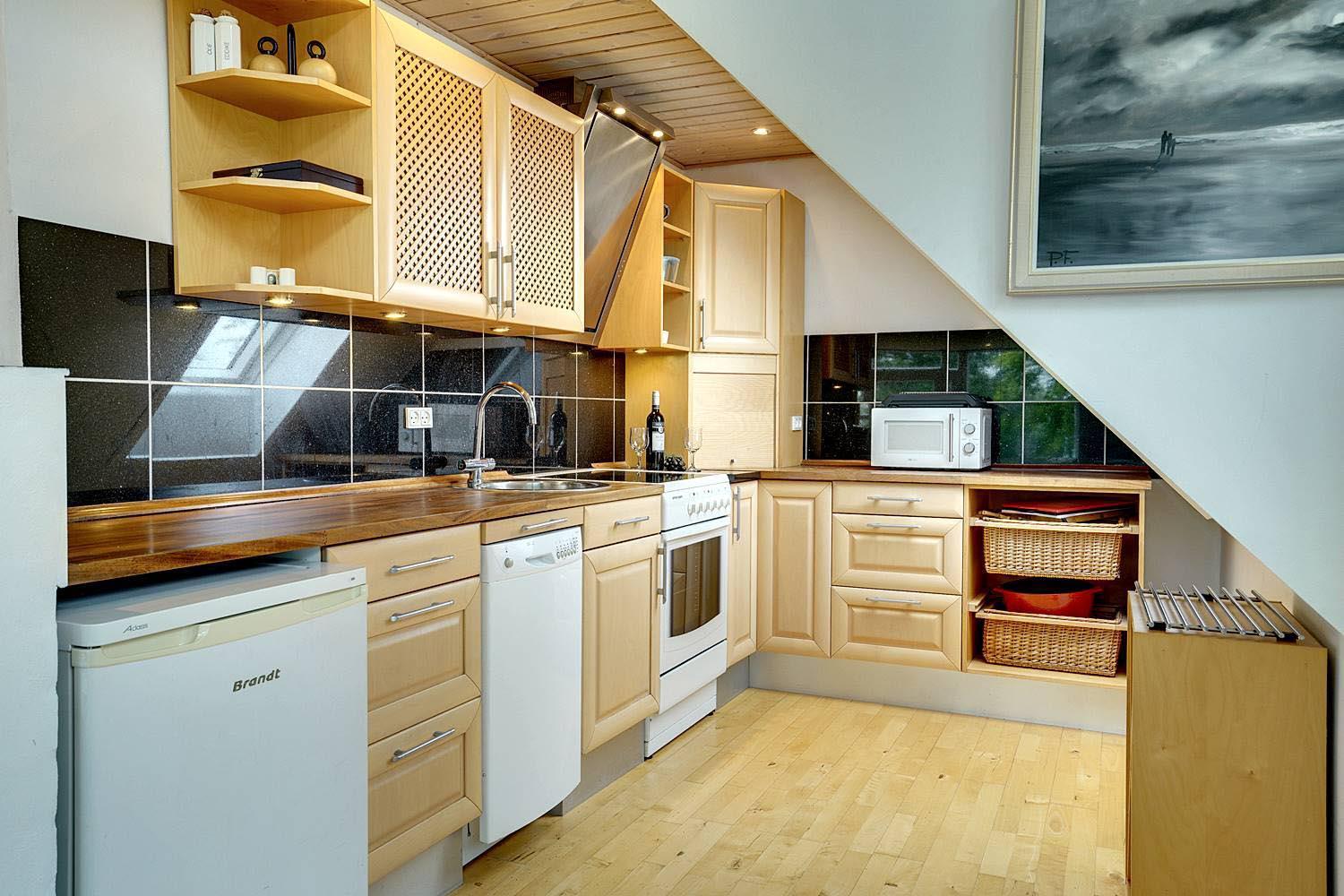 Diese Wohnung im ersten Stock in Henne Kirkeby bietet Ihnen eine einzigartige Gelegenheit, die Schätze der Nordsee zu erleben, mit einem schönen Blick auf die Umgebung und Zugang zu einer Vielzahl spannender Aktivitäten. Im Herzen der Wohnung befindet sich ein heller und offener Wohnbereich mit Küchenzeile, die alles bietet, was Sie benötigen – ein Cerankochfeld, Dunstabzugshaube, Geschirrspüler und Kühlschrank mit kleinem Gefrierfach, alles offen zur Wohnzimmer. Hier können Sie sich entspannen und den Urlaub nach einem ereignisreichen Tag genießen.