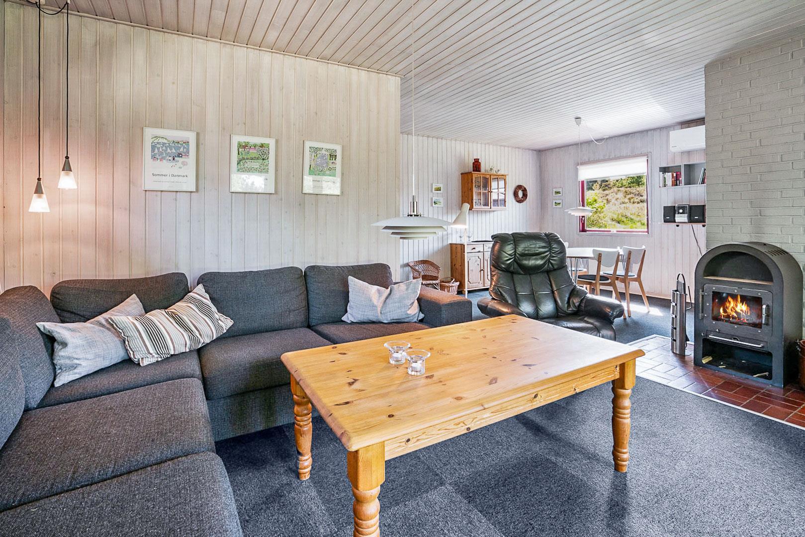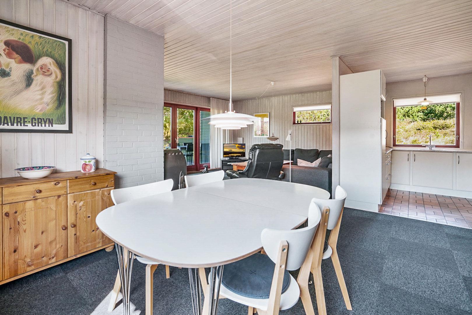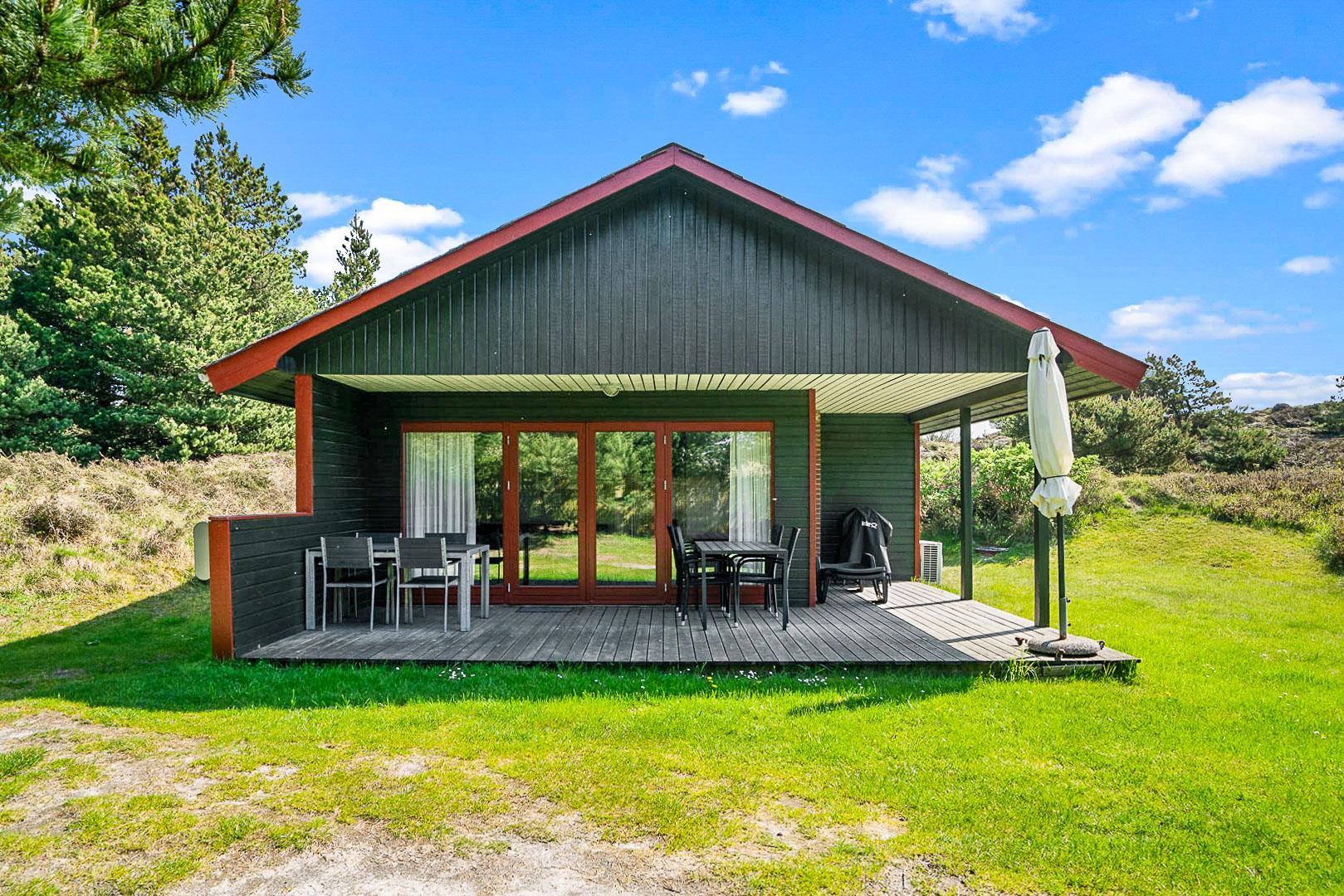 Gut gepflegtes Ferienhaus gelegen auf einem ungestörten Naturgrundstück am Ende einer Sackgasse. Das ganze Haus ist 2016 modernisiert worden mit neuen Möbeln, Teppichen und gemalert in hellen Farben. Neuere Küche von 2005. Gemütliche Stube mit Kaminofen mit Glas und Zugang zur teilweise überdachten Süd- West Terrasse, die ganz ungestört liegt. Ein super tolles und geschmackvoll eingerichtetes Ferienhaus.