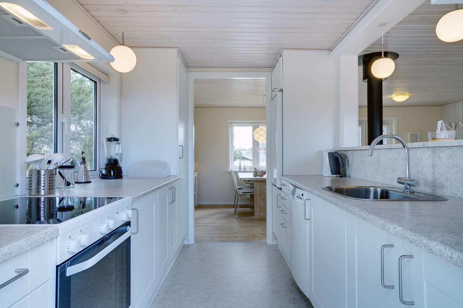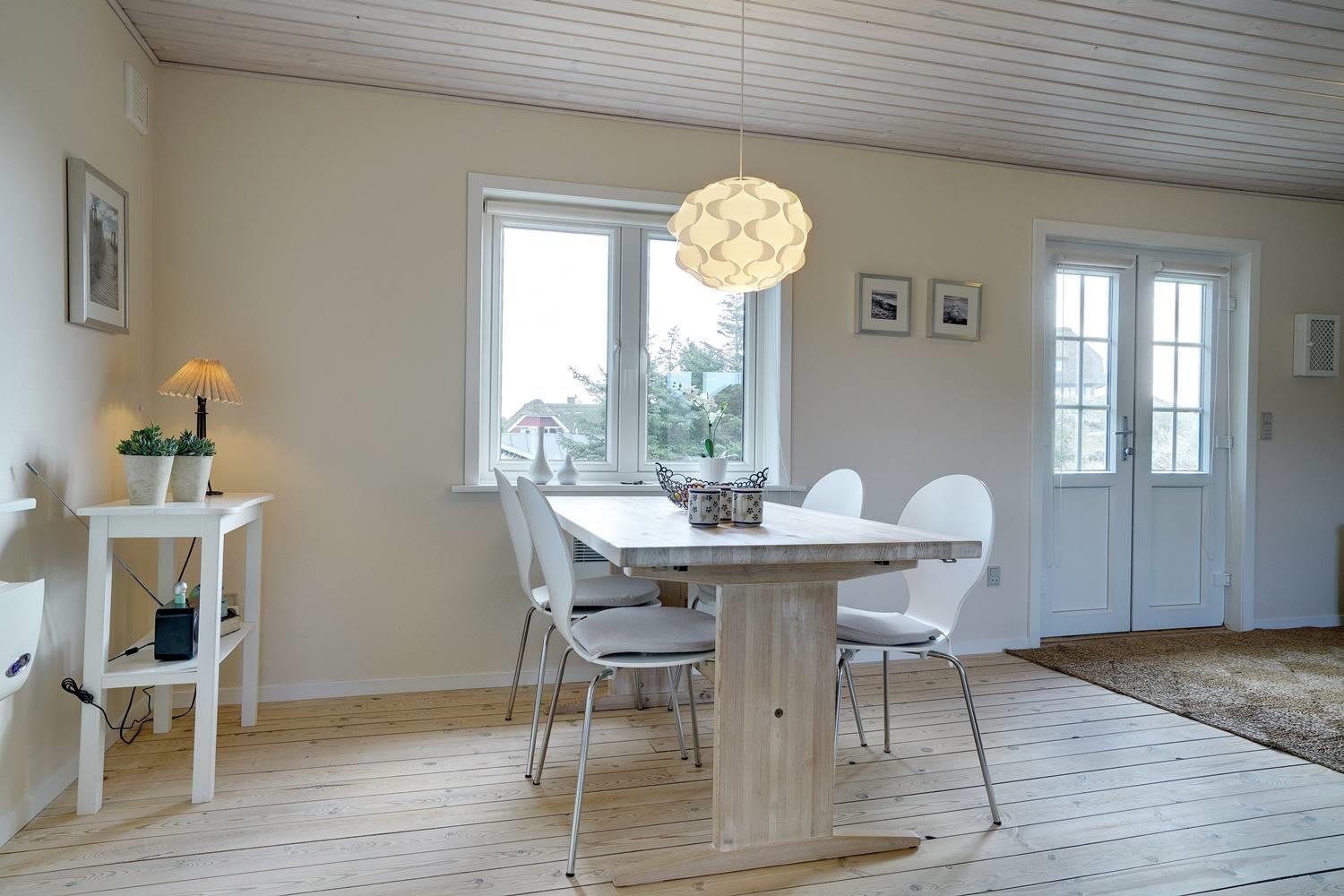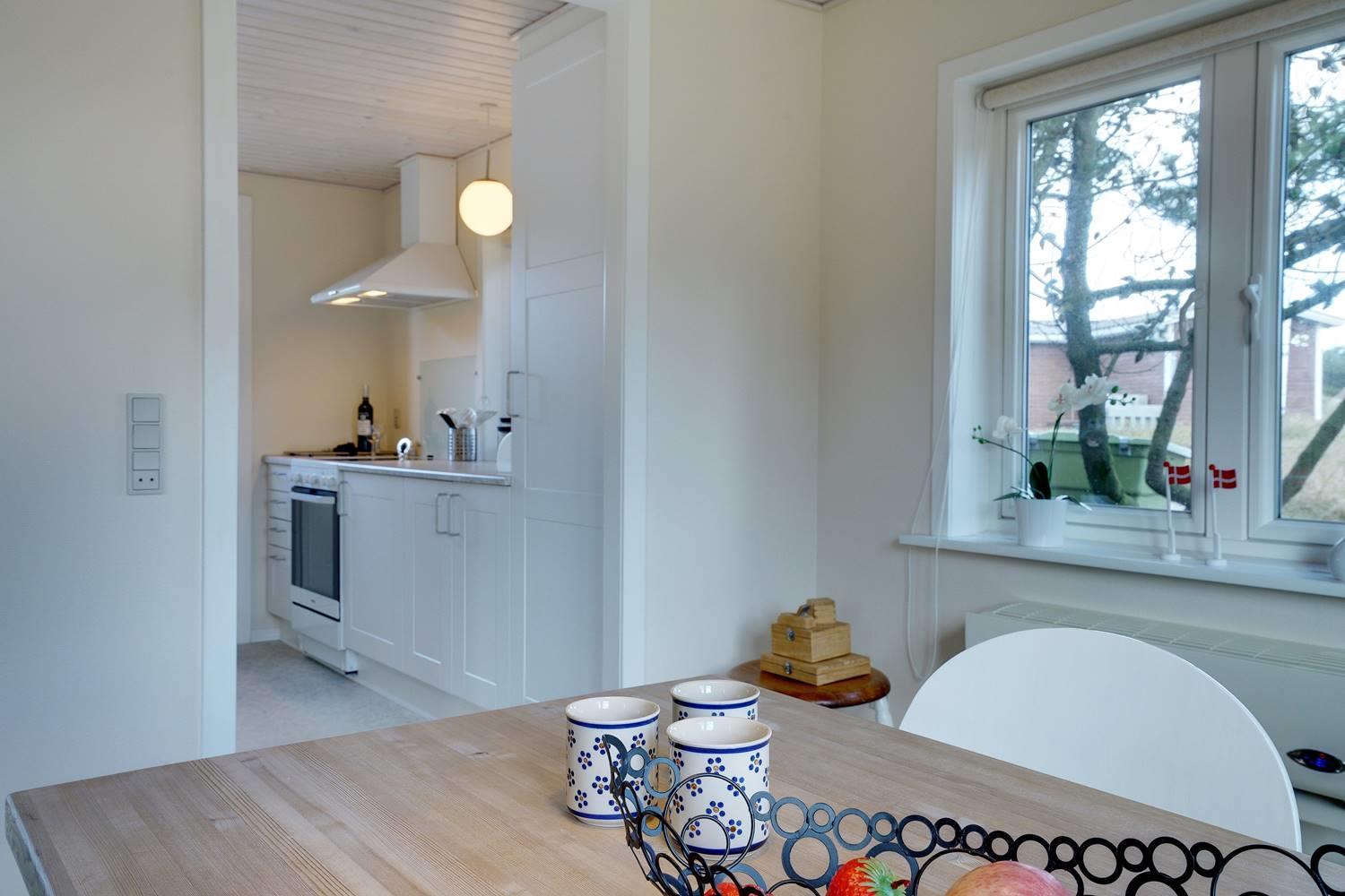 Im Inneren erwartet dich ein freundlich eingerichtetes Ferienhaus, das auf kompakter Fläche alles bietet, was du für einen erholsamen Urlaub in Dänemark brauchst. Der Wohnbereich ist offen gestaltet und verbindet Wohnzimmer, Essbereich und Küche zu einem angenehmen Treffpunkt für gemeinsame Urlaubsstunden.