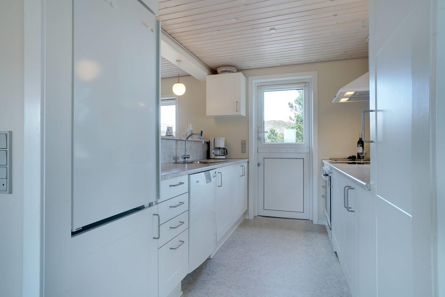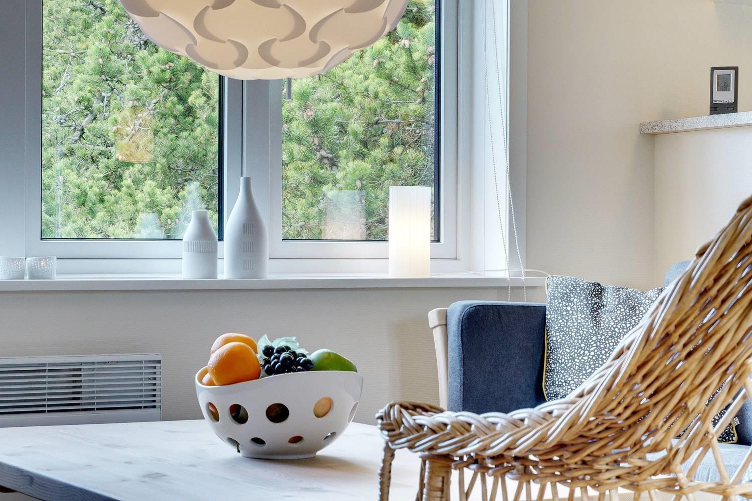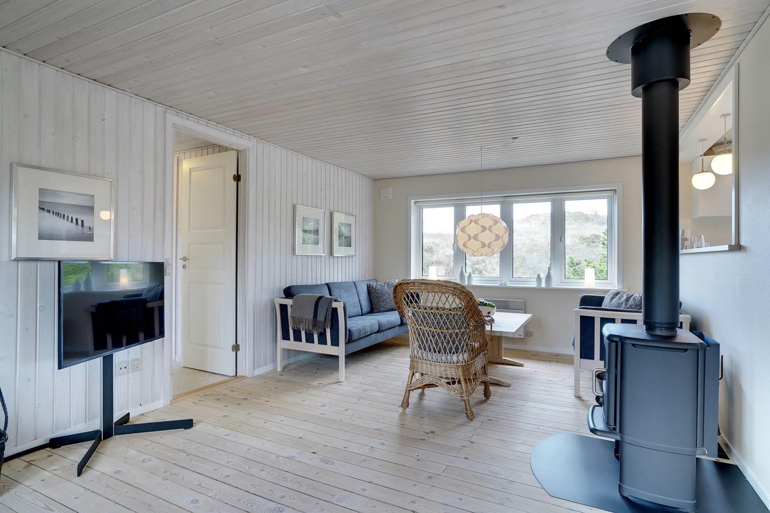 Große Fenster lassen viel Tageslicht herein und geben dir gleichzeitig einen schönen Blick in die umliegende Dünenlandschaft. Besonders an kühleren tagen sorgt der Kamin für eine warme, hyggelige Atmosphäre, während die Wärmepumpe das Ferienhaus effizient und komfortabel auf angenehmer Temperatur hält.
