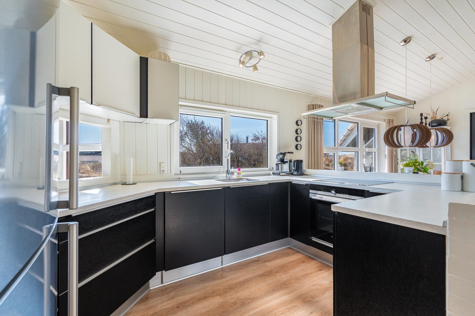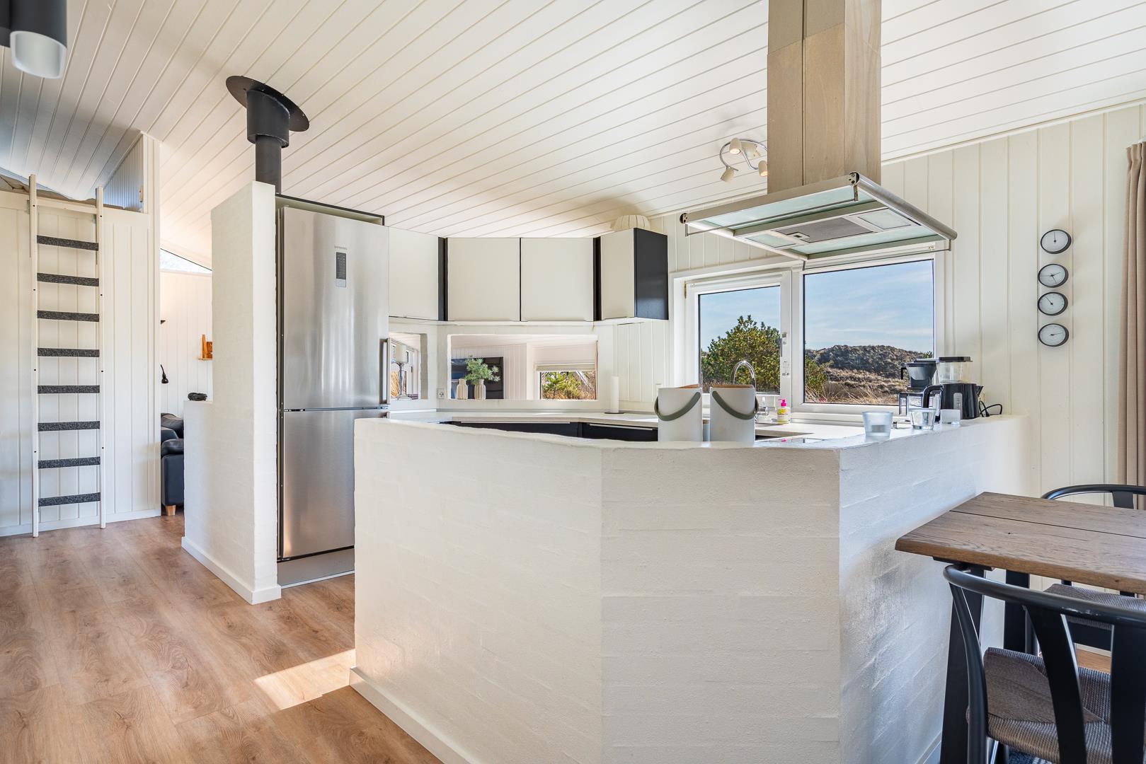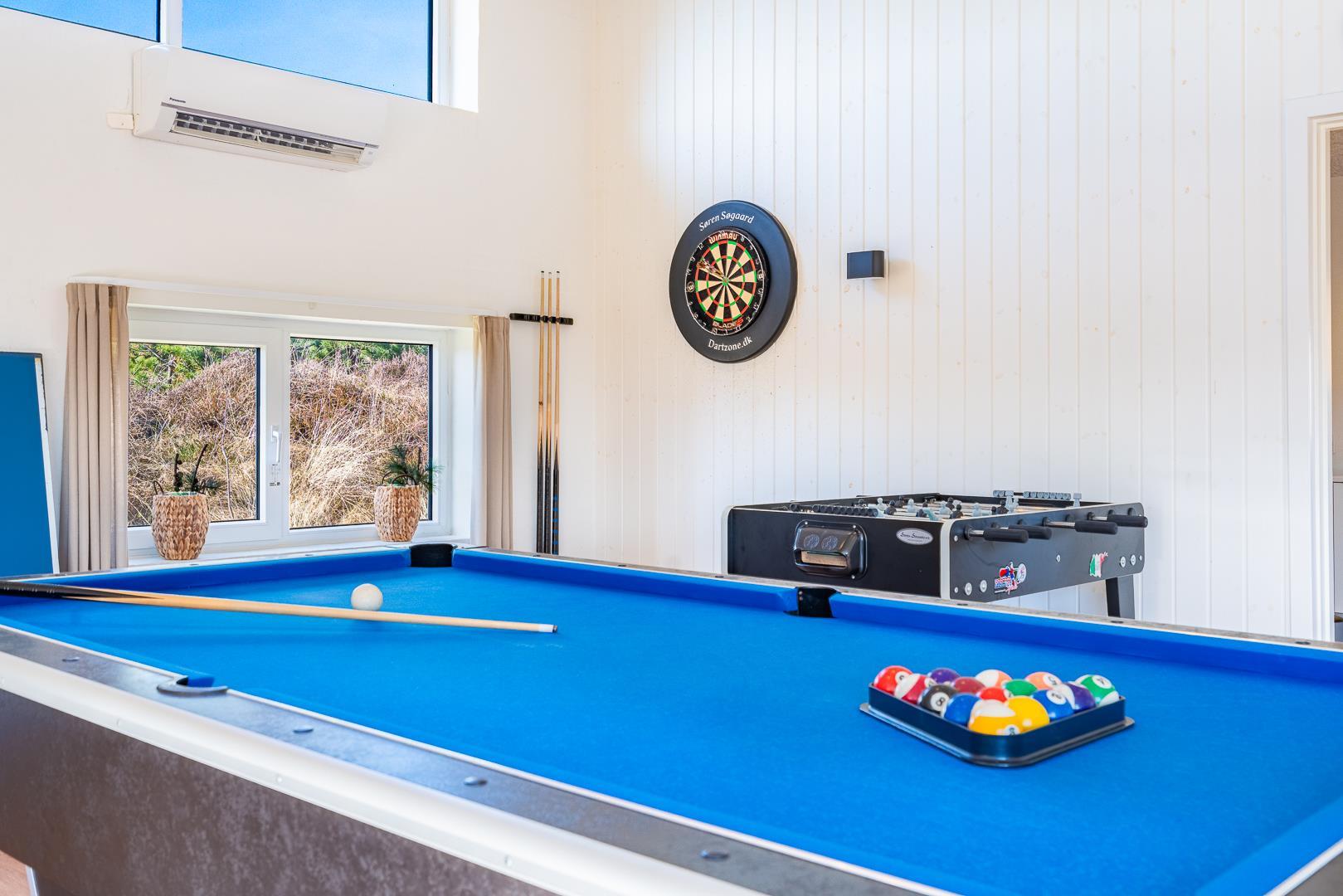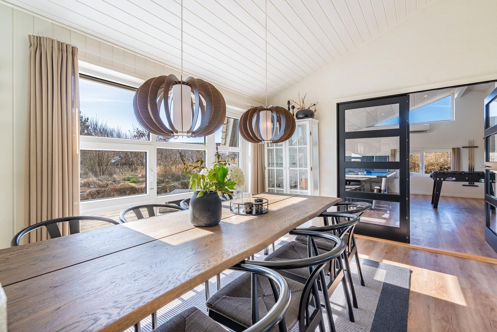 Auf einem Dünengrundstück am Ende einer Sackgasse, liegt dieses tolle und moderne Ferienhaus. Besonders hervorzuheben ist hier der Aktivitätsraum mit Billard, Tischtennis und Kicker. Schöne, neue und offene Küche in Verbindung mit dem super eingerichteten Wohnzimmer. Das gesamte Haus ist sehr hell und freundlich eingerichtet. 4 helle Schlafzimmer, mit Hems. 2 Badezimmer mit Duschkabine und in dem einen gibt es ein Whirlpool und eine Sauna. Ungestörte Terrasse. Tolles Ferienhaus in dem die besten Voraussetzungen für einen fantastischen Urlaub in Henne Strand geschaffen sind.