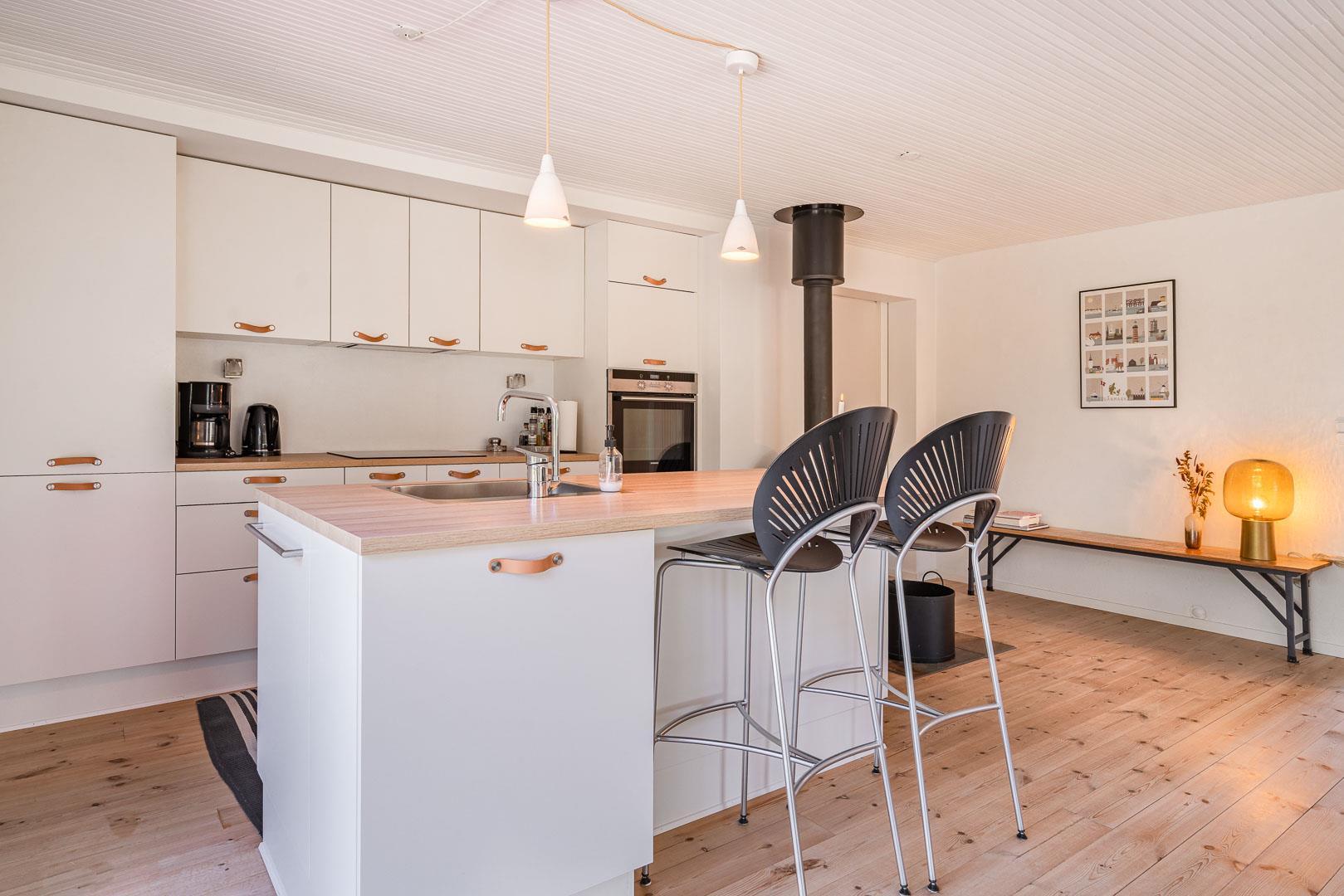 Erleben Sie ein unvergessliches Urlaubserlebnis in diesem gemütlichen und luxuriösen Ferienhaus in Henne Strand, das fortlaufend renoviert wurde. Die herrliche Badestelle und das lebendige Stadtleben sind nur einen Katzensprung entfernt. Das Ferienhaus besticht durch ein helles und einladendes Interieur mit einem offenen Wohnbereich, der nahtlos in die moderne Küche übergeht. Der Kamin im Wohnzimmer sorgt an kühlen Abenden für eine warme und gemütliche Atmosphäre, und der direkte Zugang vom Essbereich zur einen der Holzterrassen des Hauses lädt zu Mahlzeiten im Freien und Entspannung ein.