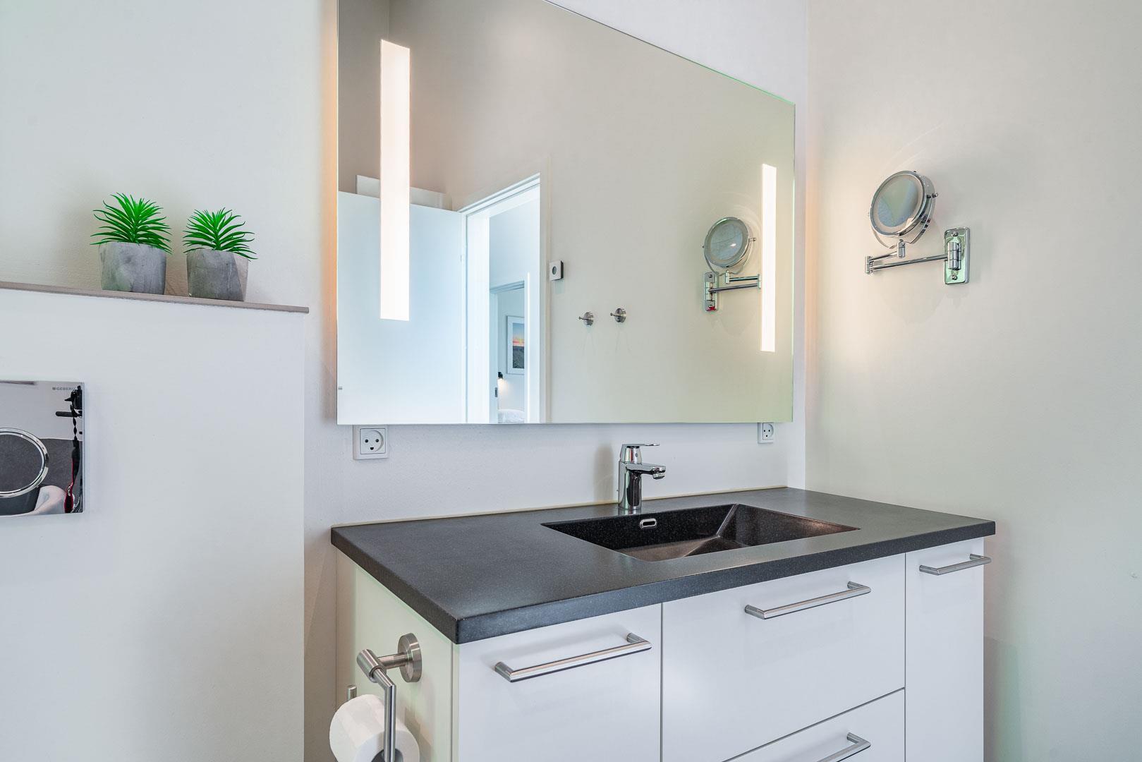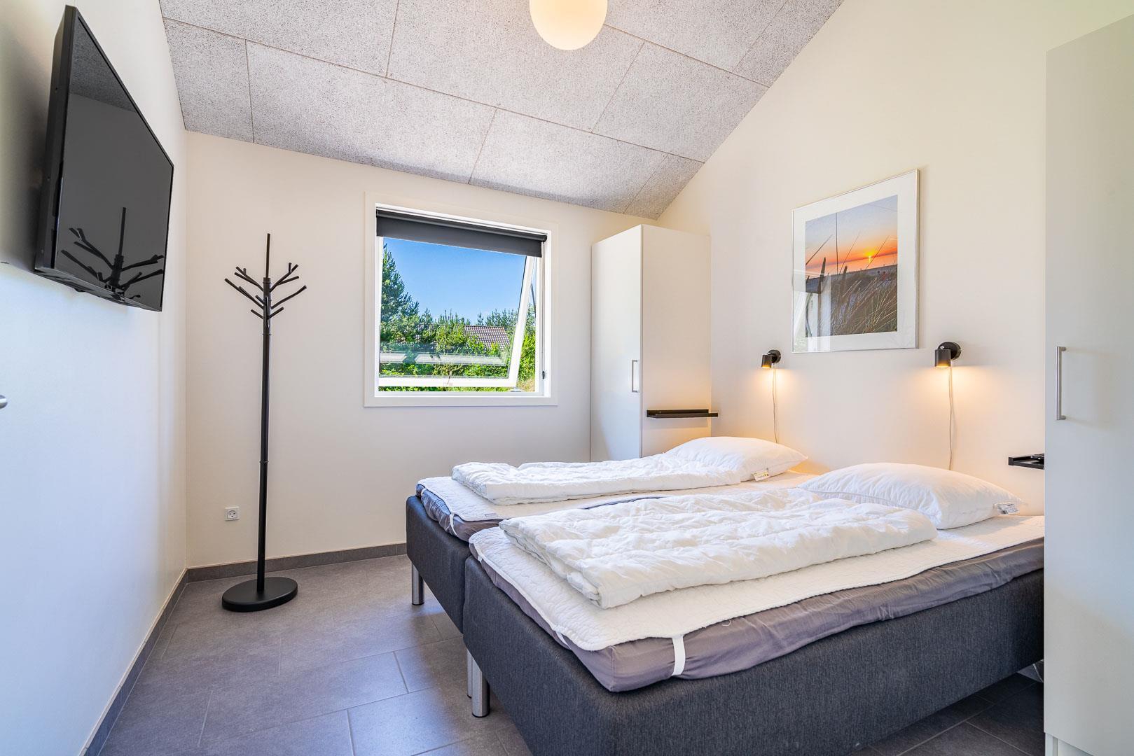 Es gibt sechs Schlafplätze, die sich auf drei Schlafzimmer verteilen. Das Haus verfügt außerdem über eine zusätzliche Toilette und einen Hauswirtschaftsraum mit Waschmaschine und Trockner.