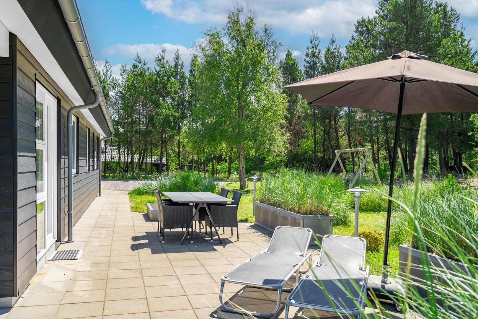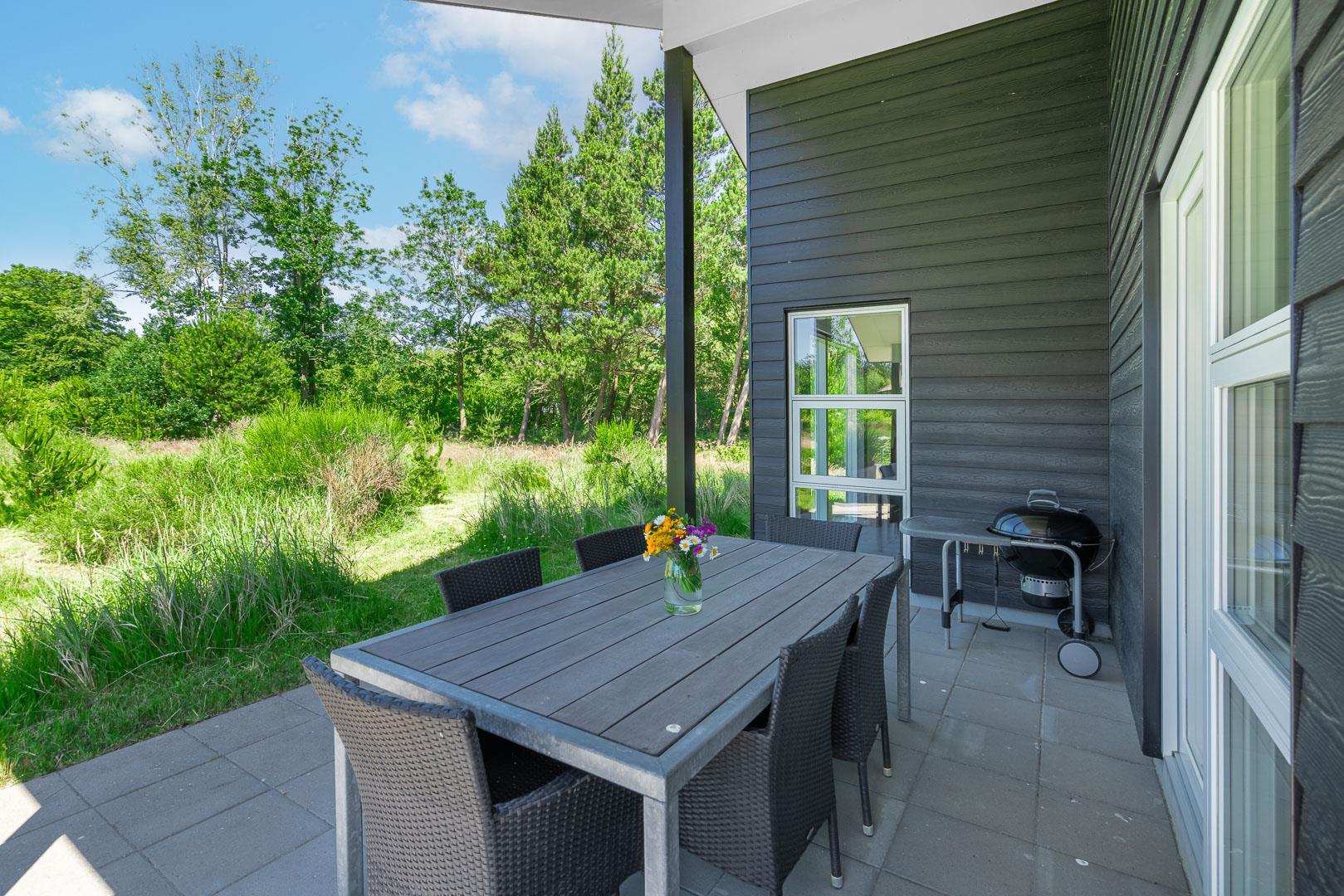 Oder Sie machen es sich auf der teilweisen überdachten Terrasse gemütlich, während Sie das Essen auf dem Grill haben und die Kinder derweilen im Sandkasten spielen oder Schaukeln.