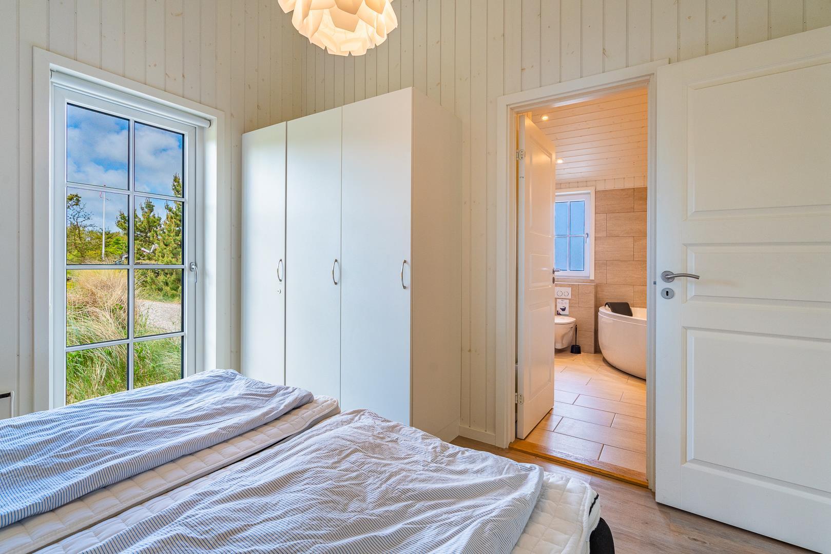 Es gibt zwei Badezimmer im Haus, von denen eines eine Dusche hat, während die Sauna und der Whirlpool für Wohlbefinden im anderen abdezimmer sorgen.