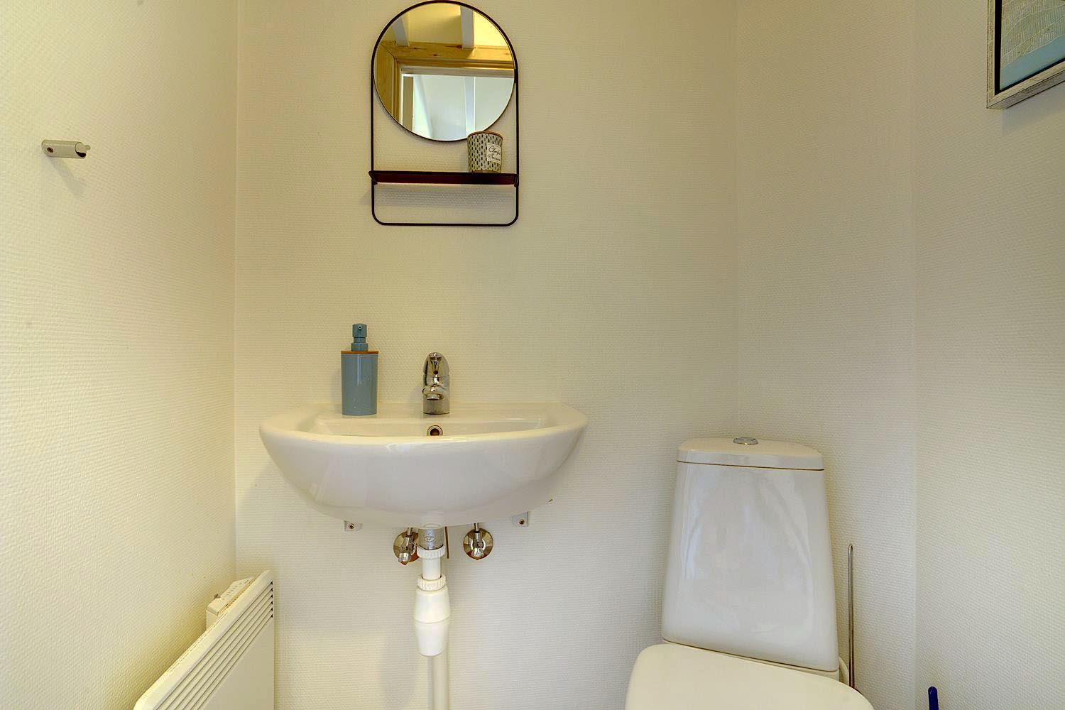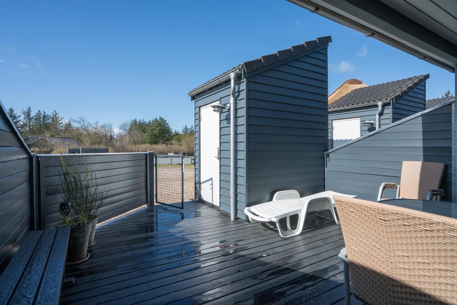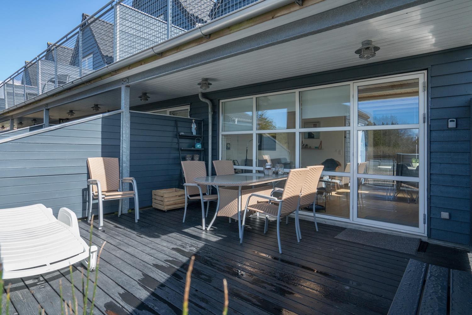 Vom Wohnzimmer des Hauses aus haben Sie Zugang zu einer geschlossenen, nach Südwesten ausgerichteten Terrasse. Die Wohnung enthält einen Eingangsbereich, eine Küche in offener Verbindung mit dem Wohnzimmer und im 1. Stock gibt es 2 Schlafzimmer und Zugang zu einem Balkon, hier finden Sie auch die zusätzliche Toilette des Hauses. Henne Golfklub, Blåbjerg Klitplantage und Stutteri Vestkysten mit Islandpferden und Shettys erreichen Sie zu Fuß in 5 Minuten.