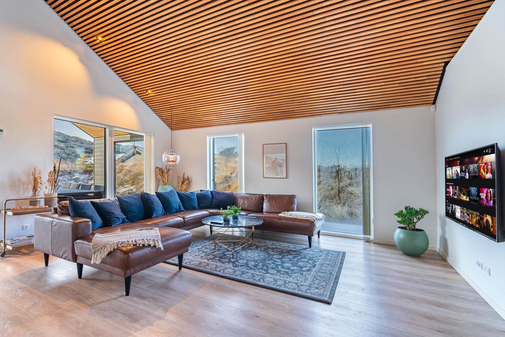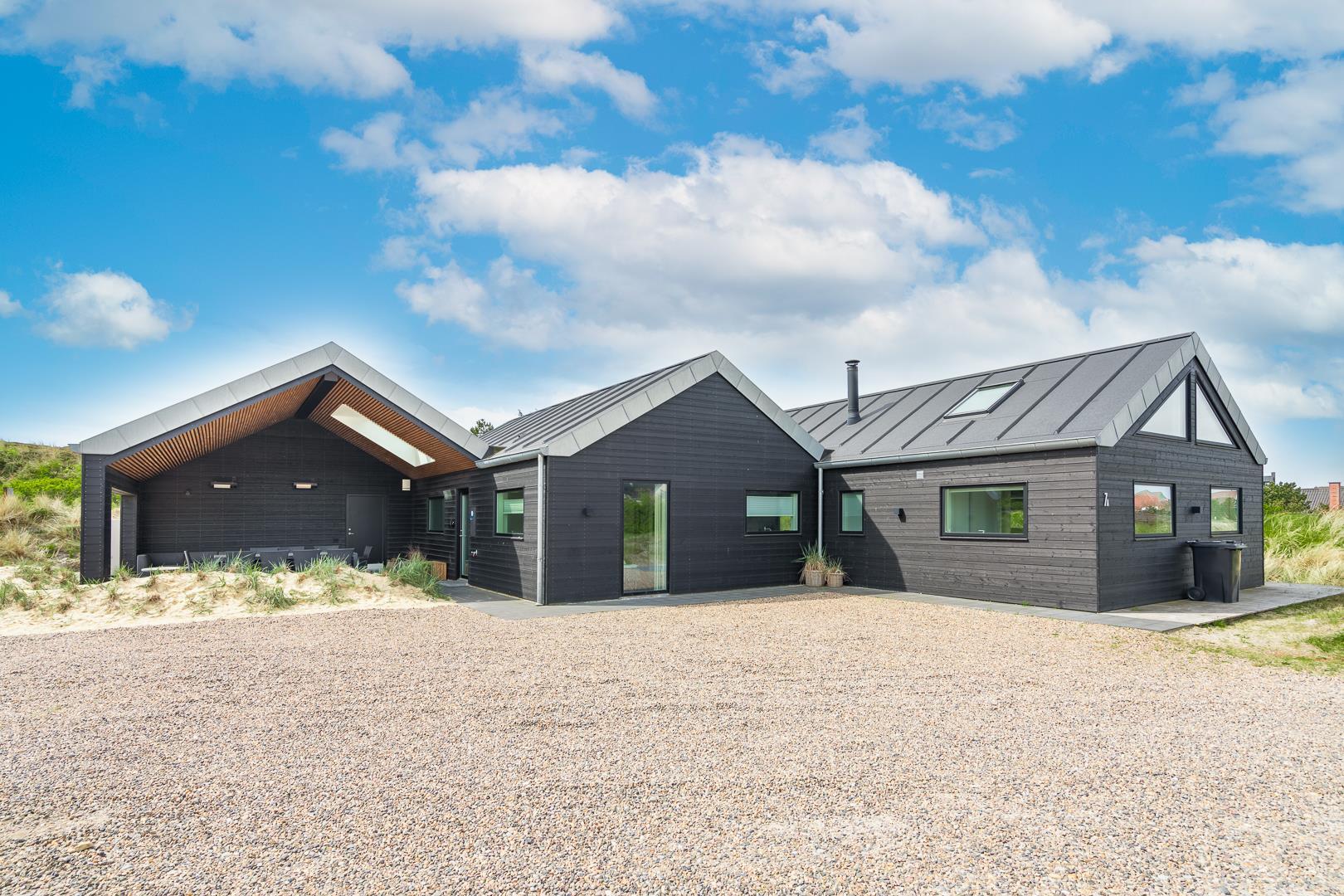 Das Ferienhaus im Gyvelvej 7 A ist ein exklusives und rundum gut gestaltetes Ferienhaus in fantastischer Lage in Henne Strand.