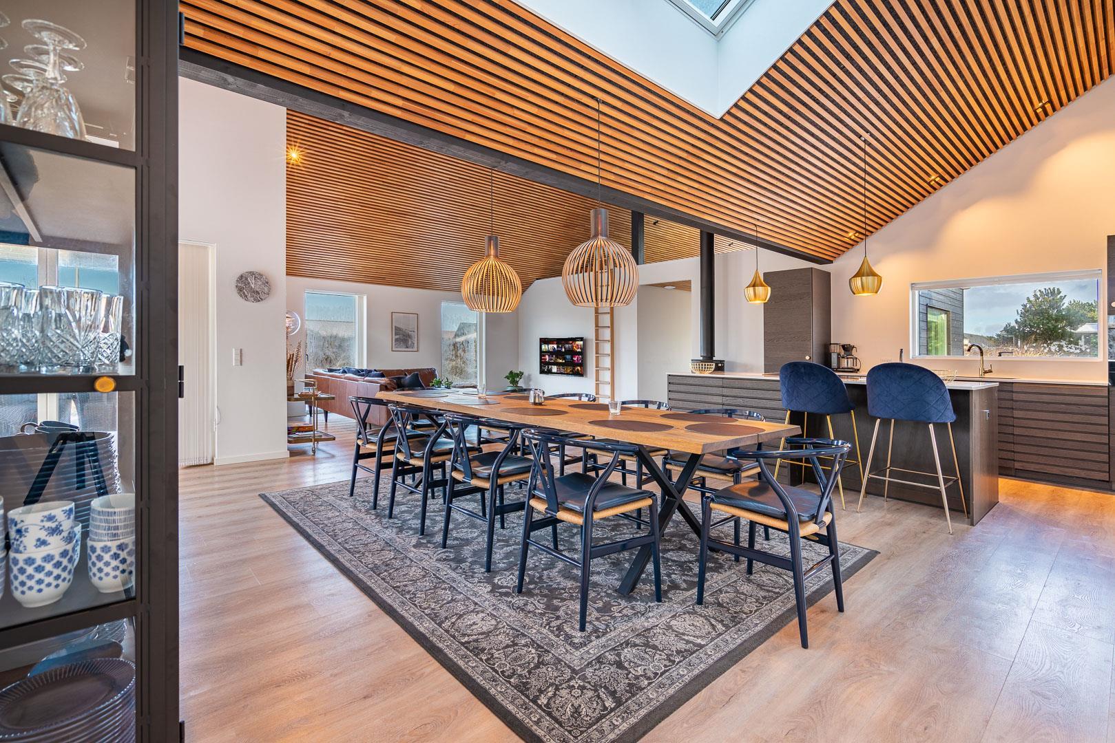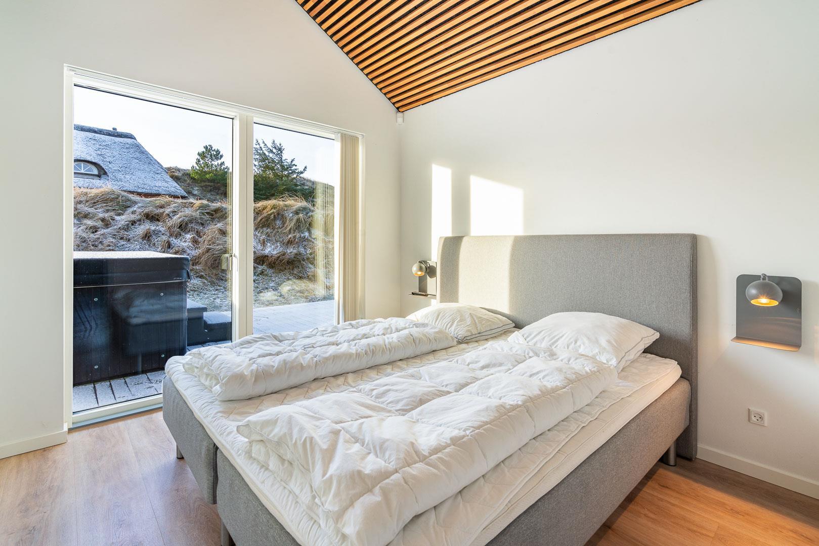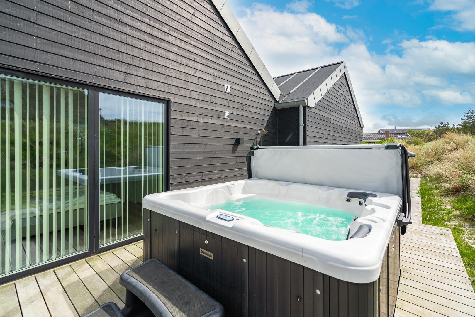 Das Haus liegt dicht am lebhaften Einkaufs- und Cafélebens der Stadt und ist dennoch ausreichend abgeschieden, sodass Sie die Ruhe auf den schönen Terrassen des Ferienhauses genießen oder sich bei einem erfrischenden Getränk im Außen-Whirlpool erfrischen können. Wenn Sie das Ferienhaus betreten, werden Sie sich auf jeden Fall sofort wohl fühlen. Das große Wohnzimmer steht in offener Verbindung sowohl zum Esszimmer als auch zur schicken Küche, die Qualität und Details der Sonderklasse bietet. Im Raum finden Sie schöne Möbel, einen großartigen Lichteinfall und hohe Decken, die zusammen für Gemütlichkeit und eine angenehme Atmosphäre sorgen. Im Ferienhaus ist allen Gästen mit fünf hellen und geräumigen Schlafzimmern mit Doppelbetten eine erholsame Nachtruhe garantiert. Eines der Zimmer bietet direkten Zugang zum Außen-Whirlpool.