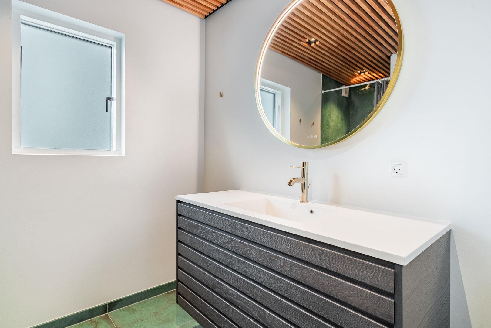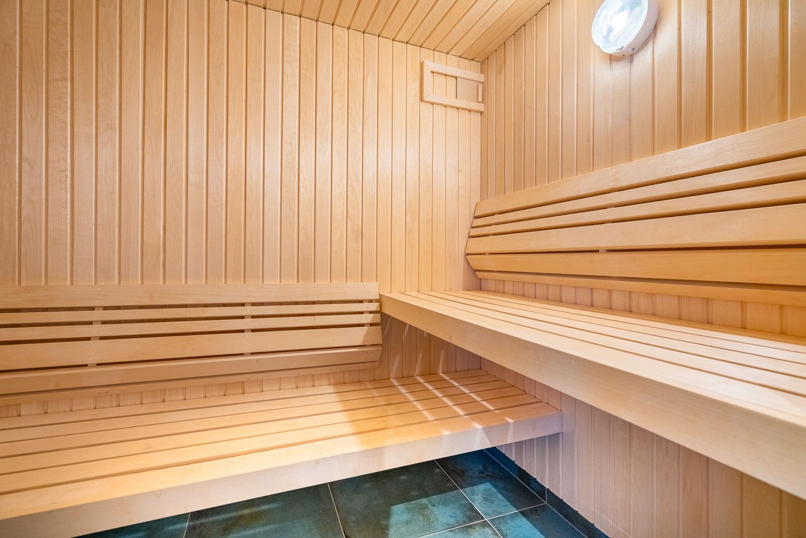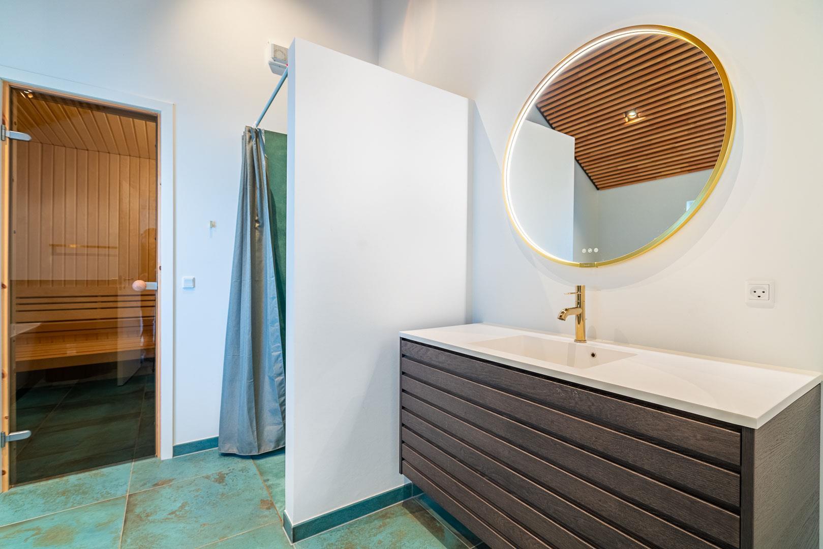 Im Ferienhaus gibt es außerdem zwei luxuriöse Badezimmer, das größte davon verfügt sowohl über eine Badewanne als auch über eine Sauna.