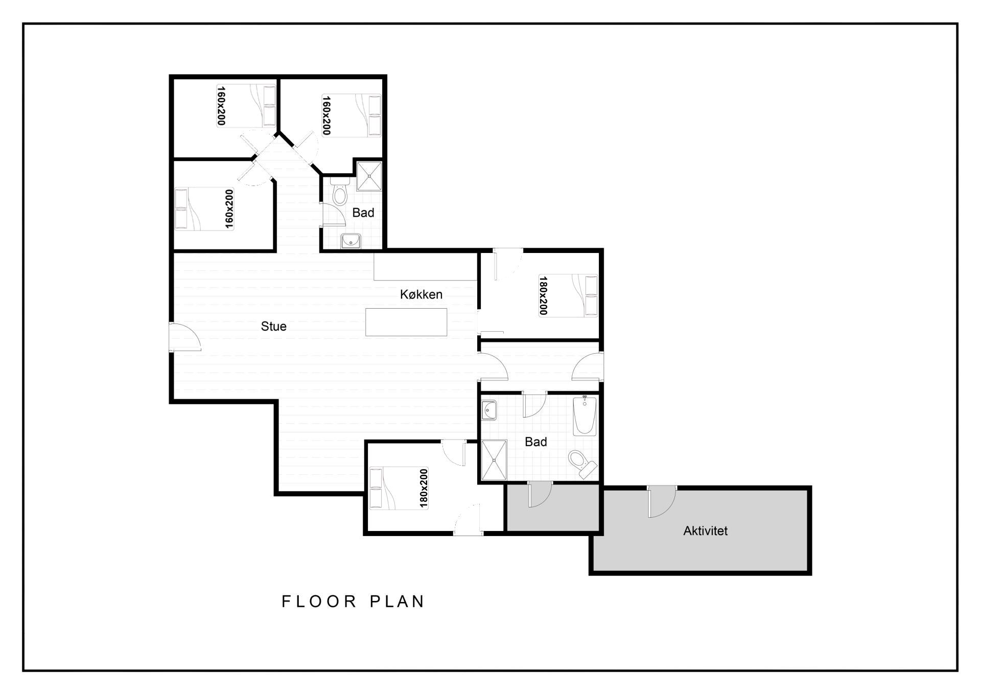 Bettengrösse: 2 Doppelbetten 180 x 200 cm + 3 Doppelbetten 180 x 200 cm.